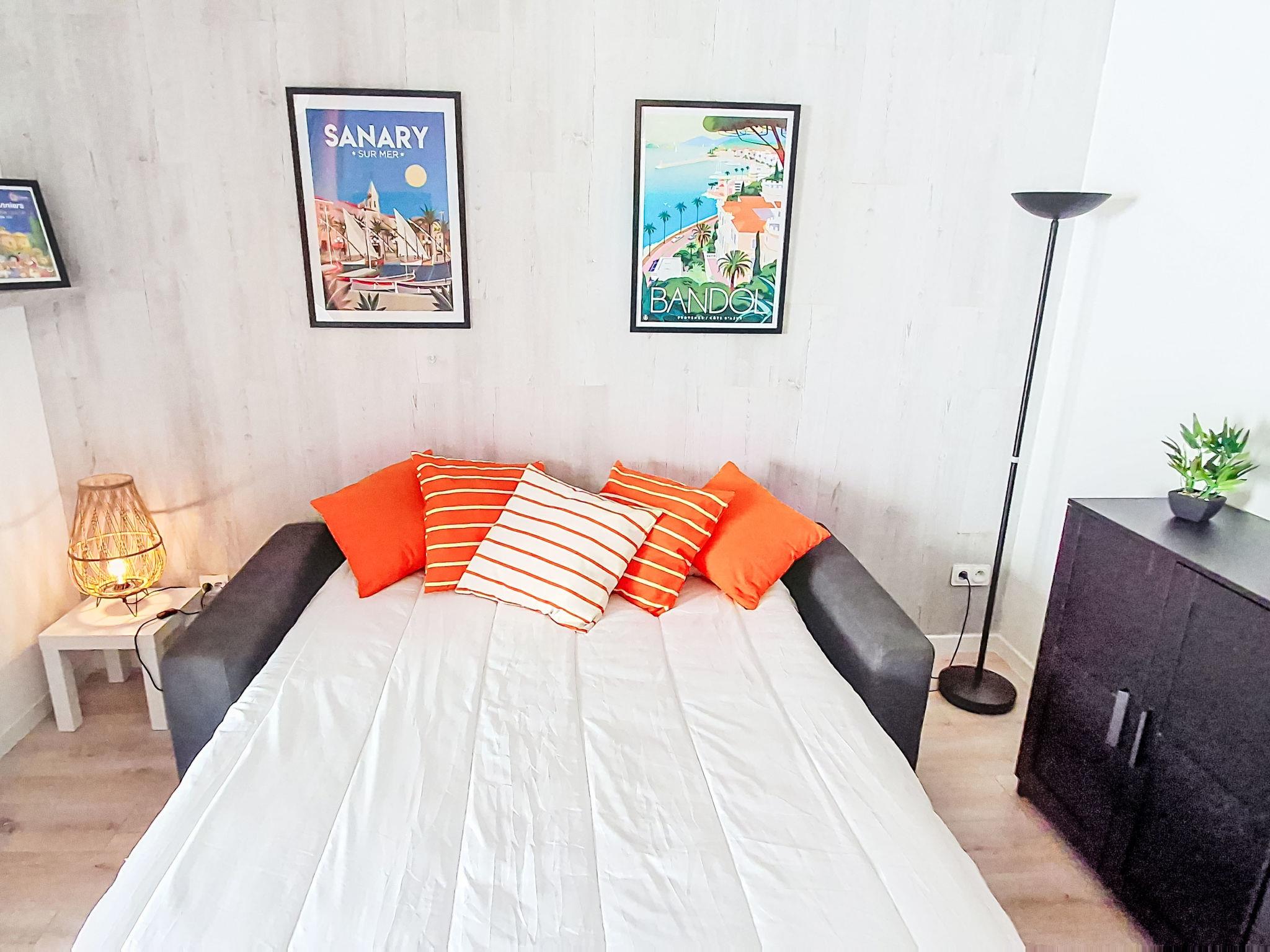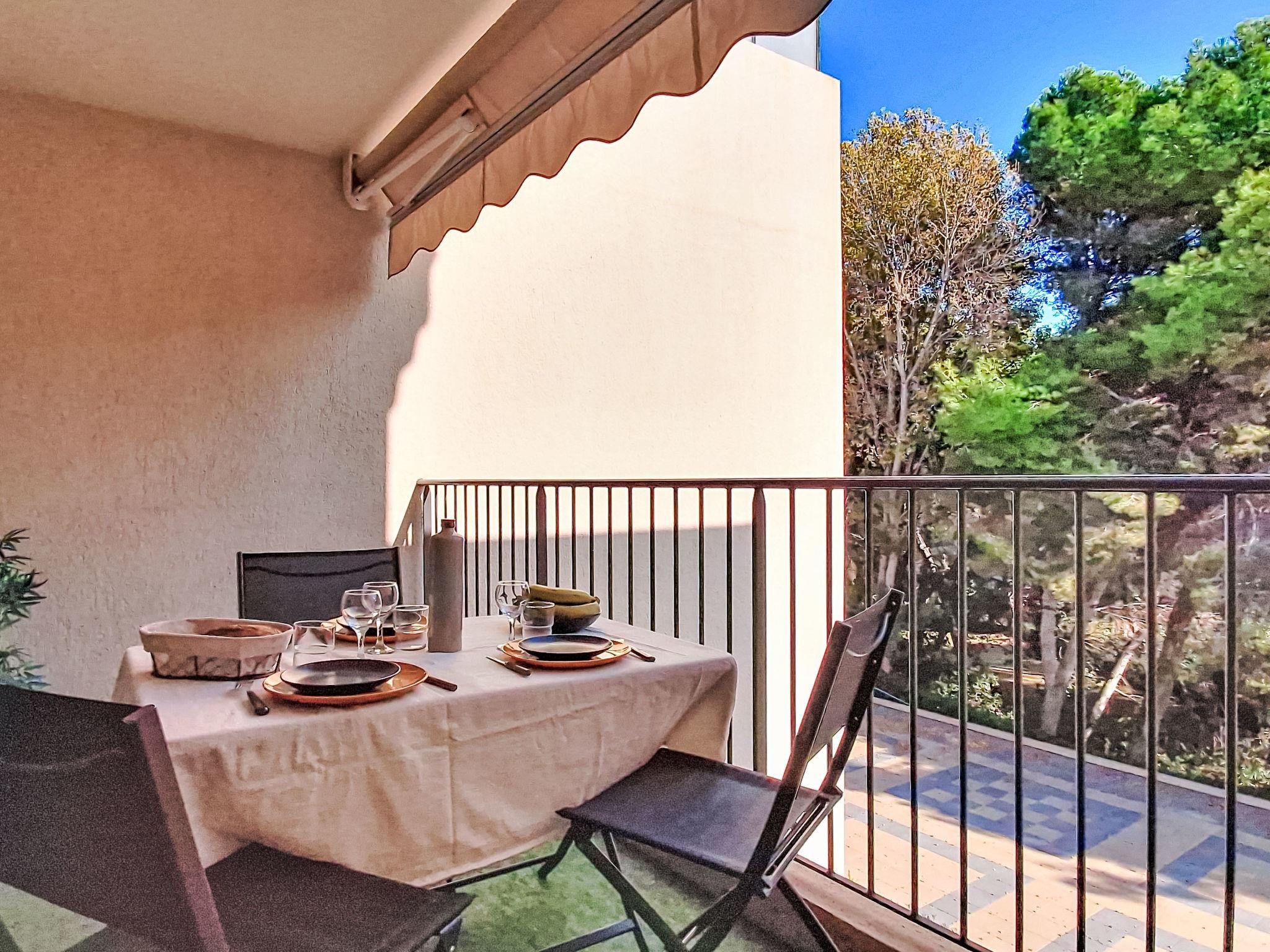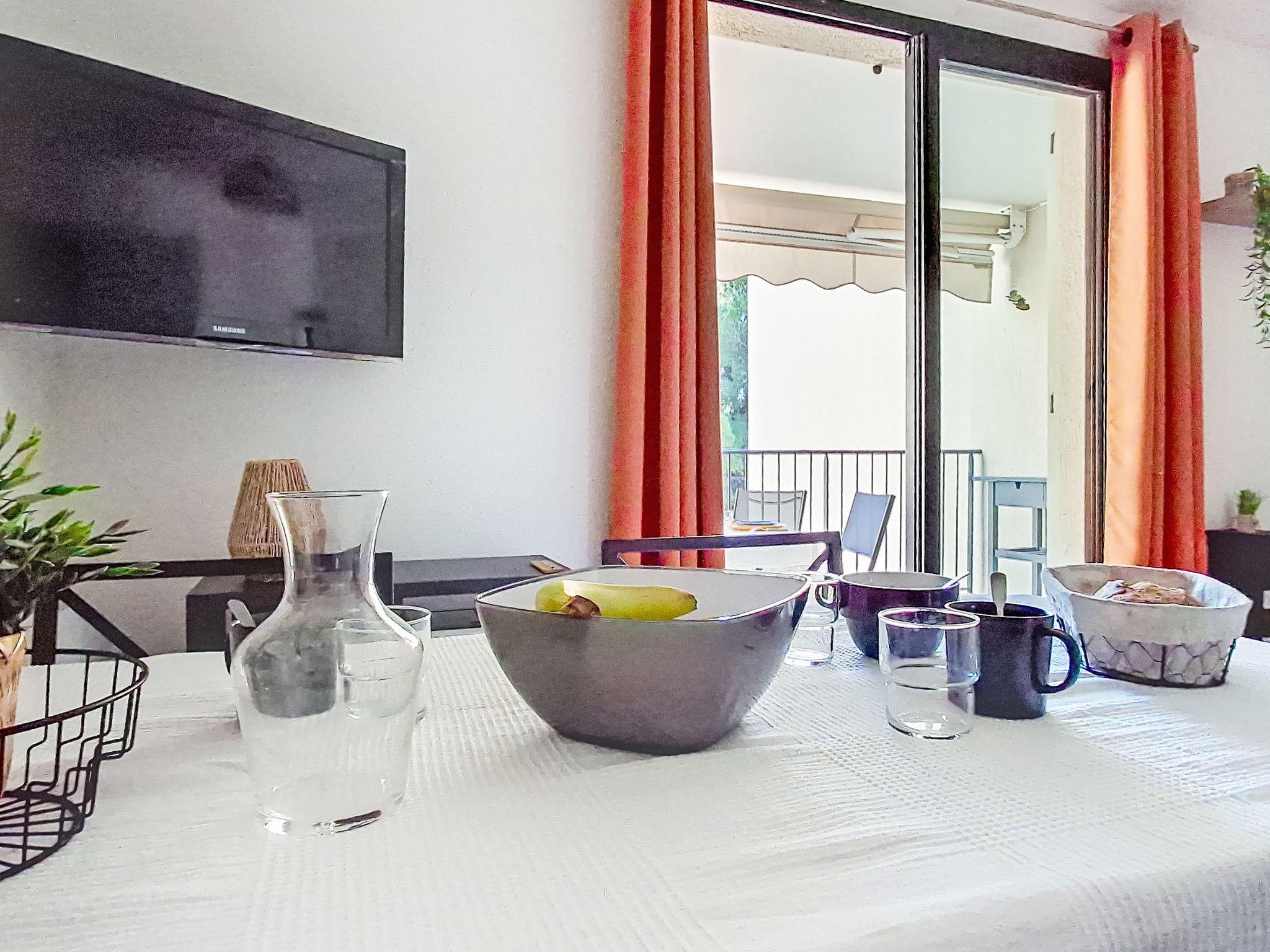 2-room apartment 30 m2 on 2nd floor. Living/dining room with 1 sofabed (140 cm, length 190 cm), TV (flat screen). Exit to the terrace. 1 small room 5 m2 with 1 bed (80 cm, length 190 cm). Kitchenette (2 ceramic glass hob hotplates, toaster, kettle, microwave, electric coffee machine). Shower, sep. WC. Electric heating. Terrace 8 m2, roofed, east facing position. Terrace furniture. View of the garden. Facilities: Internet (WiFi, free). Parking space n 52. Please note: TV only FR. Smoke alarm. Offer by a private individual according to Art. 155, IV of CGI.