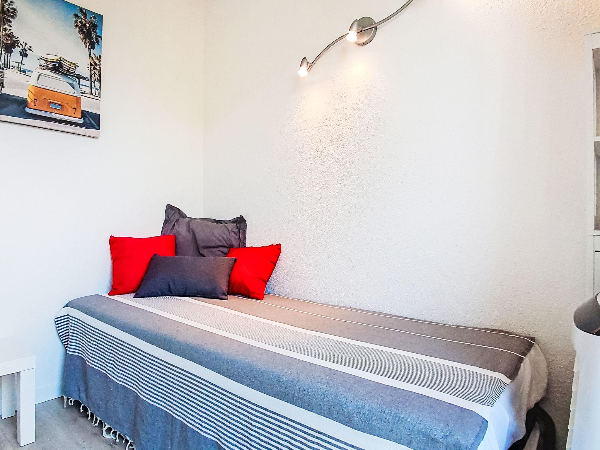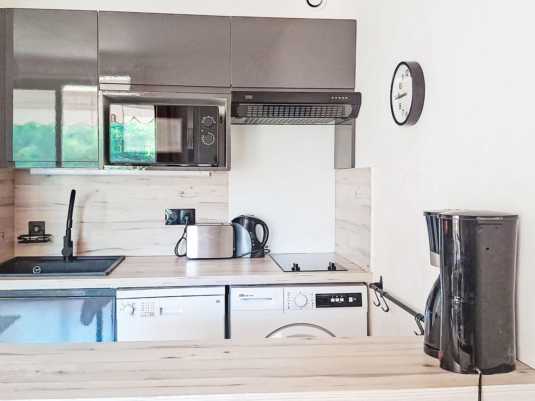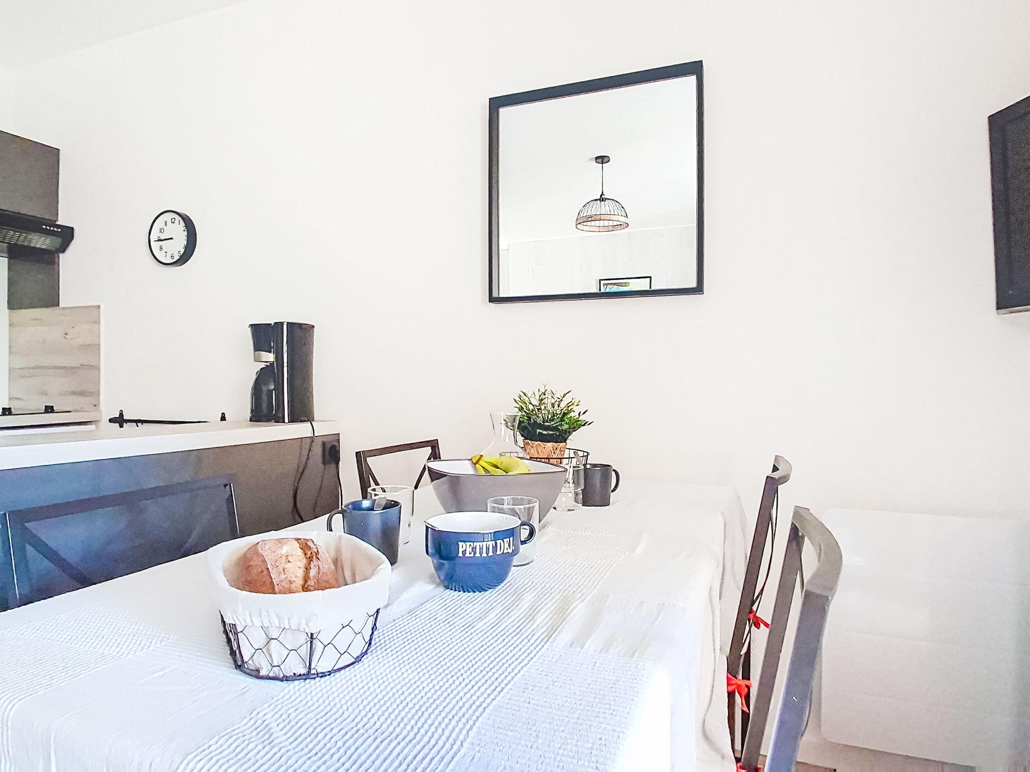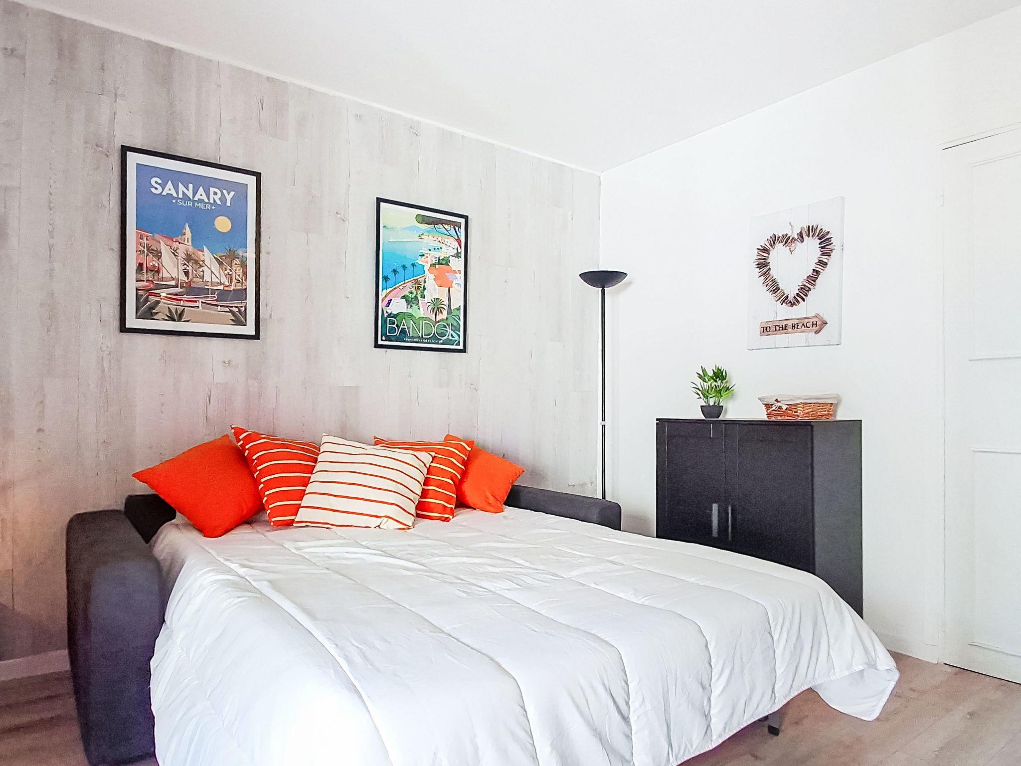 2-room apartment 30 m2 on 2nd floor. Living/dining room with 1 sofabed (140 cm, length 190 cm), TV (flat screen). Exit to the terrace. 1 small room 5 m2 with 1 bed (80 cm, length 190 cm). Kitchenette (2 ceramic glass hob hotplates, toaster, kettle, microwave, electric coffee machine). Shower, sep. WC. Electric heating. Terrace 8 m2, roofed, east facing position. Terrace furniture. View of the garden. Facilities: Internet (WiFi, free). Parking space n 52. Please note: TV only FR. Smoke alarm. Offer by a private individual according to Art. 155, IV of CGI.