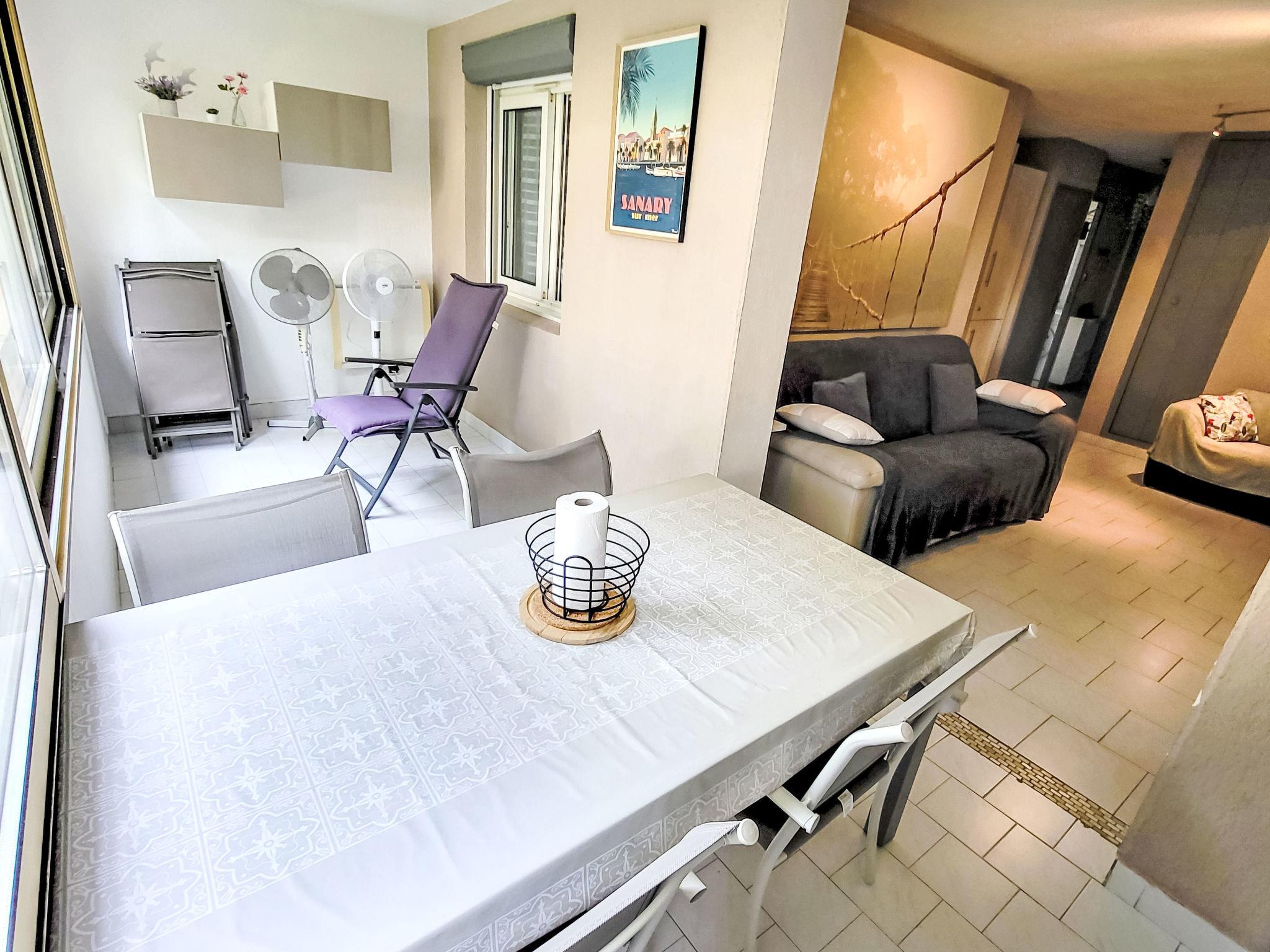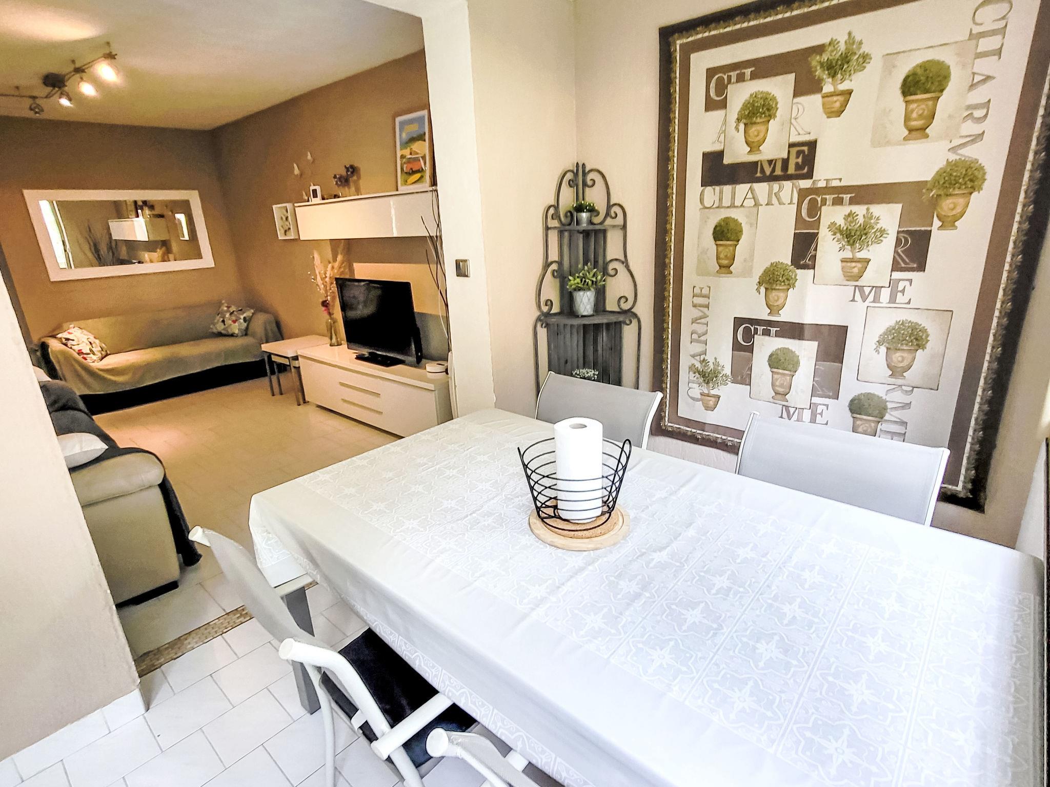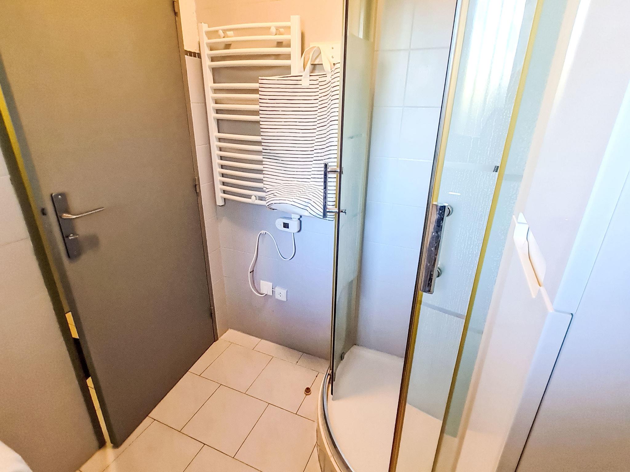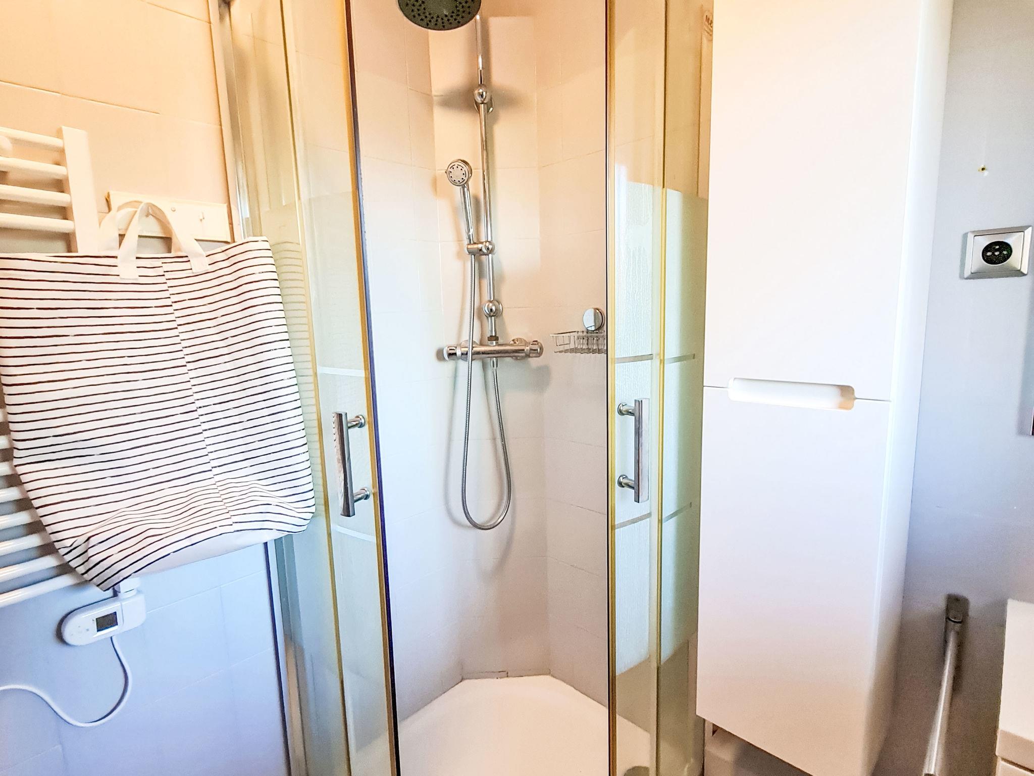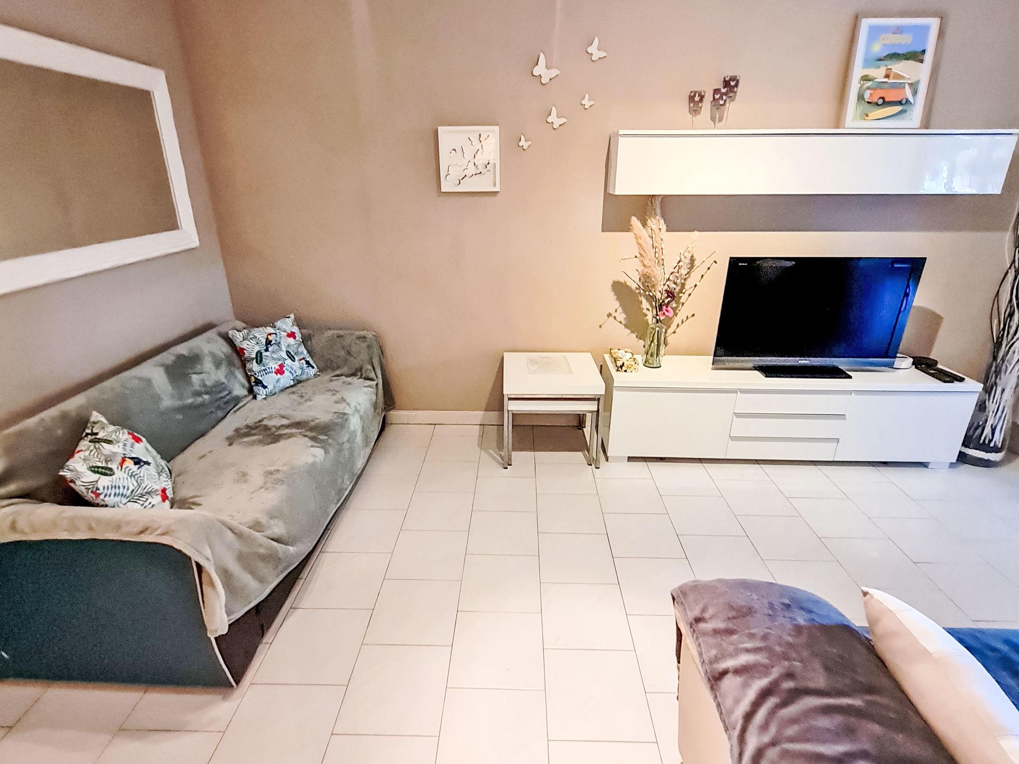 3-room apartment 50 m2 on 1st floor. Comfortable furnishings: 1 room with 1 double bed (140 cm, length 190 cm). Living/dining room with 1 double sofabed (140 cm, length 200 cm), TV (flat screen), fan. Exit to the terrace. 1 room with 1 french bed (140 cm, length 200 cm), fan. Kitchenette (oven, dishwasher, 2 ceramic glass hob hotplates, toaster, microwave, freezer, electric coffee machine). Shower, sep. WC. Electric heating. Terrace furniture, covered balcony. Facilities: washing machine. Internet (WiFi, extra). Parking. Please note: smoke alarm. Offer by a private individual according to Art. 155, IV of CGI.