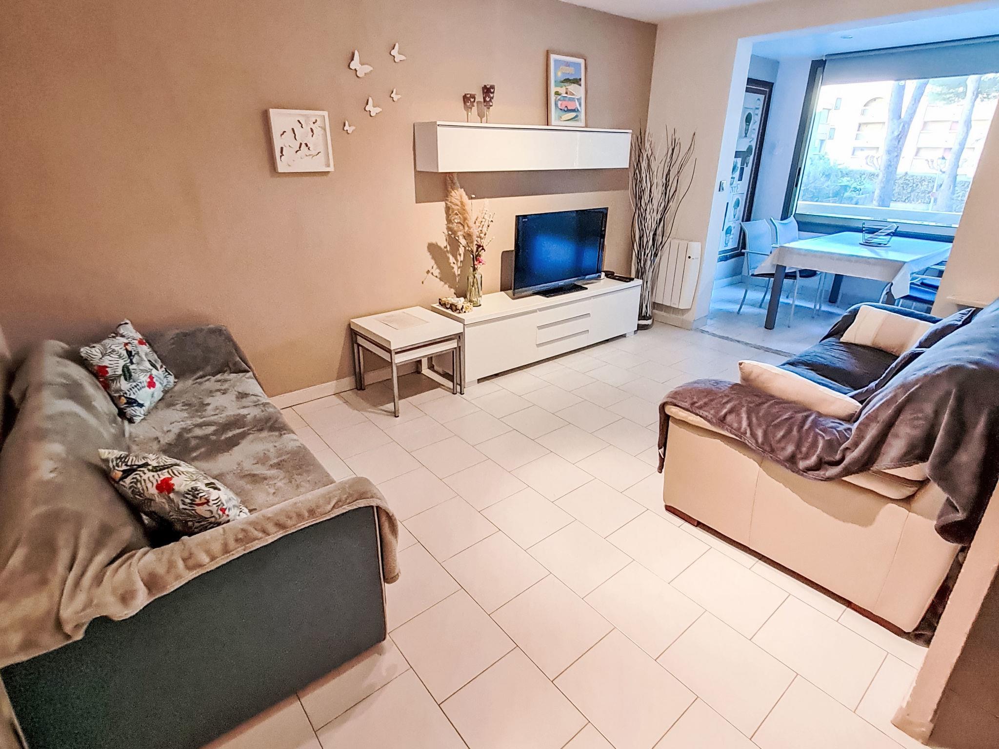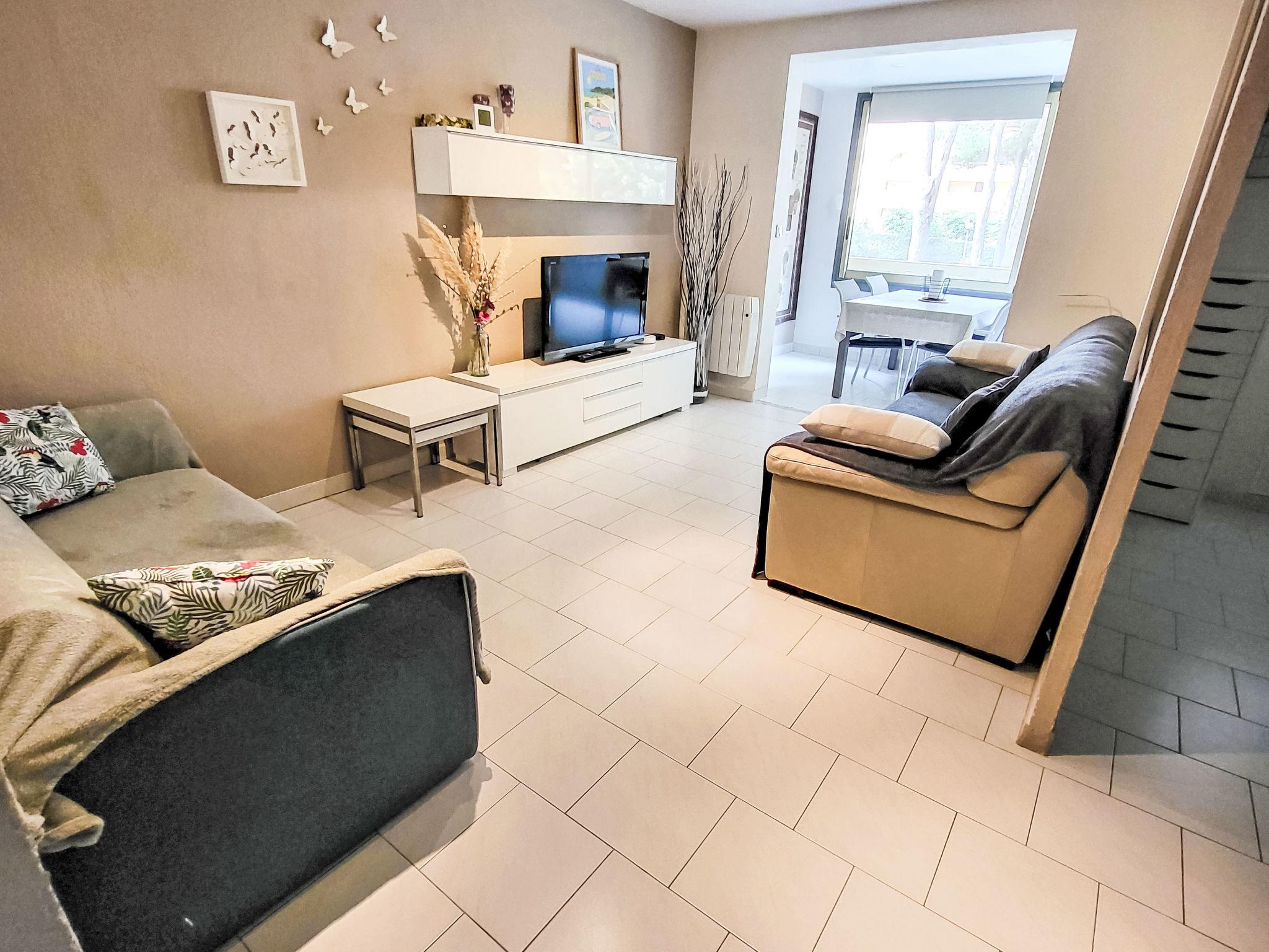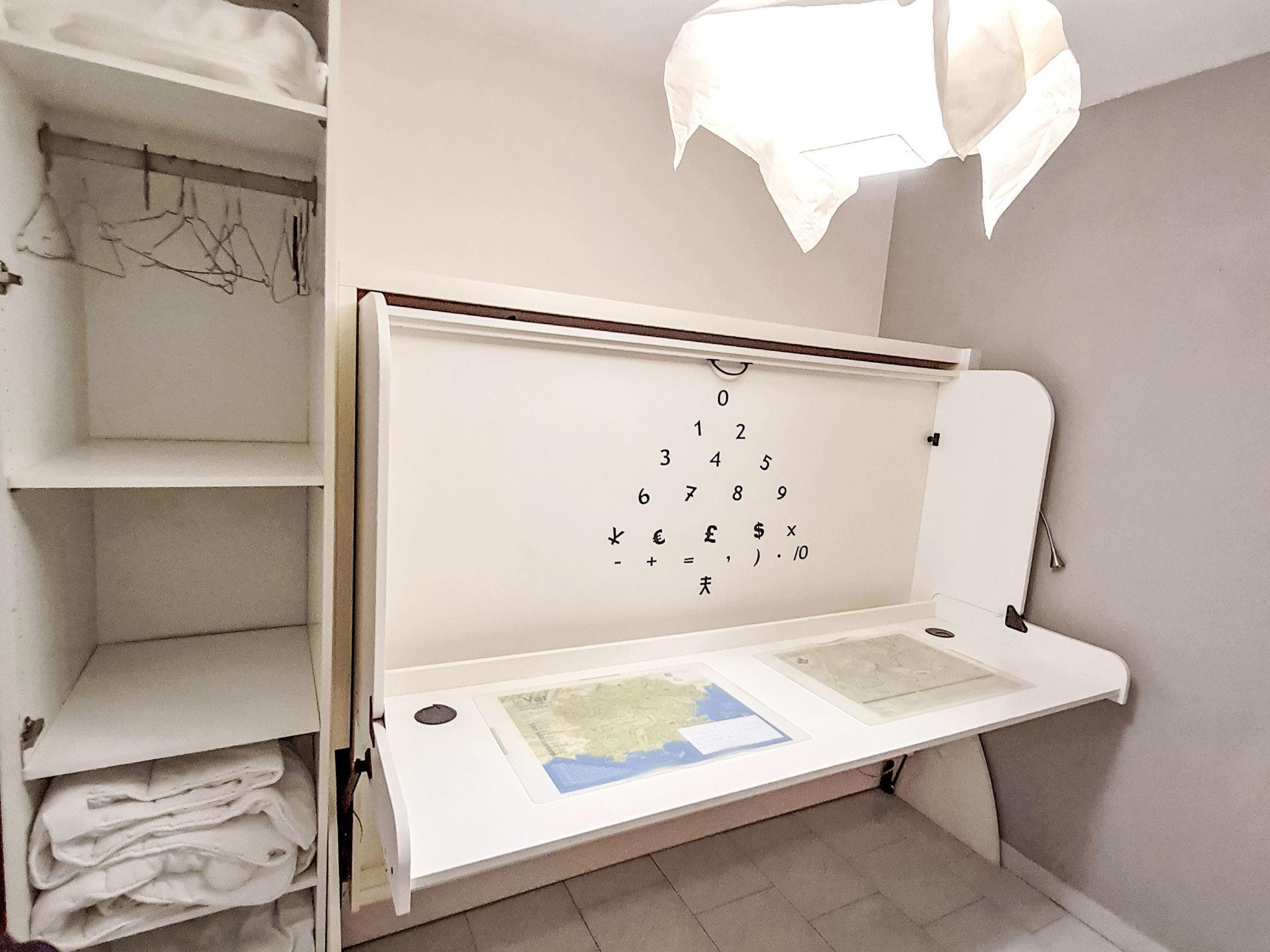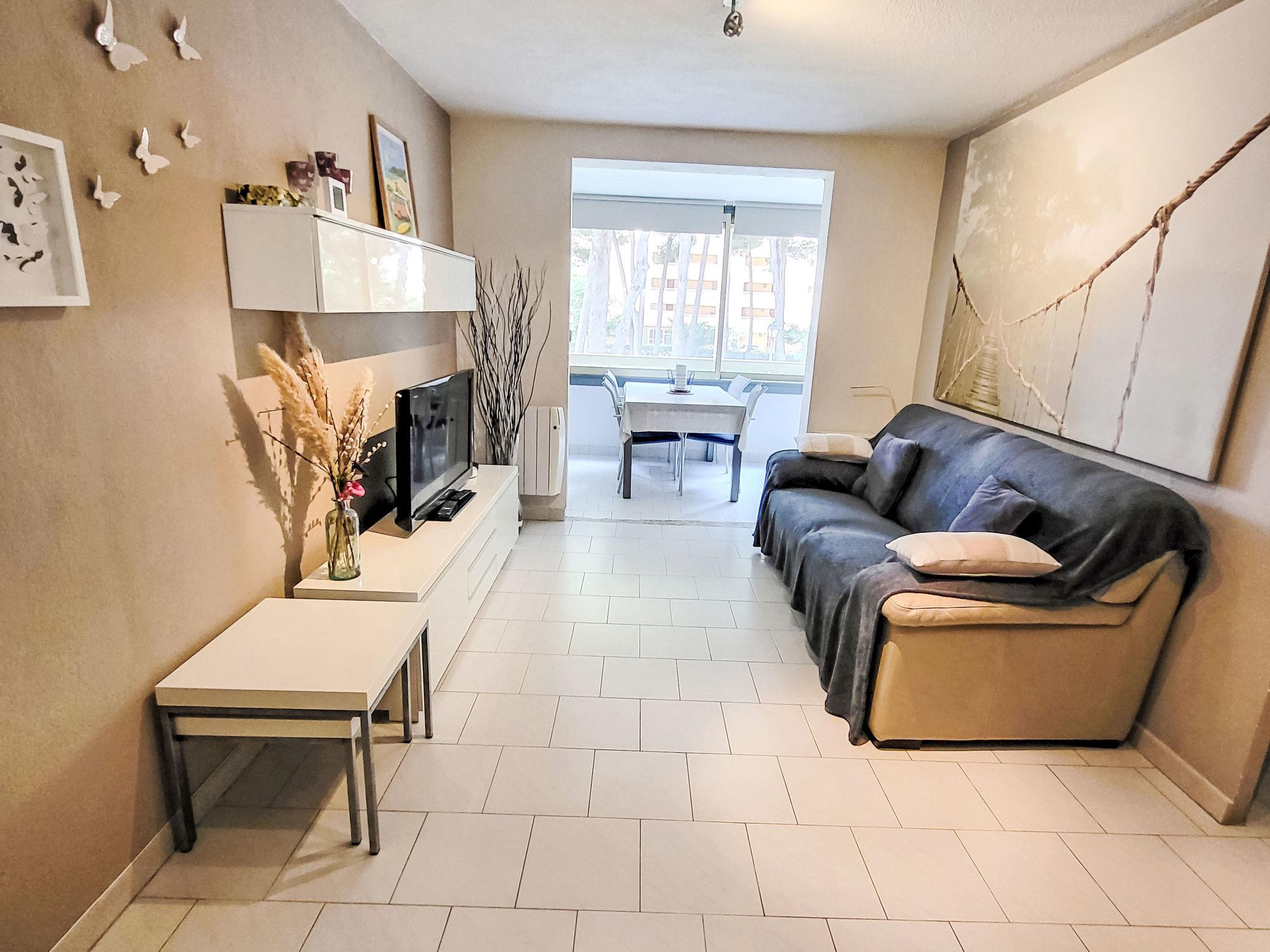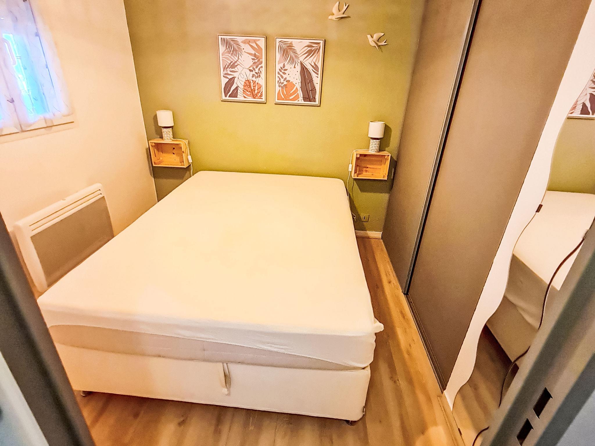 3-room apartment 50 m2 on 1st floor. Comfortable furnishings: 1 room with 1 double bed (140 cm, length 190 cm). Living/dining room with 1 double sofabed (140 cm, length 200 cm), TV (flat screen), fan. Exit to the terrace. 1 room with 1 french bed (140 cm, length 200 cm), fan. Kitchenette (oven, dishwasher, 2 ceramic glass hob hotplates, toaster, microwave, freezer, electric coffee machine). Shower, sep. WC. Electric heating. Terrace furniture, covered balcony. Facilities: washing machine. Internet (WiFi, extra). Parking. Please note: smoke alarm. Offer by a private individual according to Art. 155, IV of CGI.