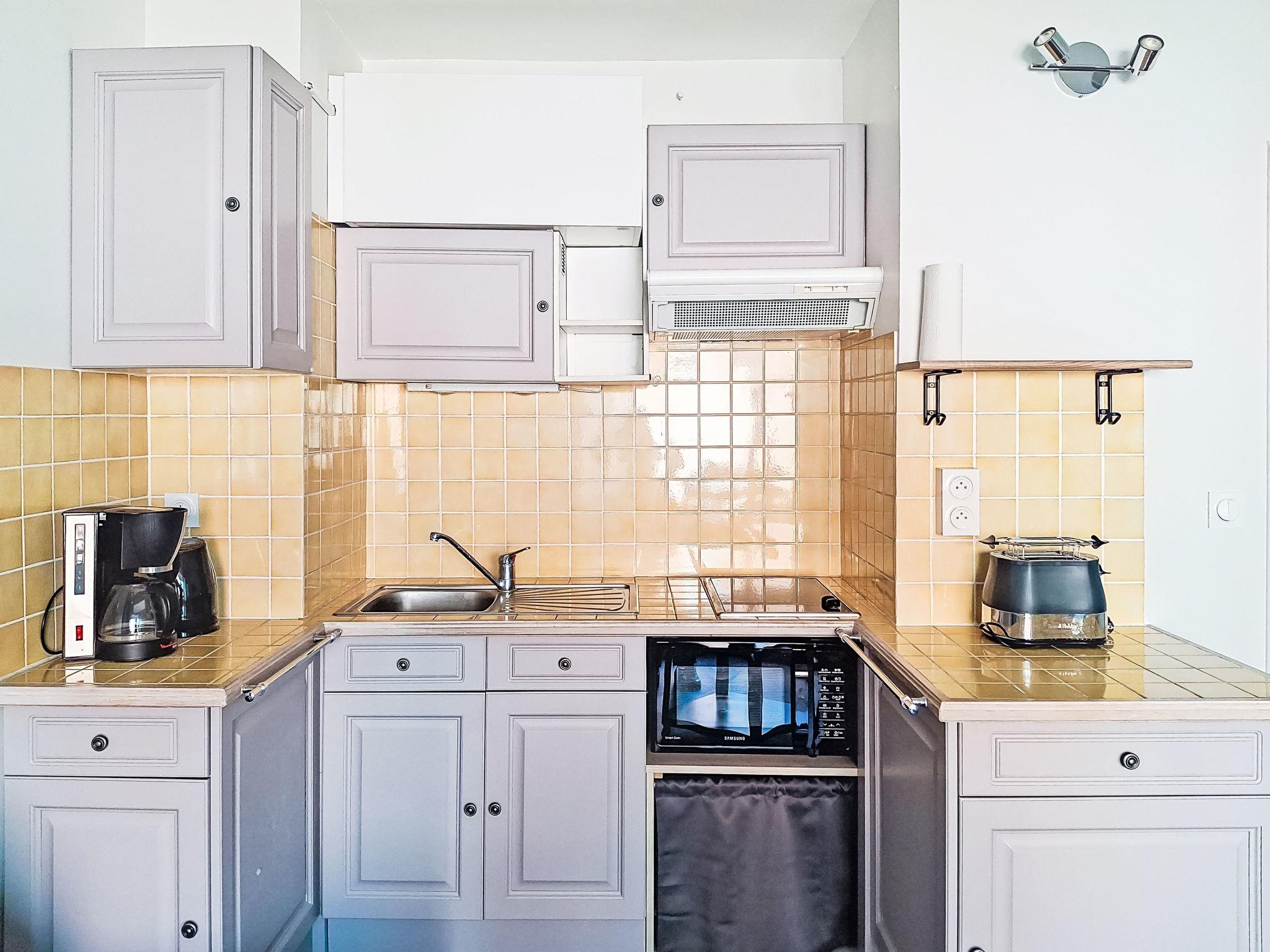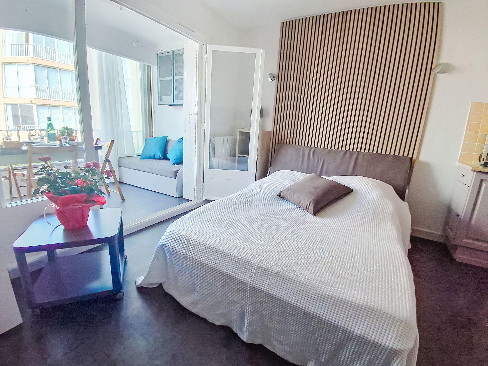 2-room apartment 28 m2 on 1st floor. Object suitable for 2 adults + 2 children. Bright, renovated in 2025, comfortable furnishings: living/dining room with 1 sofabed (135 cm, length 180 cm), dining table and TV (flat screen). Exit to the veranda. 1 room with 1 x 2 bunk beds (90 cm, length 190 cm), 1 french bed (140 cm, length 190 cm). Kitchenette (2 ceramic glass hob hotplates, toaster, kettle, freezer, electric coffee machine, combination microwave). Bath/WC. Electric heating. Partial view of the sea. Facilities: Internet (WiFi, extra). Please note: non-smokers only. TV only FR. Smoke alarm, no lift. Offer by a private individual according to Art. 155, IV of CGI.