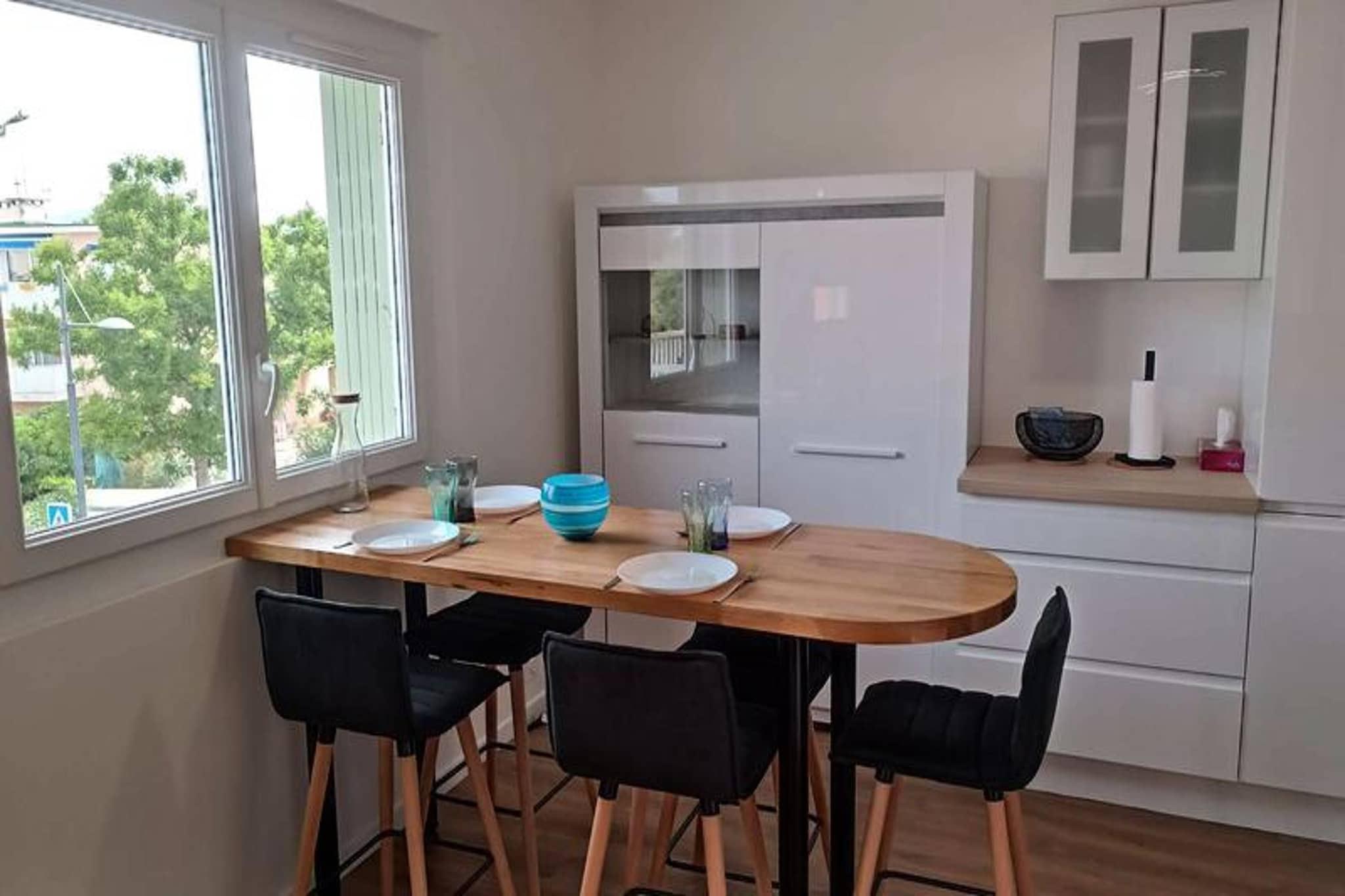 This charming 53 m² apartment in Six Fours les Plages is perfect for a family or group of up to 6 people. It features a cozy living room with a convertible sofa, a fully equipped kitchen, one bedroom with a double bed, and another with two single beds. The bathroom provides all necessary amenities for your comfort. The apartment does not allow pets, and bed linen and towels are not included, though they can be rented for an additional fee. A credit card deposit and tourist taxes are payable on arrival. Ideally located just 300 meters from Bonnegrace Beach, this apartment offers easy access to sun, sand, and sea. The property is surrounded by stunning coastal attractions, including Sanary-sur-Mer, Gaou Islands, Les Embiez, Porquerolles, and Cassis, as well as the vibrant towns of Bandol and Le Castellet. Explore nearby cafes, restaurants, and local markets for a true taste of Provence, or enjoy scenic walks and bike rides along the beautiful coastline. Inside, the apartment boasts a well-equipped kitchen with everything you need for cooking your meals, including a stove, oven, and fridge. The bathroom is functional with WC facilities. For added convenience, the apartment provides free end-of-stay cleaning and access to a Wi-Fi key for an additional fee.