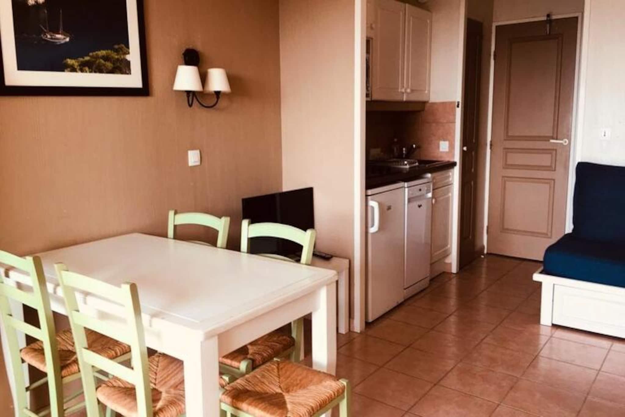 Set within a tranquil wooded estate, this charming ground-floor apartment offers a comfortable retreat for up to five guests. It features a living-dining room with a double sofa bed and a single bed, a bedroom with a double bed, a bathroom with a bathtub, and a separate toilet. The private terrace, complete with outdoor furniture, is perfect for relaxing or dining al fresco. Underground parking is available, though roof boxes are not permitted. Sheets and towels can be rented for an additional fee, and end-of-stay cleaning ensures a stress-free departure. Please note, pets are not allowed. Located in the scenic Coudoulière estate, the property is just 100 meters from the beach and offers direct sea access. Guests can explore nearby attractions such as Sanary-sur-Mer, Bandol, and Le Castellet, or enjoy nature trails, a Mediterranean park, and a peaceful lake within the estate. The beautiful islands of Porquerolles, Les Embiez, and Bendor are easily accessible, and local cafes, markets, and restaurants provide a delightful taste of Provence. The apartment is equipped with a fully functional kitchen, ideal for preparing meals, and includes amenities such as Wi-Fi available for a small daily fee. Hygiene extras like disposable pillowcases and underpads are provided for added comfort. Whether you’re seeking relaxation or adventure, this property offers an ideal seaside escape in a picturesque setting.