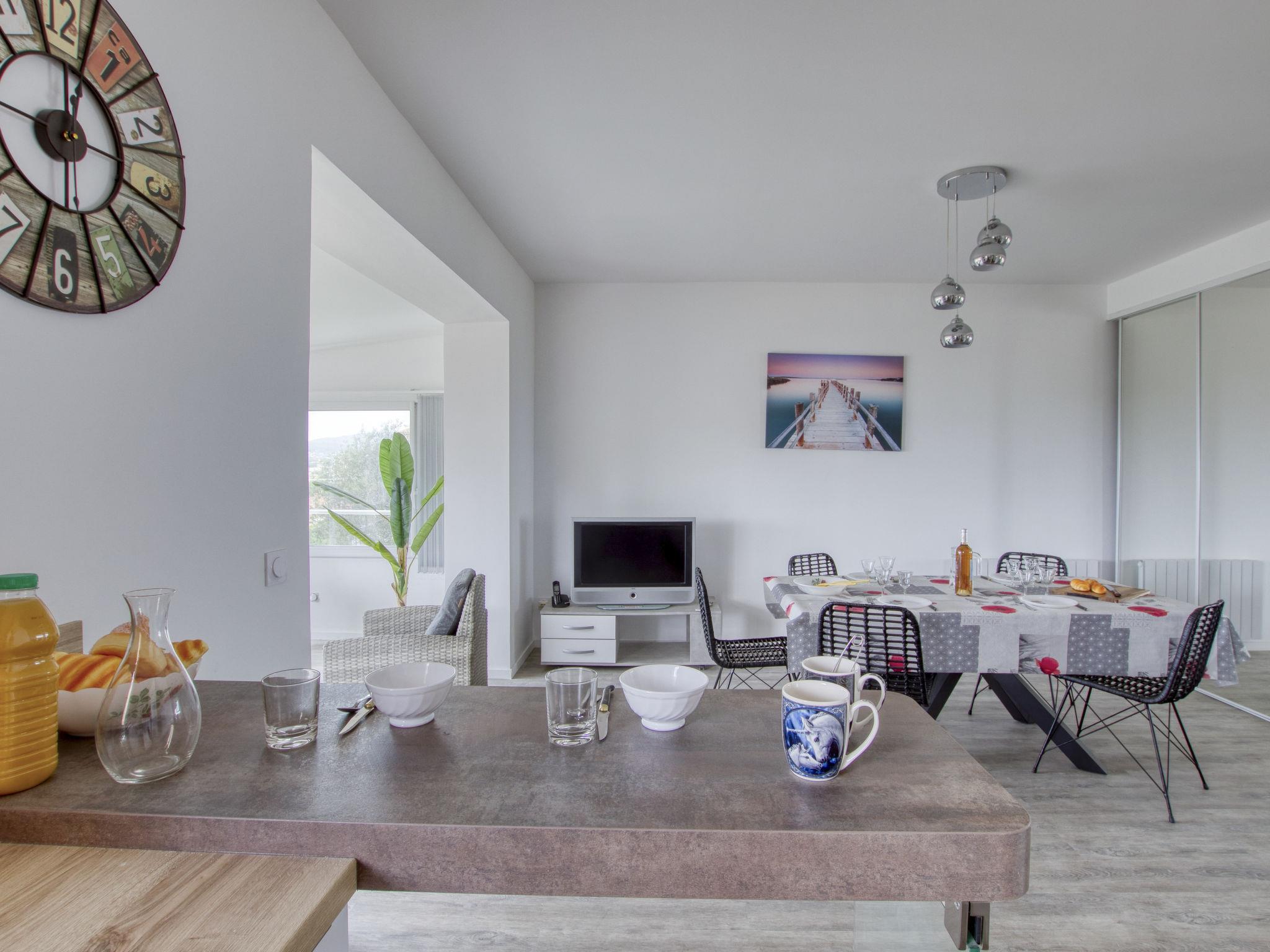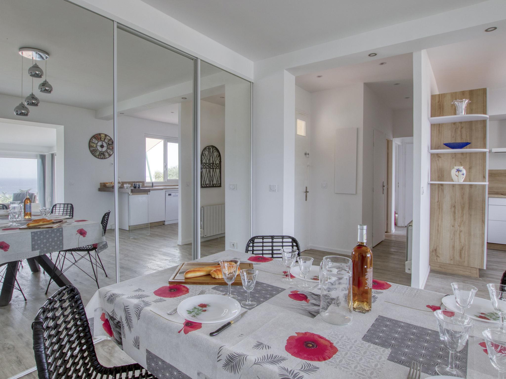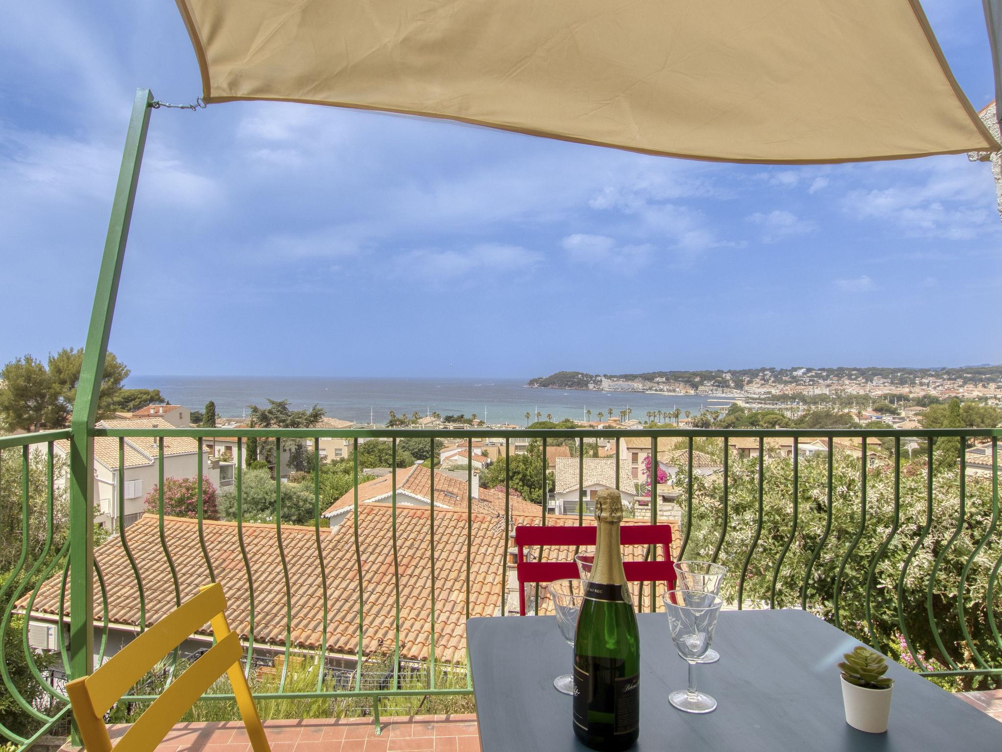 3-room apartment 95 m2 on 1st floor, south-west facing position. Spacious and bright, fully renovated in 2023, beautiful and tasteful furnishings: living/dining room, south-west facing position with fan. Exit to the terrace, south-west facing position. 1 double bedroom with 1 french bed (160 cm, length 190 cm), fan. 1 room with 2 beds (90 cm, length 190 cm). Open kitchen (3 induction hot plates, toaster, kettle, microwave, freezer, electric coffee machine). Exit to the terrace. Shower, sep. WC. Electric heating. 2 terraces 10 m2, south-west facing position and north-east facing position. Terrace furniture, electric barbecue. Marvellous view of the sea. Facilities: washing machine. Internet (WiFi, free). Parking (fenced 2 cars). Please note: TV only FR. Smoke alarm. Offer by a private individual according to Art. 155, IV of CGI. 831290294975