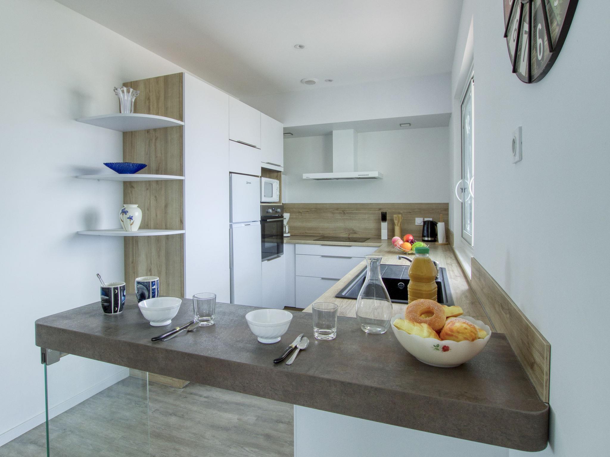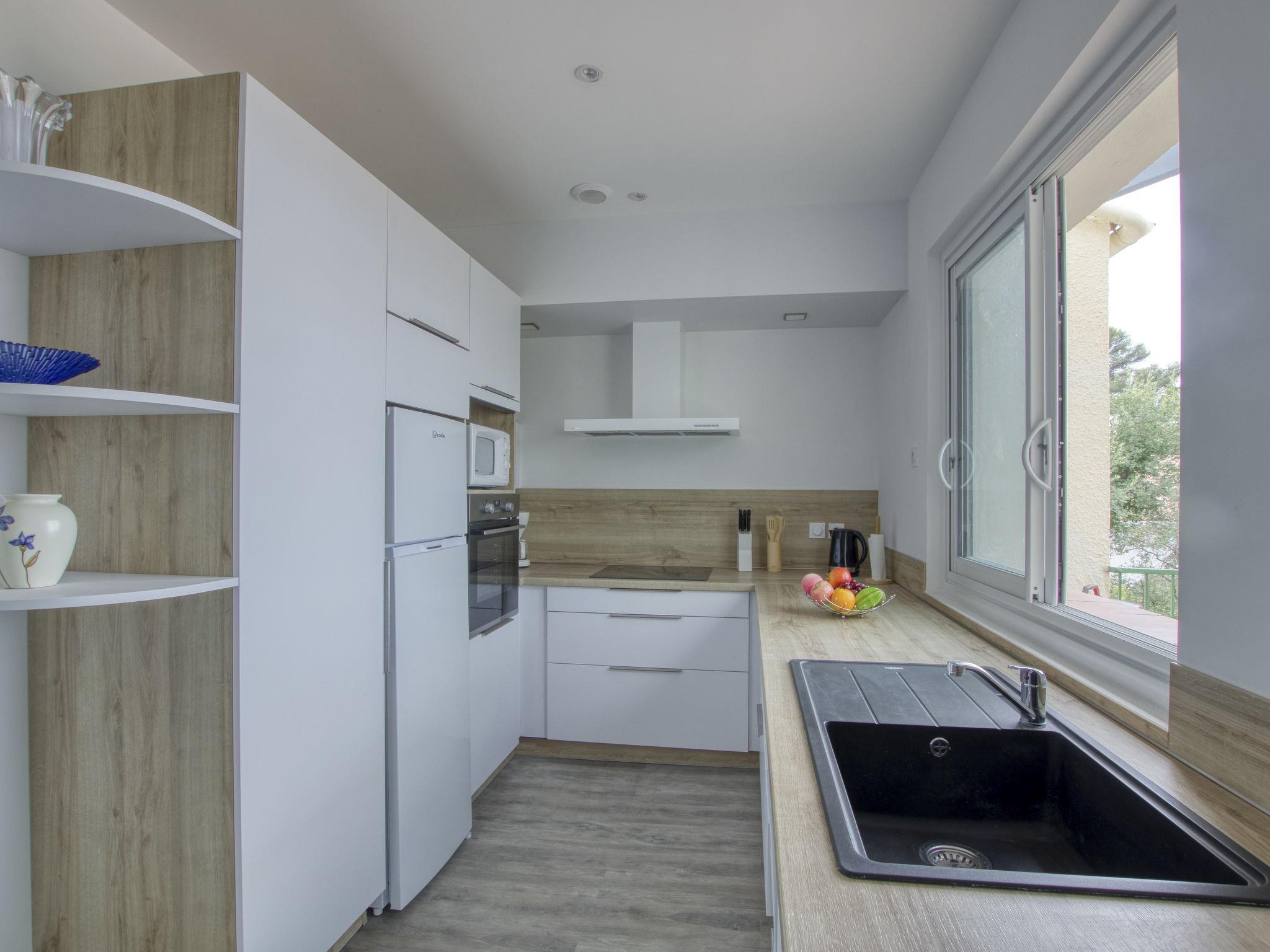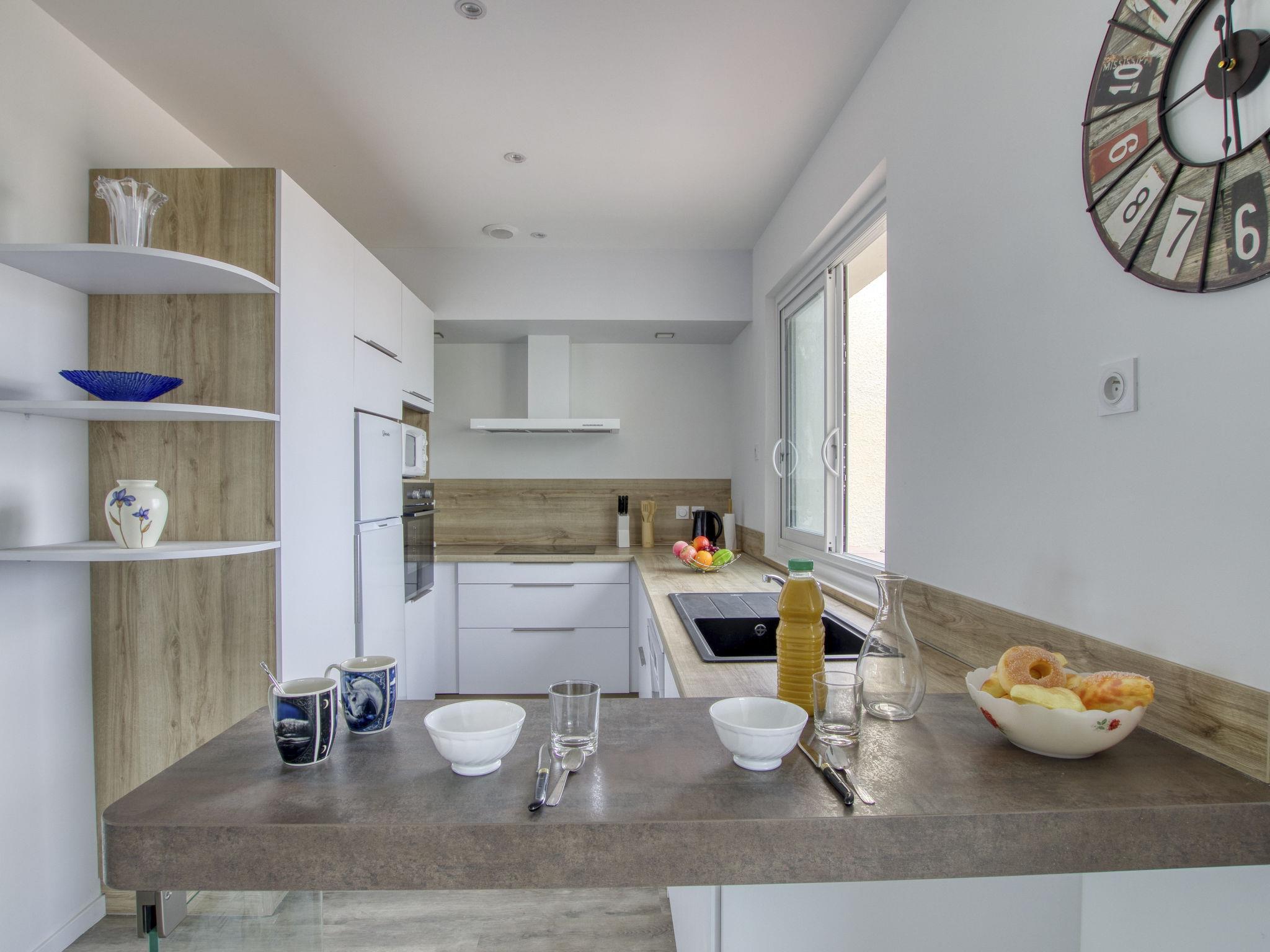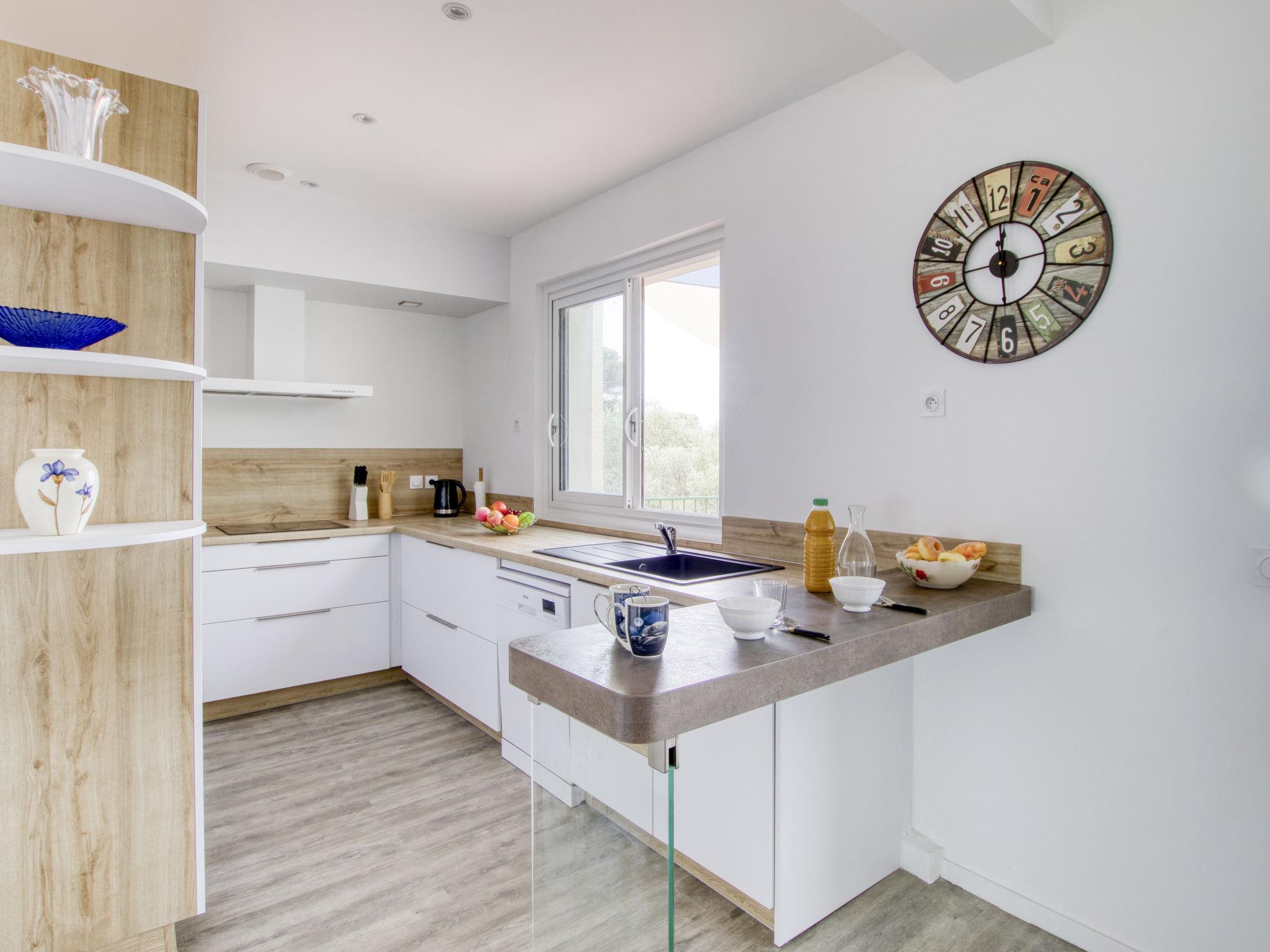 3-room apartment 95 m2 on 1st floor, south-west facing position. Spacious and bright, fully renovated in 2023, beautiful and tasteful furnishings: living/dining room, south-west facing position with fan. Exit to the terrace, south-west facing position. 1 double bedroom with 1 french bed (160 cm, length 190 cm), fan. 1 room with 2 beds (90 cm, length 190 cm). Open kitchen (3 induction hot plates, toaster, kettle, microwave, freezer, electric coffee machine). Exit to the terrace. Shower, sep. WC. Electric heating. 2 terraces 10 m2, south-west facing position and north-east facing position. Terrace furniture, electric barbecue. Marvellous view of the sea. Facilities: washing machine. Internet (WiFi, free). Parking (fenced 2 cars). Please note: TV only FR. Smoke alarm. Offer by a private individual according to Art. 155, IV of CGI. 831290294975