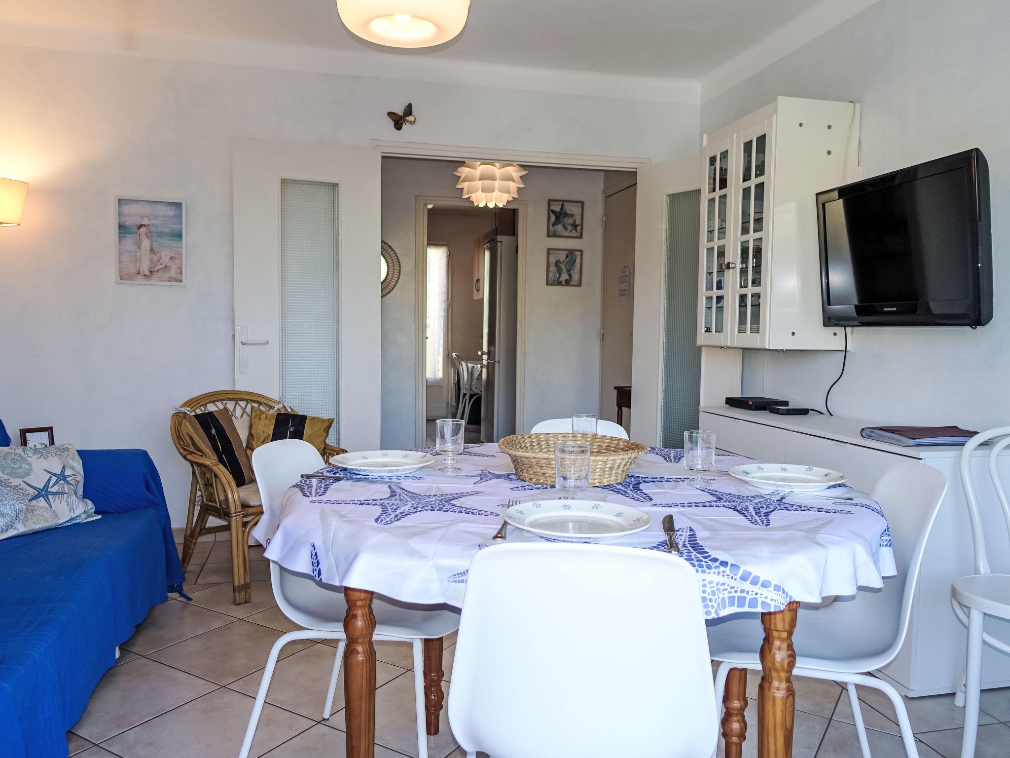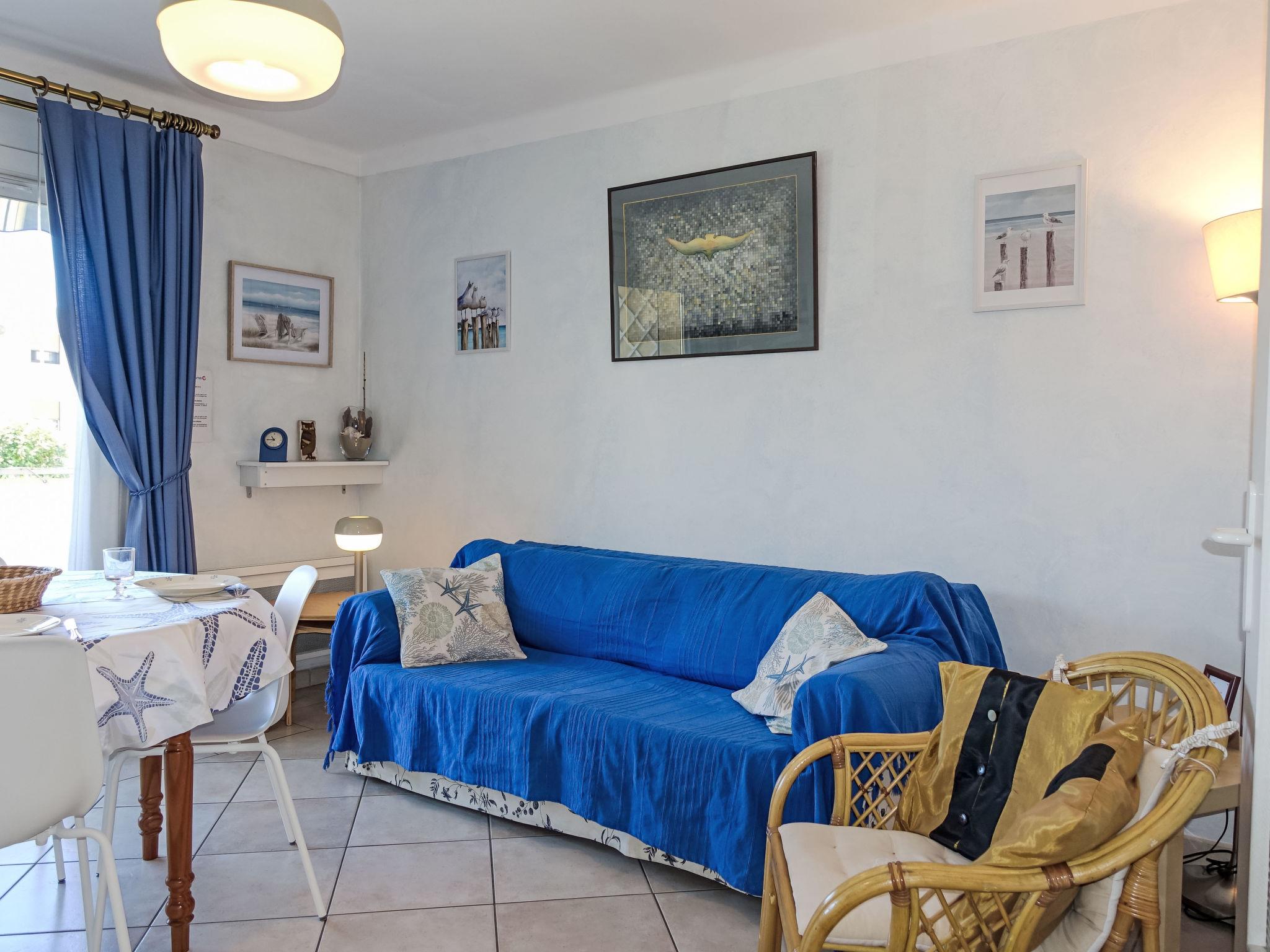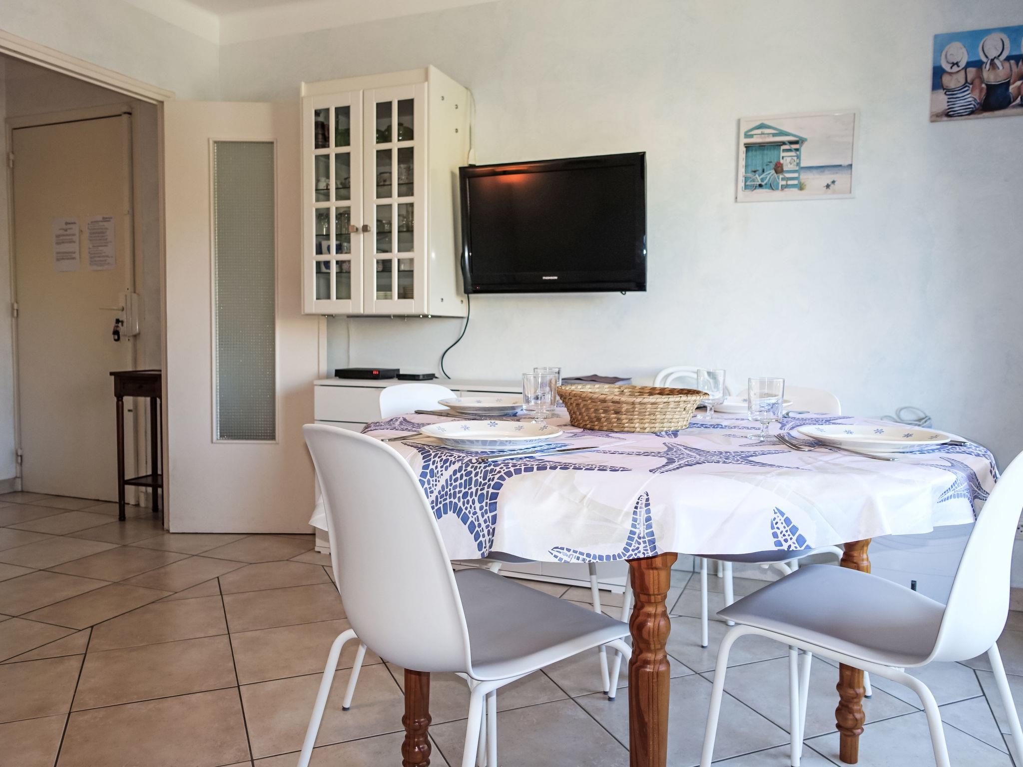 3-room apartment 60 m2, on the upper ground floor. Bright, practical and comfortable furnishings: living/dining room with TV (flat screen), DVD and fan. Exit to the balcony. 1 room with 1 french bed (160 cm, length 200 cm), TV (flat screen), air conditioning and fan. 1 room with 2 beds (80 cm, length 190 cm), air conditioning and fan. Kitchen (4 hot plates, oven, dishwasher, microwave, freezer, electric coffee machine, Capsules for coffee machine (Nespresso) extra). Shower, sep. WC. Electric heating. Balcony 4 m2, south-west facing position. Terrace furniture. Facilities: washing machine, iron, baby cot for up to 2 year olds. Internet (WiFi, free). Please note: TV only FR. Smoke alarm. Please note: the balcony overlooks the parking of the residence. Please note sheets and towels are not provided.
