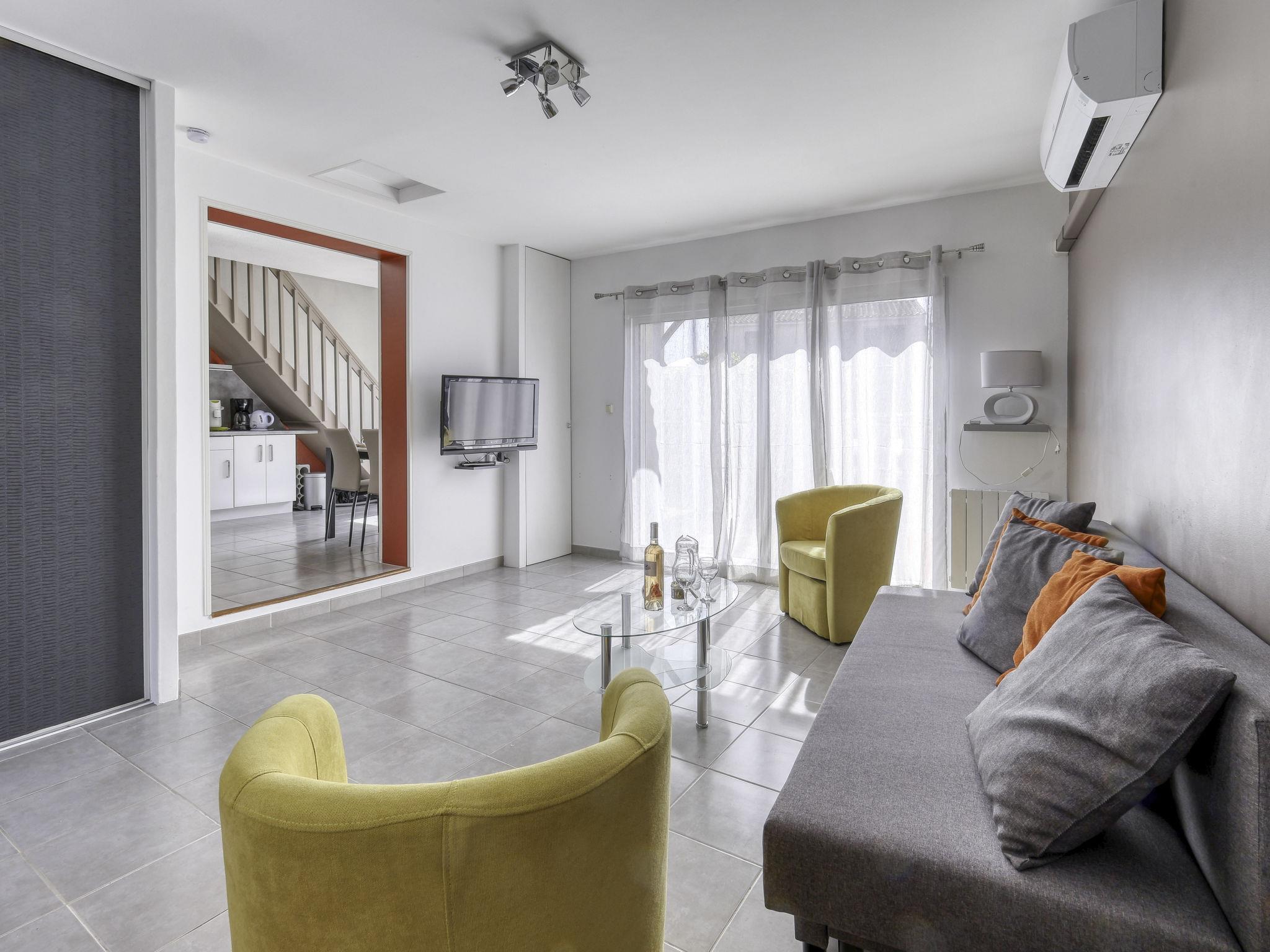 "bonnegrace", 3-room terraced house 60 m2 on 2 levels. Renovated in 2023, comfortable furnishings: living/dining room with TV (flat screen), air conditioning. Exit to the terrace. Kitchen (oven, dishwasher, 4 ceramic glass hob hotplates, toaster, kettle, microwave, electric coffee machine). Exit to the terrace. Shower, sep. WC. Electric heating. Upper floor: (steep stair), 1 room with 1 french bed (140 cm, length 200 cm). 1 room with 1 x 2 bunk beds (90 cm, length 190 cm). Sep. WC. Air-conditioning. Terrace 10 m2, south facing position and, east facing position terrace 12 m2, north facing position and, east facing position. Terrace furniture. Facilities: washing machine, iron. Internet (WiFi, free). Parking (1 car). Please note: TV only FR. Smoke alarm. Offer by a private individual according to Art. 155, IV of CGI. FR8353.440.1