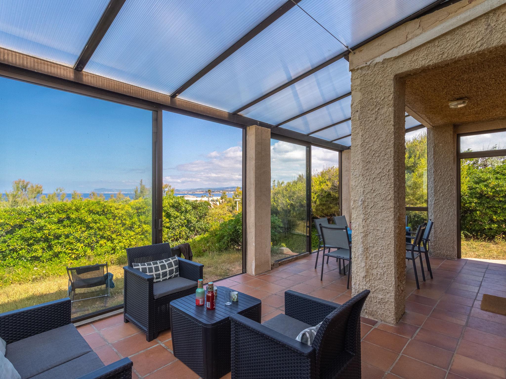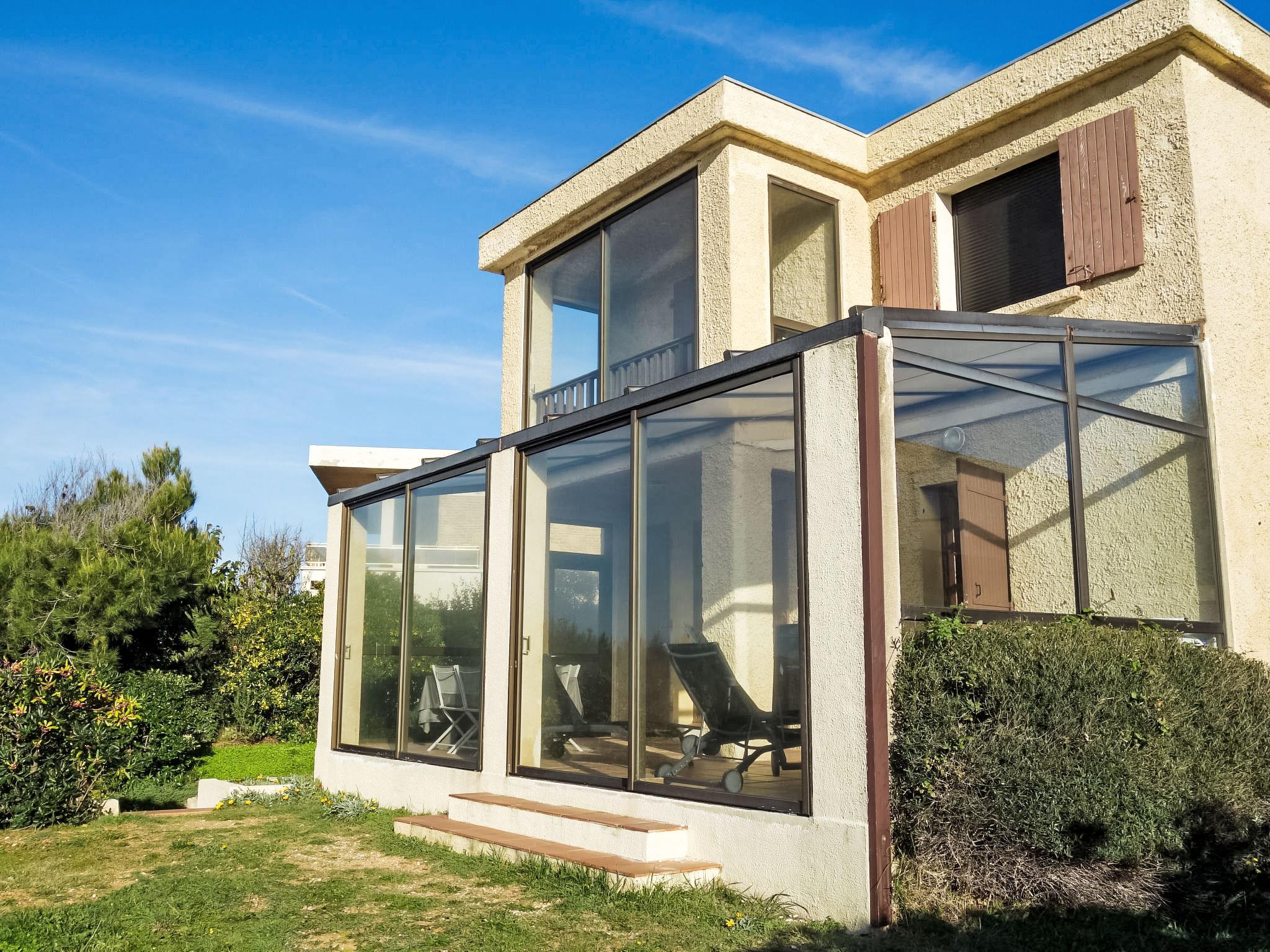 4-room villa 88 m2 on 2 levels, west facing position. Spacious and bright, renovated in 2013, comfortable and beautiful furnishings: living/dining room with open-hearth fireplace (only for decoration), TV (flat screen), DVD. Exit to the garden, to the veranda. Kitchen (oven, dishwasher, 3 induction hot plates, toaster, kettle, microwave, freezer, electric coffee machine). Exit to the garden. Sep. WC. Upper floor: 1 room with 1 french bed (160 cm, length 200 cm). 1 room with 1 french bed (140 cm, length 190 cm). 1 room with 2 beds (90 cm, length 190 cm). Shower/WC. Electric heating. Terrace furniture, electric barbecue. Beautiful view of the sea. Facilities: washing machine. Internet (WiFi, extra). Parking (fenced 2 cars). Please note: maximum 1 pet/ dog allowed. TV only FR. Smoke alarm. There is no air conditioning. Veranda 25 m².