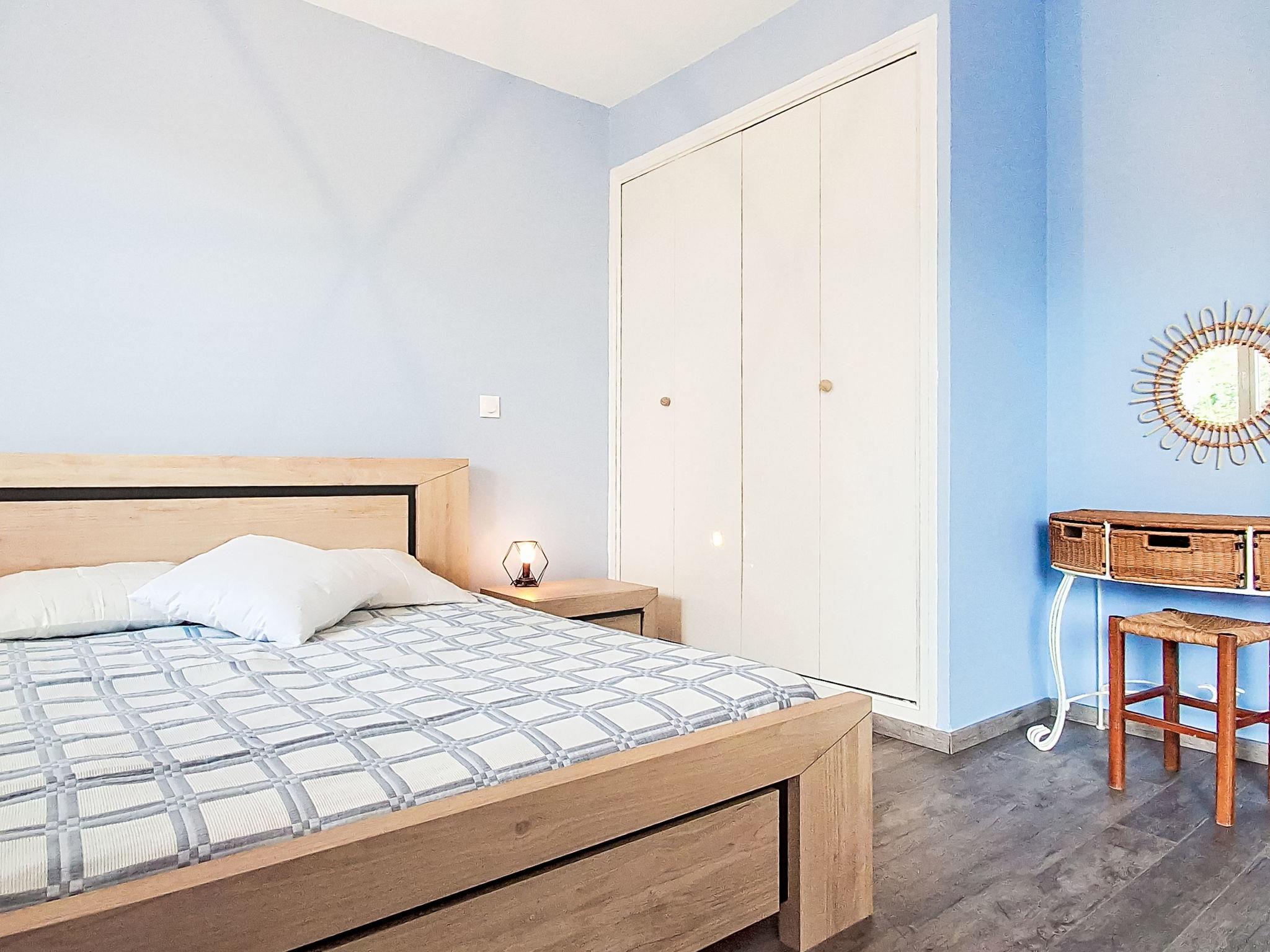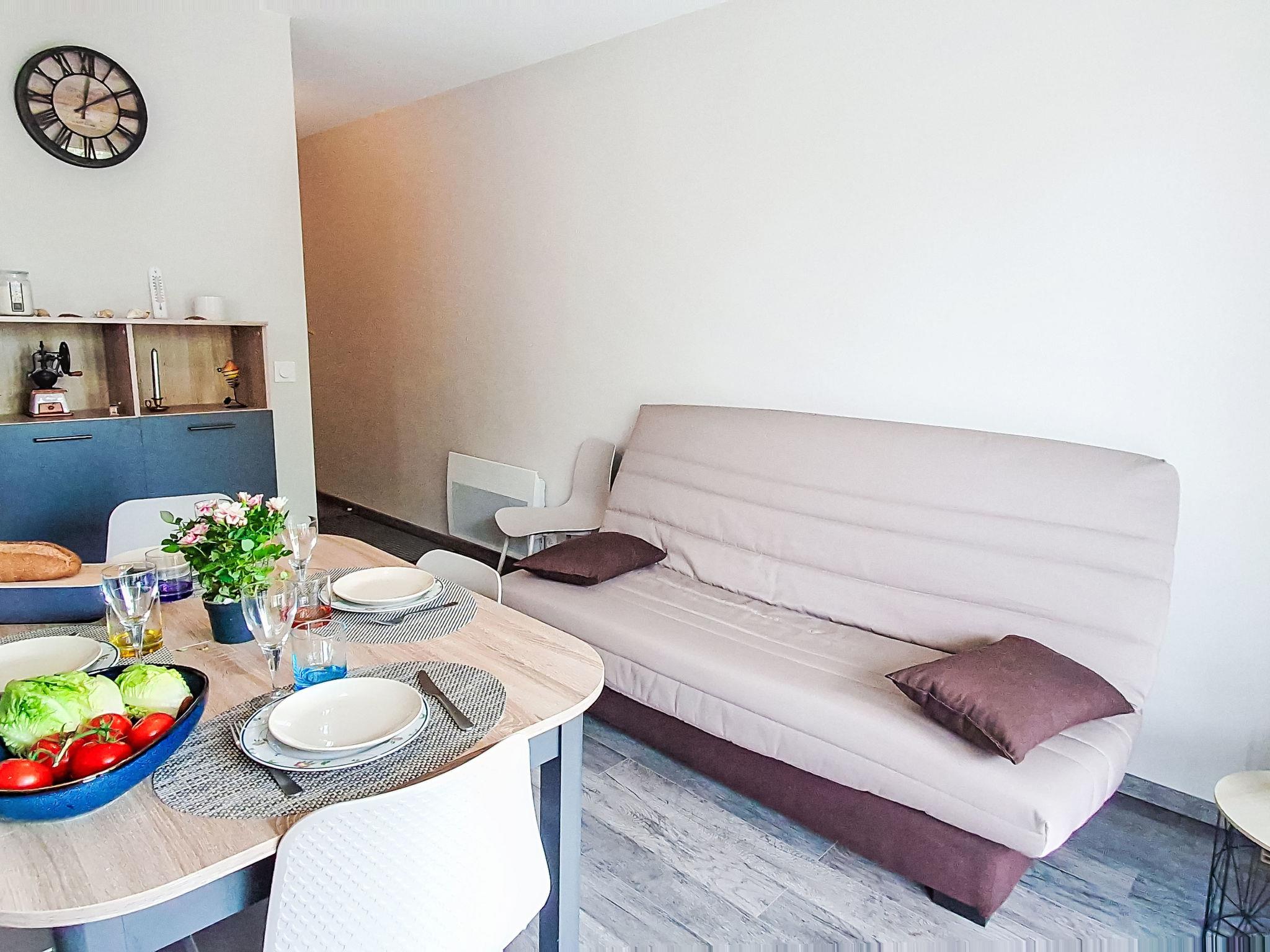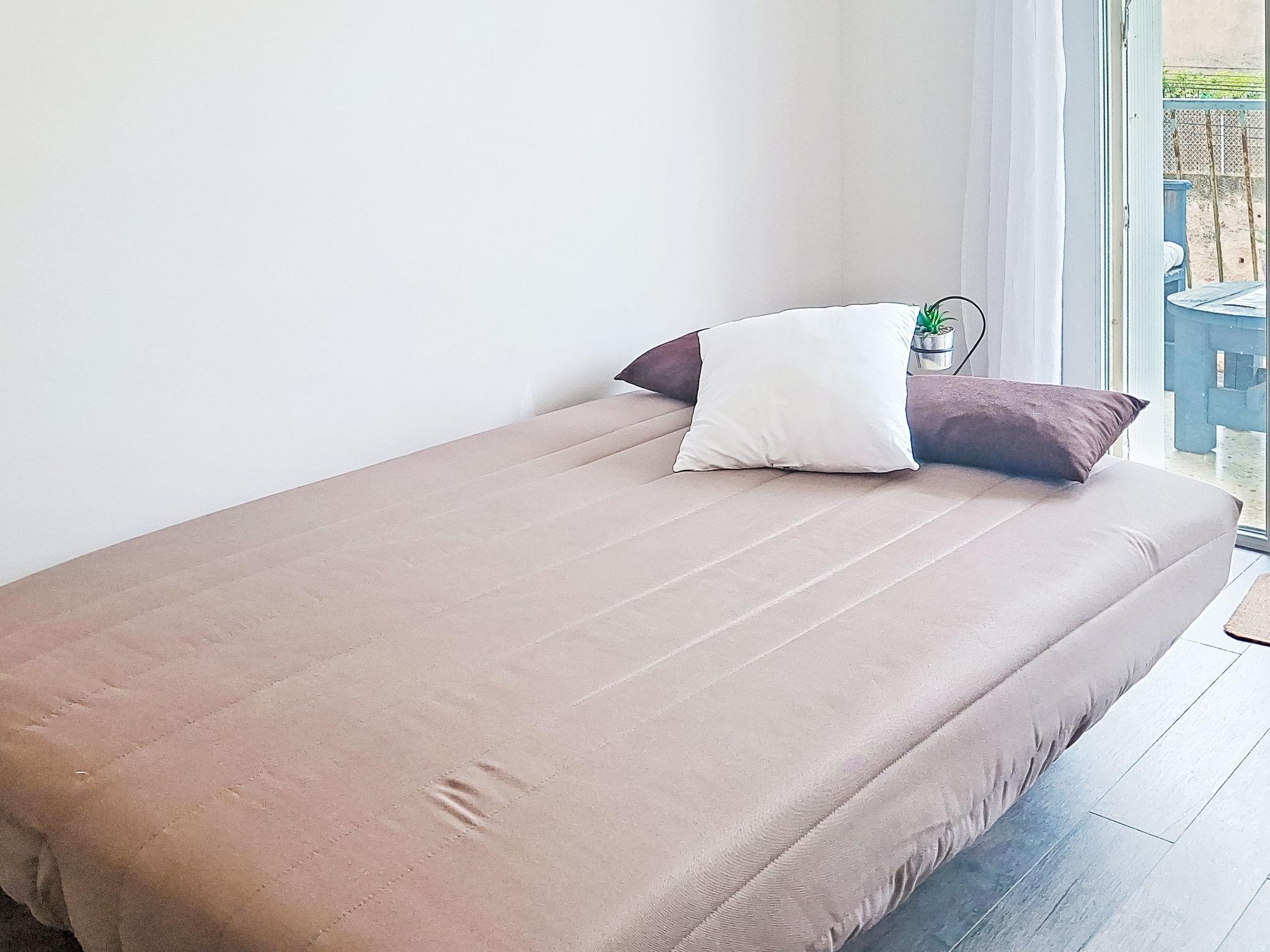 1-room apartment 36 m2 on 2nd floor. Bright, renovated in 2025, comfortable furnishings: living/dining room with 1 sofabed (135 cm, length 190 cm), 1 french bed (135 cm, length 190 cm), dining table and TV (flat screen). Exit to the terrace. Kitchenette (2 ceramic glass hob hotplates, toaster, microwave, freezer, electric coffee machine). Shower, sep. WC. Electric heating. Balcony 10 m2. Balcony furniture. Facilities: Internet (WiFi, free). Please note: non-smokers only. Maximum 1 small pet/ dog allowed. Smoke alarm, no lift. Offer by a private individual according to Art. 155, IV of CGI.