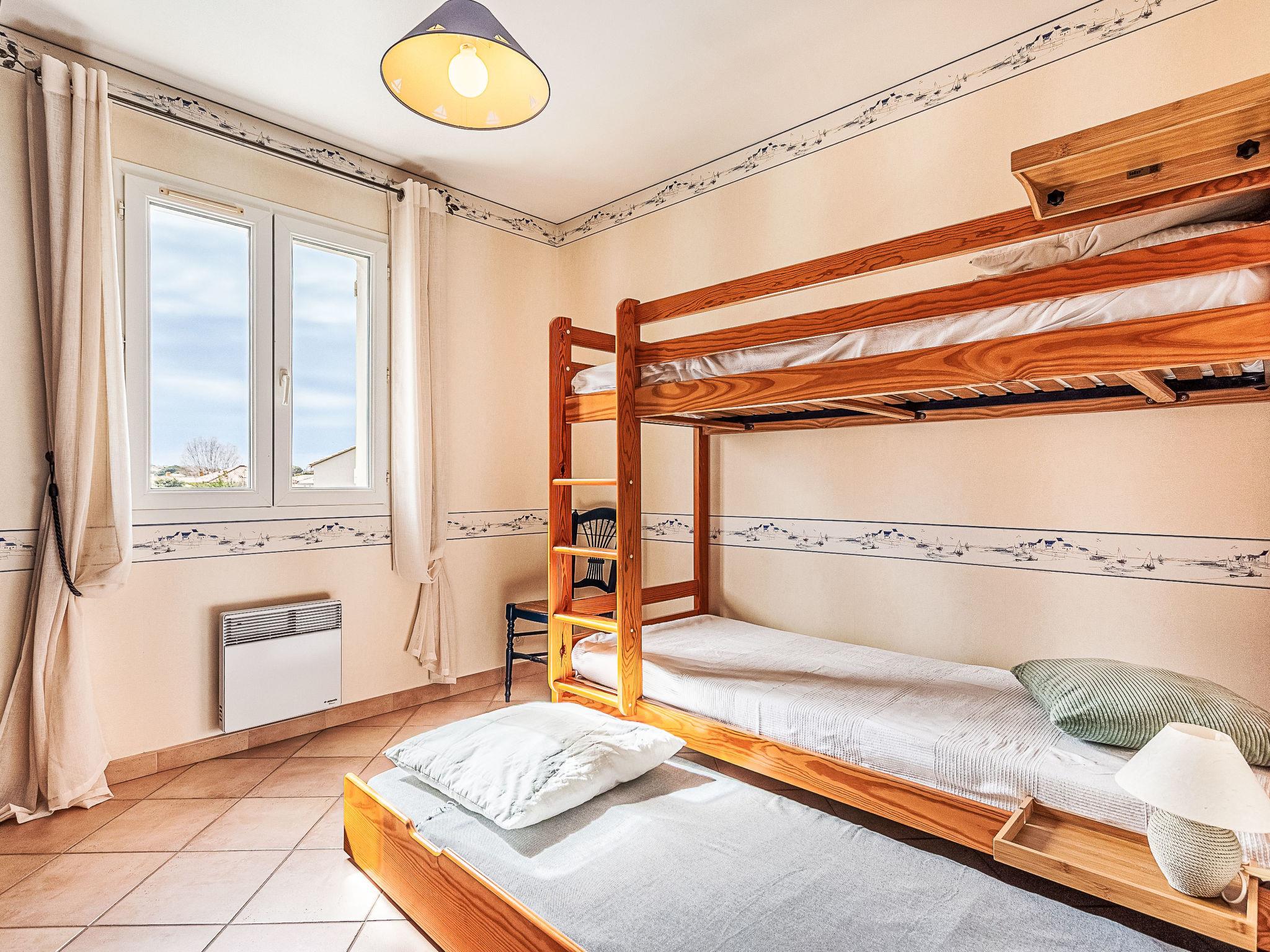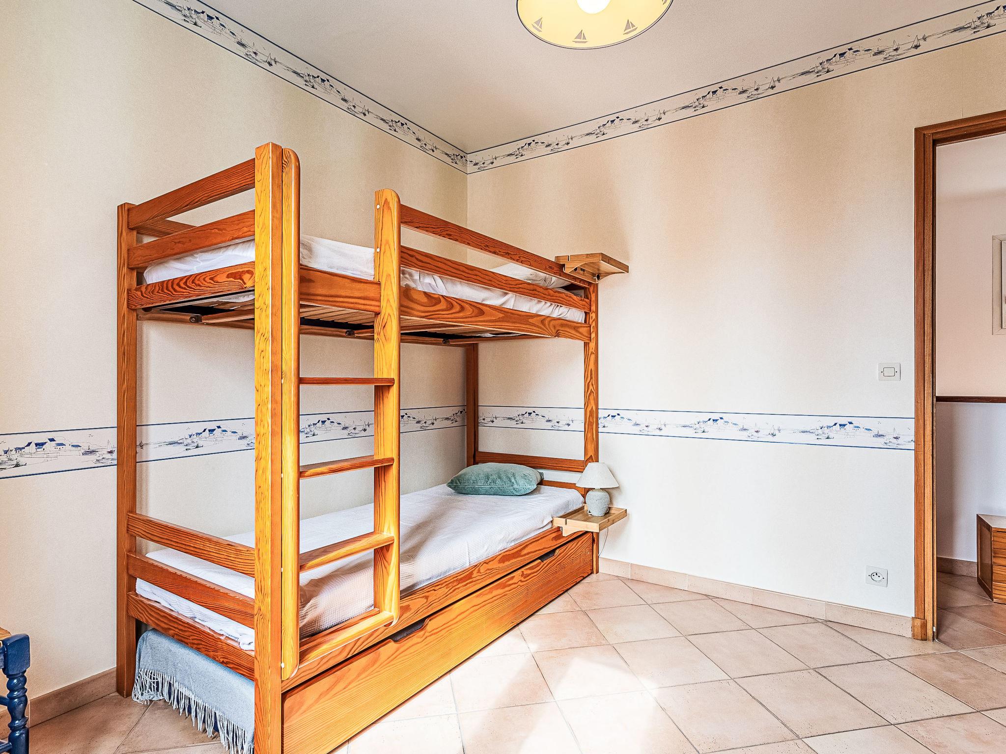 4-room house 115 m2 on 2 levels. Living/dining room with open-hearth fireplace (only for decoration), TV (flat screen). 1 room with 1 french bed (140 cm, length 190 cm), hand-basin and shower/WC. Kitchen (oven, dishwasher, 1 induction hot plates, 4 gas rings, toaster, kettle, microwave, freezer, electric coffee machine). Exit to the terrace. Upper floor: 1 room with 1 french bed (140 cm, length 190 cm). 1 room with 1 x 2 bunk beds (80 cm, length 190 cm), 1 pull-out bed (1 pers.). Bath/shower, sep. WC. Electric heating. Large terrace 30 m2, south facing position and west facing position, large terrace 20 m2, north facing position and, east facing position. Terrace furniture. Facilities: washing machine. Internet (WiFi, free). Parking (fenced 1 car). Please note: non-smoking house. TV only FR. Smoke alarm. Offer by a private individual according to Art. 155, IV of CGI.