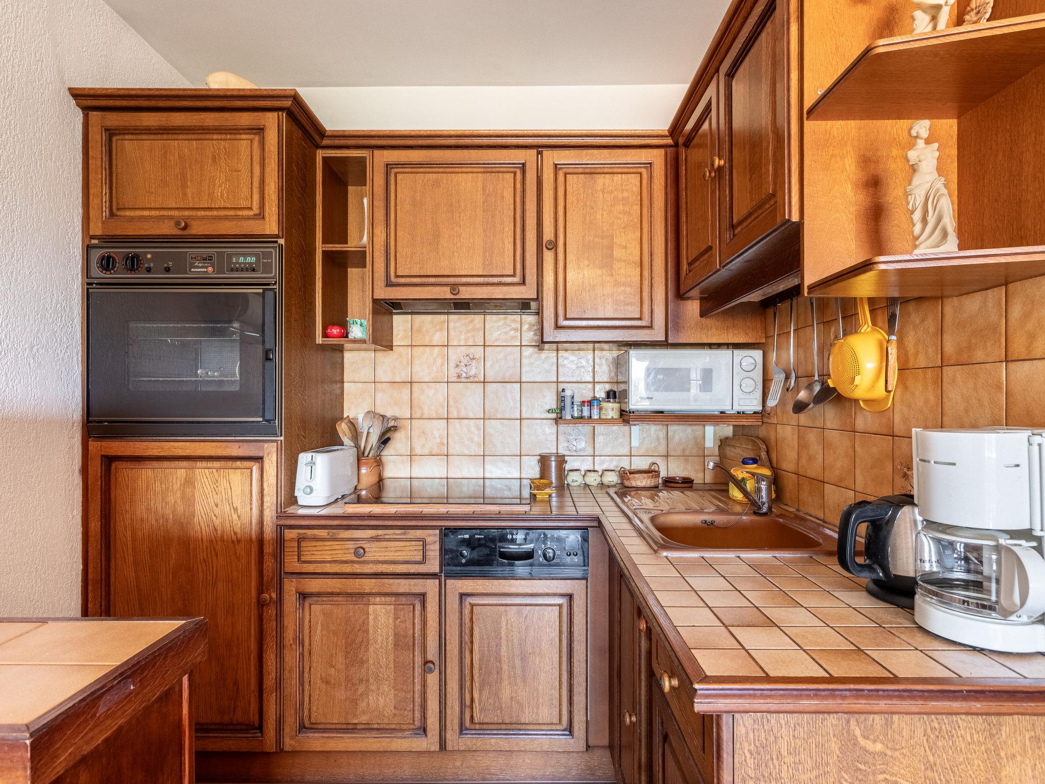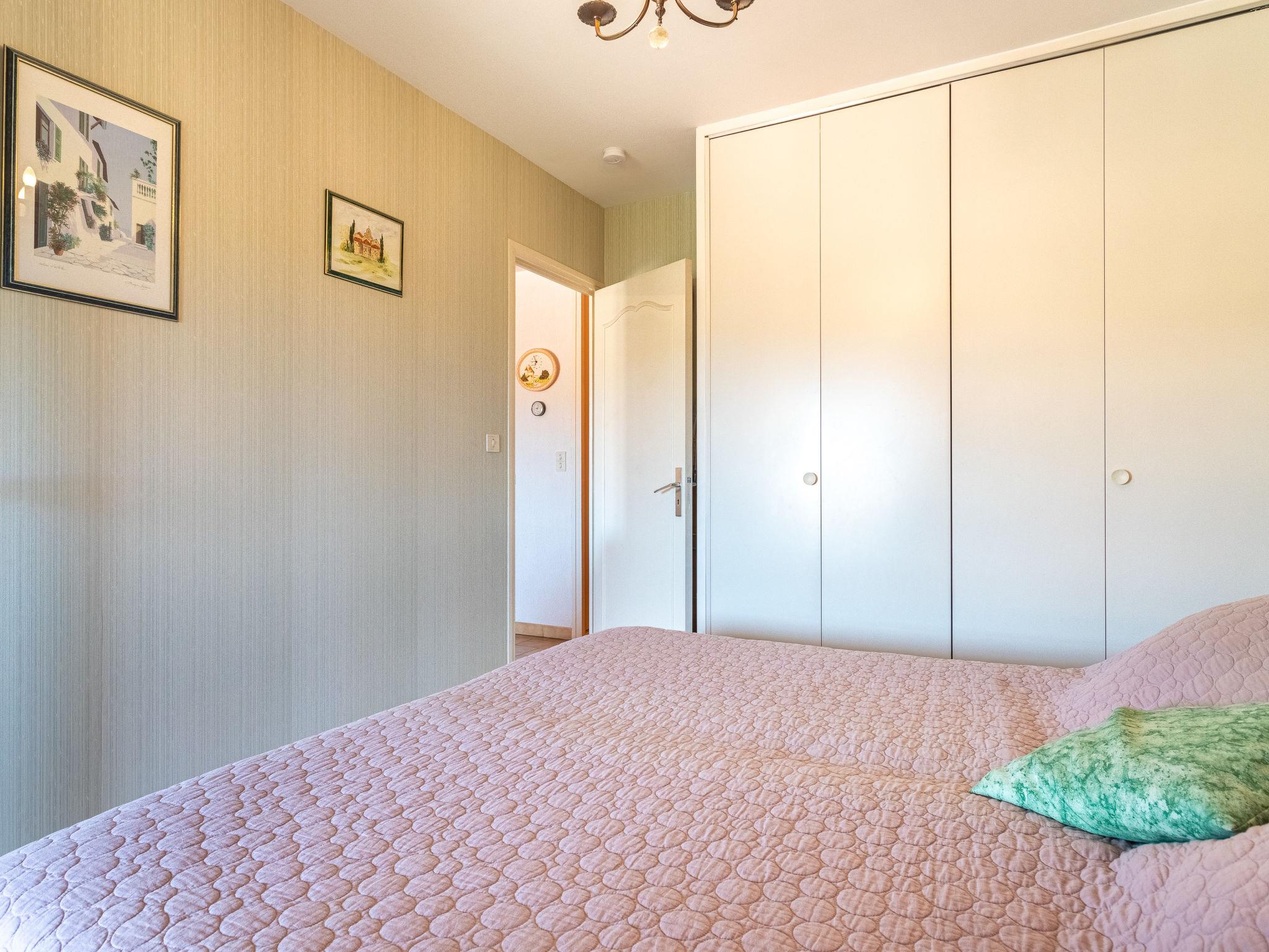 2-room apartment 36 m2 on 2nd floor. Beautiful furnishings: living/dining room with 1 double sofabed (140 cm, length 190 cm), TV (flat screen). Exit to the loggia. 1 room with 2 beds (90 cm, length 190 cm). Exit to the loggia. Kitchenette (dishwasher, 1 induction hot plates, 3 gas rings, toaster, microwave, freezer, electric coffee machine, Capsules for coffee machine (Nespresso) extra). Shower, sep. WC. Electric heating. Terrace 13 m2, roofed, west facing position and north-west facing position. Terrace furniture. Facilities: washing machine. Internet (WiFi, extra). Please note: maximum 1 small pet/ dog allowed. TV only FR. Smoke alarm. You have to climb 15 steps to reach the elevator. Offer by a private individual according to Art. 155, IV of CGI.