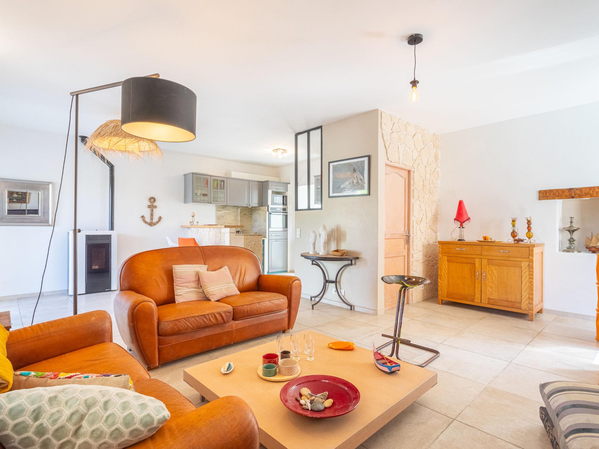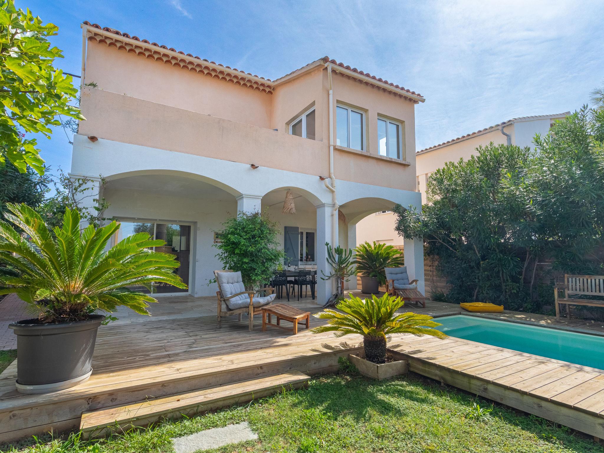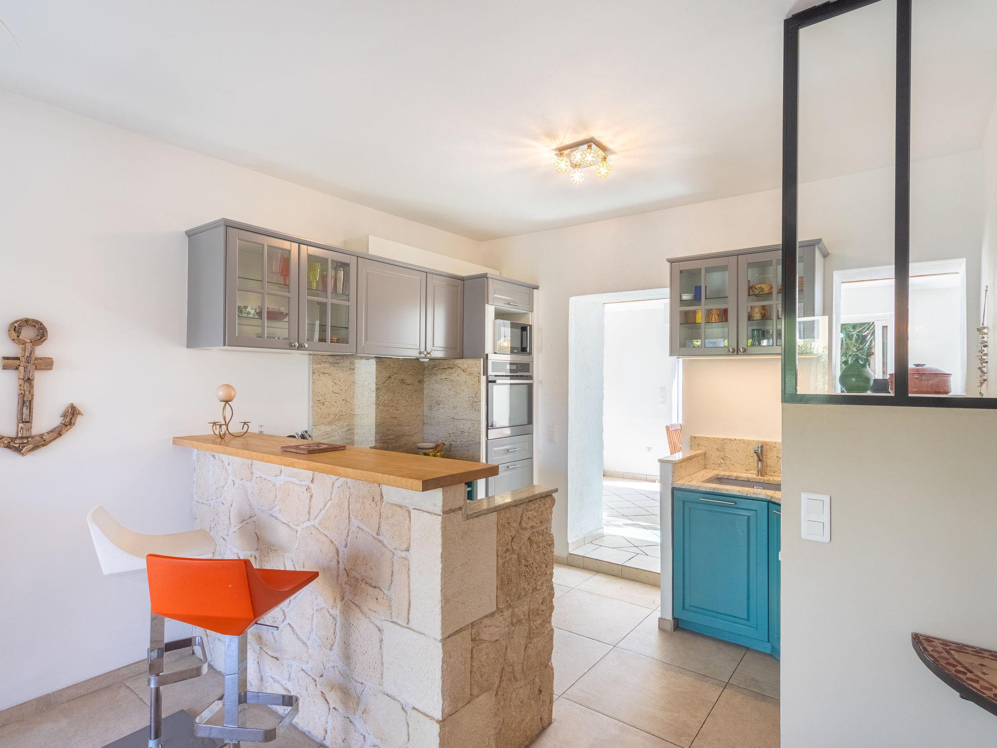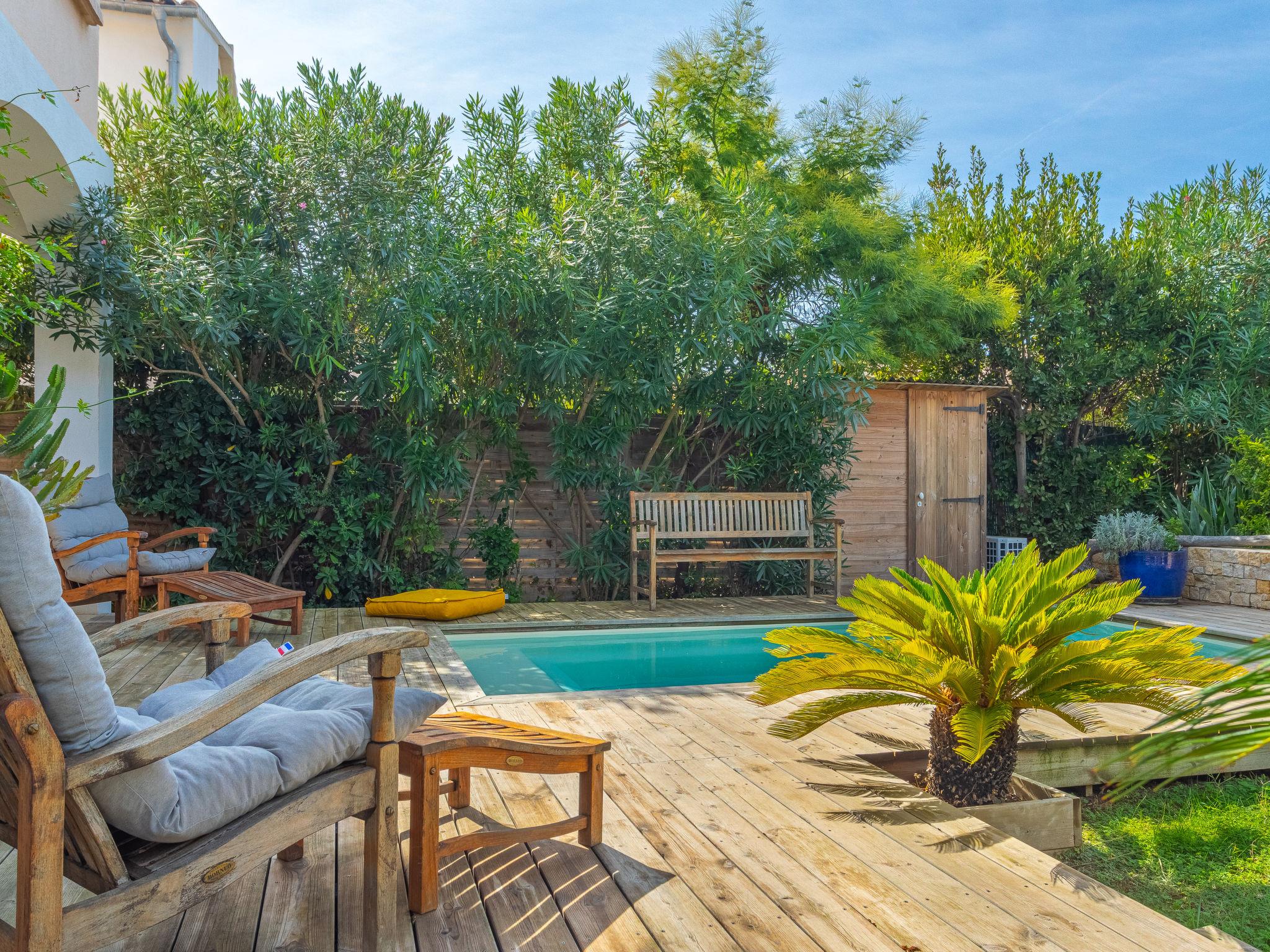 Single-family house. Le Brusc 4 km from the centre of Six Fours, 6.5 km from the centre of Sanary Sur Mer, 12 km from the centre of Bandol, 100 m from the sea. Private: well-kept garden 800 m2 (fenced), swimming pool (5 x 2 m, depth 140 - 140 cm, seasonal availability: 01.Apr. - 26.Oct.) with alarm system and salt-electrolysis pool-cleaning system. Parking (for 3 cars) on the premises. Shop, grocery, restaurant, bakery, café 500 m, bus stop 50 m, railway station "Toulon" 17 km, sandy beach "du Cros Le Brusc" 500 m. Nearby attractions: Iles du Gaou 1 km, Iles des Embiez, Iles de Porquerolles, Calanques de Cassis, Hyeres. The owner does not accept any youth groups.