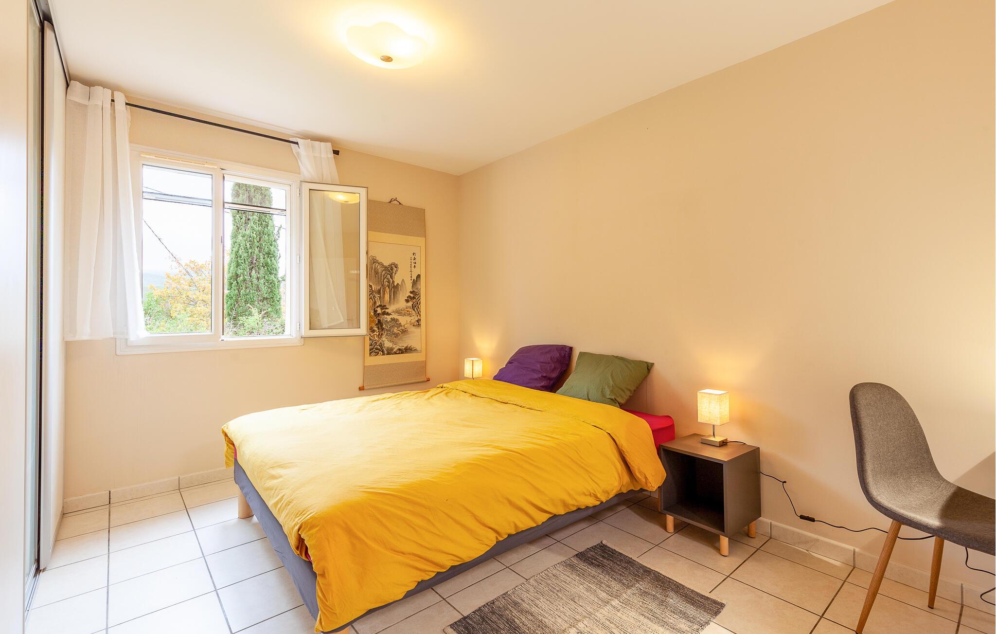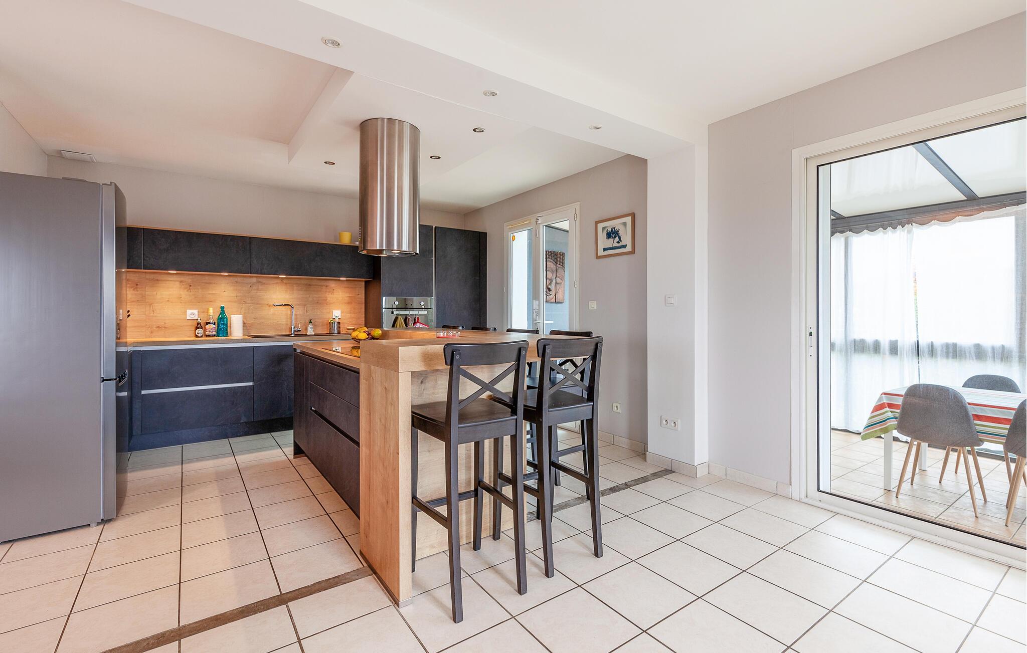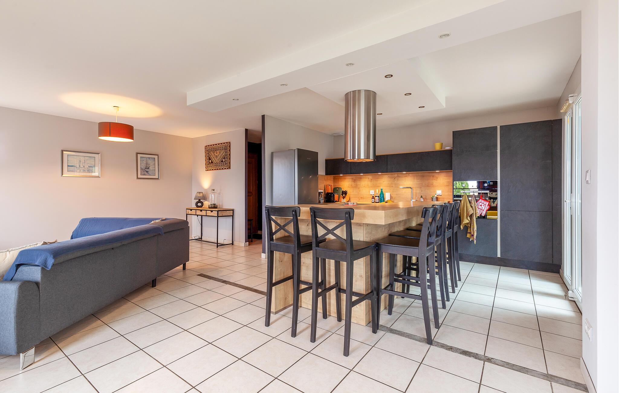 Tag en pause fra hverdagens stress og glæd jer til en skøn ferieoase i dette farverige og indbydende hus, der blandt andet byder på en dejlig udestue. Huset byder på masser af plads, så I kan rejse med den udvidede familie eller en vennefamilie, uden at give køb på jeres privatliv. Den store, åbne stue er husets hjerte, og her kan amatørkokkene kræse om jeres livretter i køkkenet, mens andre finder sig godt til rette i sofaen med et puslespil eller en god bog.