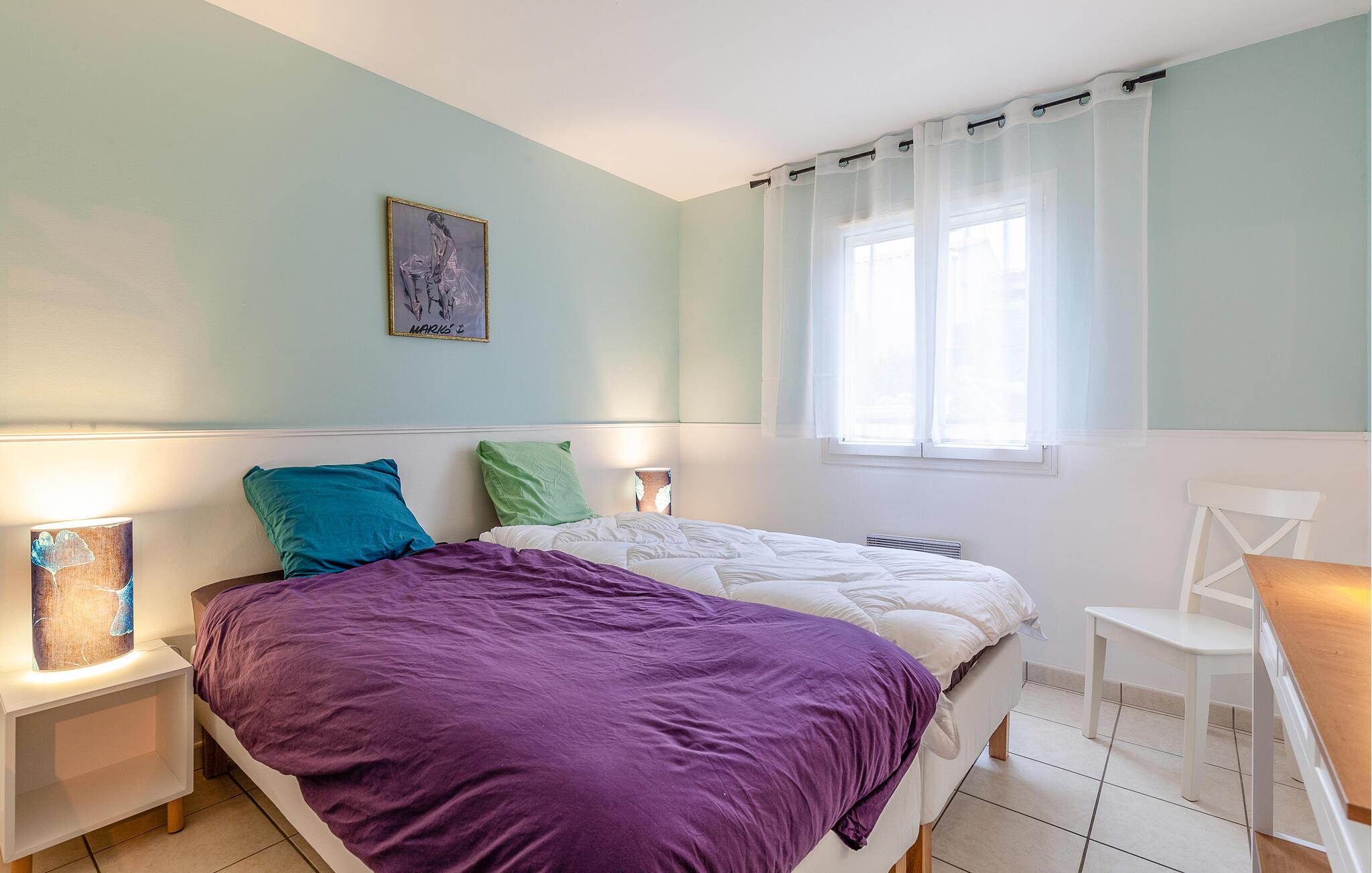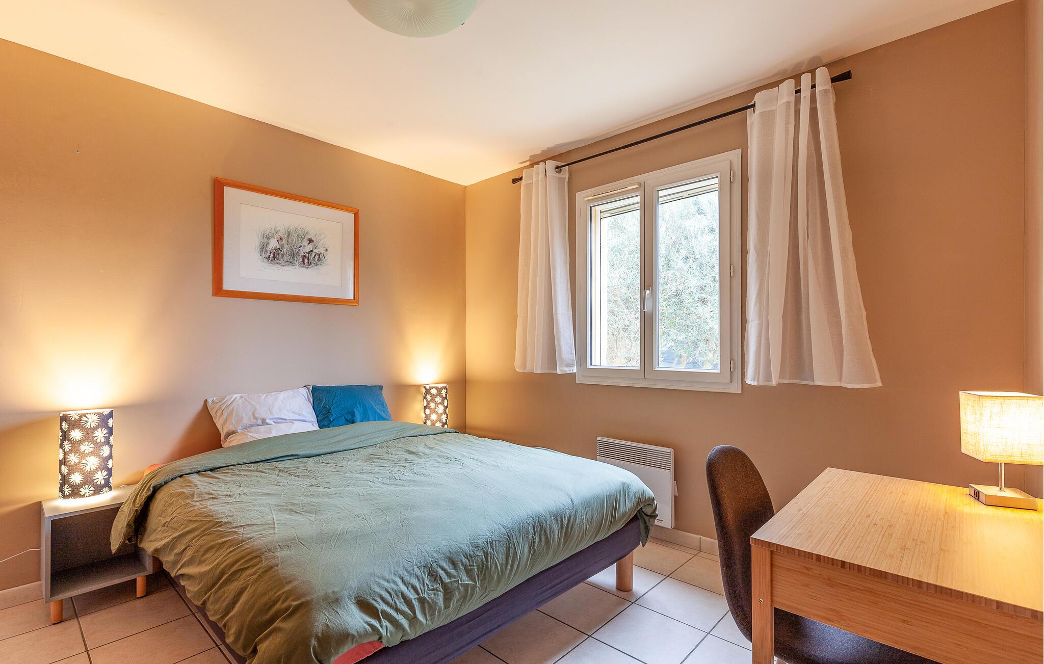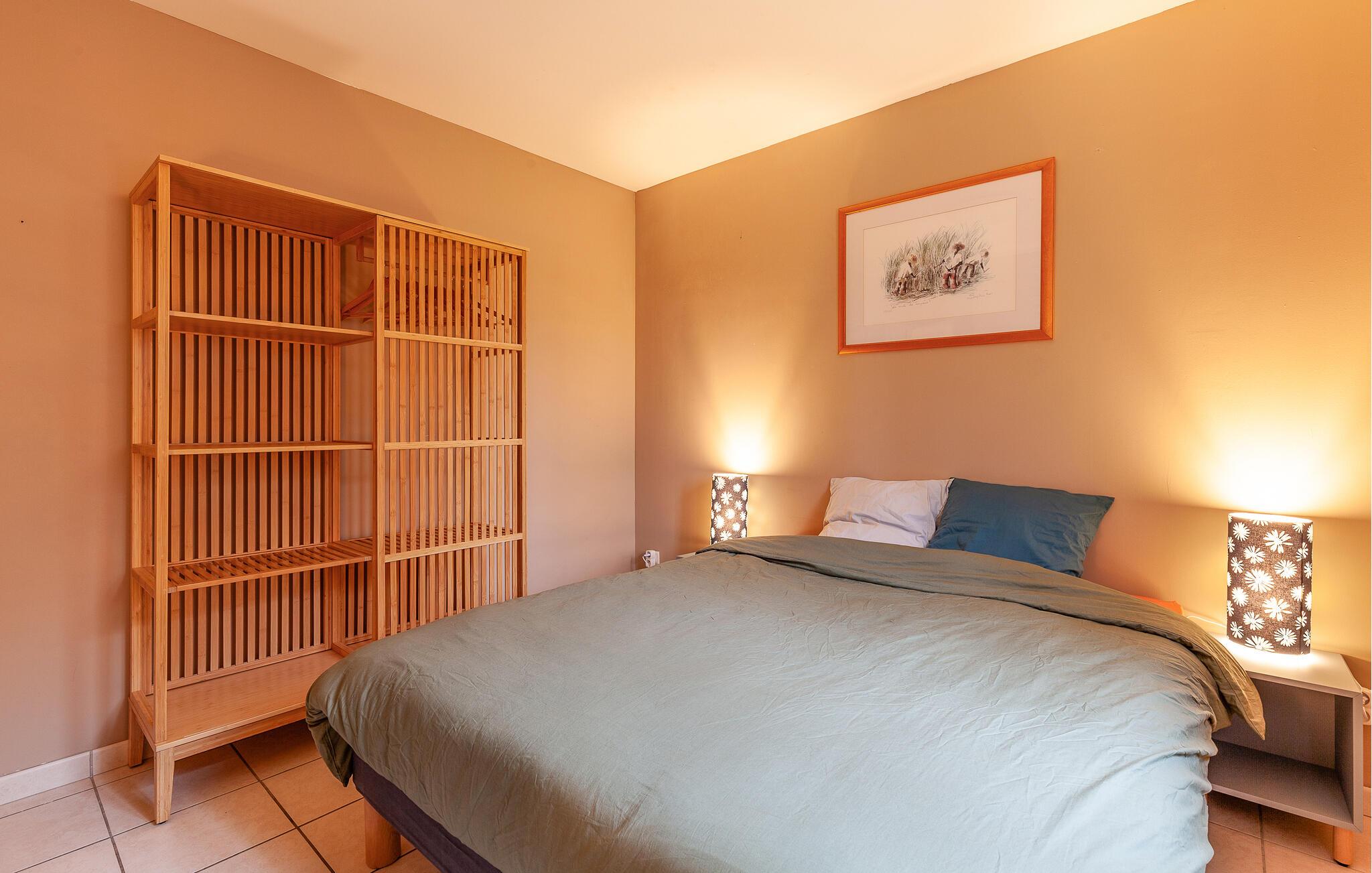 Tag en pause fra hverdagens stress og glæd jer til en skøn ferieoase i dette farverige og indbydende hus, der blandt andet byder på en dejlig udestue. Huset byder på masser af plads, så I kan rejse med den udvidede familie eller en vennefamilie, uden at give køb på jeres privatliv. Den store, åbne stue er husets hjerte, og her kan amatørkokkene kræse om jeres livretter i køkkenet, mens andre finder sig godt til rette i sofaen med et puslespil eller en god bog.