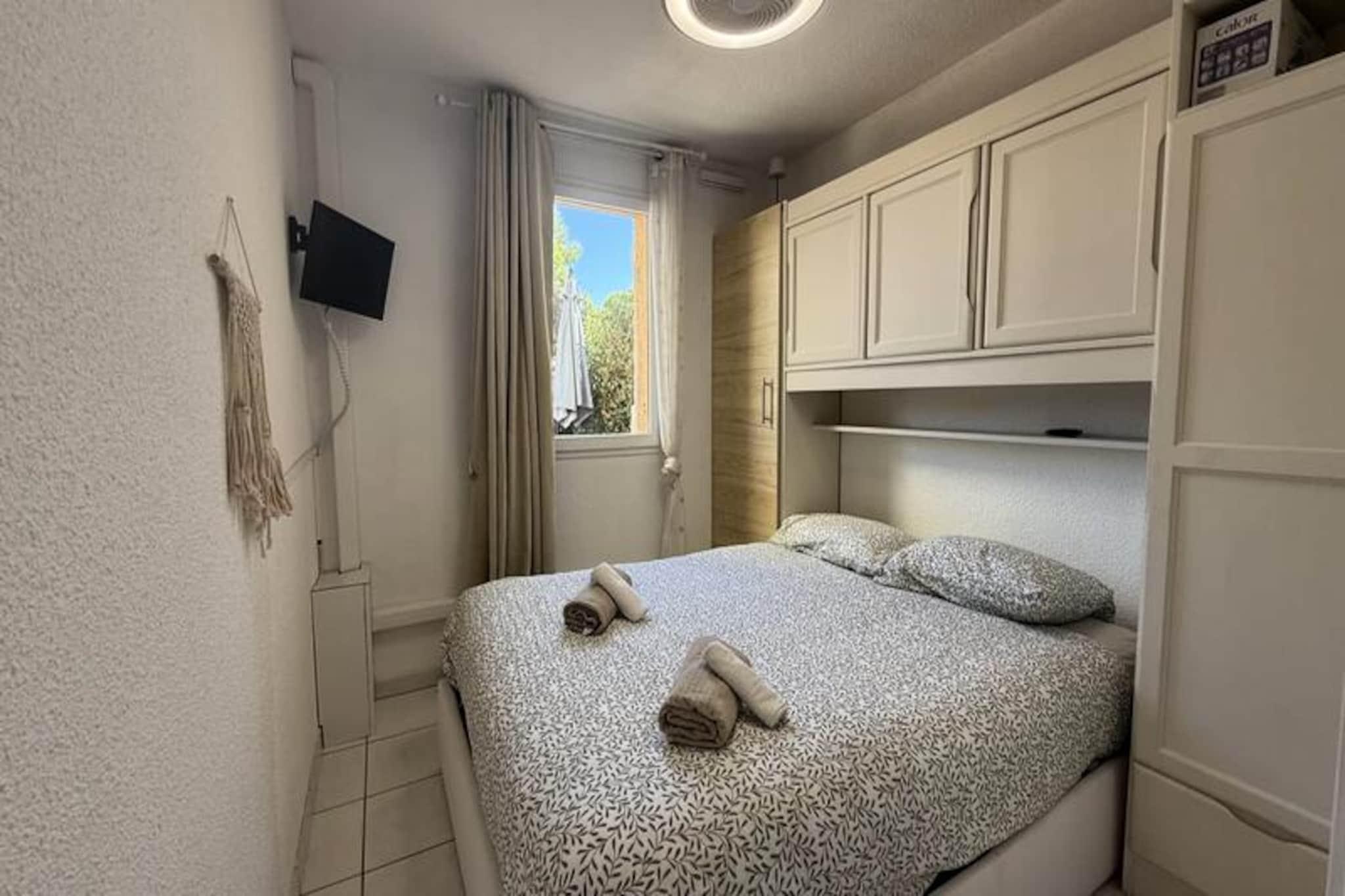 Nyd middelhavscharmen i denne dejlige etværelseslejlighed i Six-Fours-les-Plages, hvor den franske rivieras gyldne sand og azurblå vand kun ligger en kort gåtur væk. Den rolige kystatmosfære inviterer dig til at slappe af og nyde solen, mens den pulserende lokale kultur og den fantastiske naturlige skønhed sætter scenen for en uforglemmelig ferie ved havet. Uanset om du nipper til din morgenkaffe på terrassen eller nyder en afslappet aftentur langs kysten, tilbyder dette hyggelige tilflugtssted den perfekte blanding af afslapning og eventyr. Indvendigt er lejligheden omhyggeligt designet til at tilbyde både komfort og funktionalitet. Den lyse stue har et åbent køkken udstyret med alt hvad du behøver for at tilberede lækre måltider, fra komfur og ovn til mikrobølgeovn og kaffemaskine. Det fredelige soveværelse, komplet med en dobbeltseng og rigelig opbevaringsplads, sikrer afslappende nætter, mens sovesofaen i stuen tilbyder ekstra soveplads. Moderne bekvemmeligheder som WiFi og et fladskærms-tv bidrager til bekvemmeligheden og gør det til et ideelt valg for par eller små familier. Gå ud på terrassen, der er møbleret med et spisebord og havestole, for at nyde måltider under åben himmel eller blot slappe af med et glas vin, mens solen går ned over horisonten. Beliggenheden er uovertruffen, med stranden kun få skridt væk og den charmerende by Six-Fours-les-Plages, der tilbyder et udvalg af butikker, caféer og restauranter at udforske. Nærliggende attraktioner inkluderer den maleriske Île des Embiez, perfekt til en dagstur, og de naturskønne kyststier, der snor sig gennem regionens frodige landskaber. Uanset om du er her for at sole dig, udforske den lokale kultur eller blot lade op ved havet, er denne lejlighed den ideelle base for din middelhavsferie.