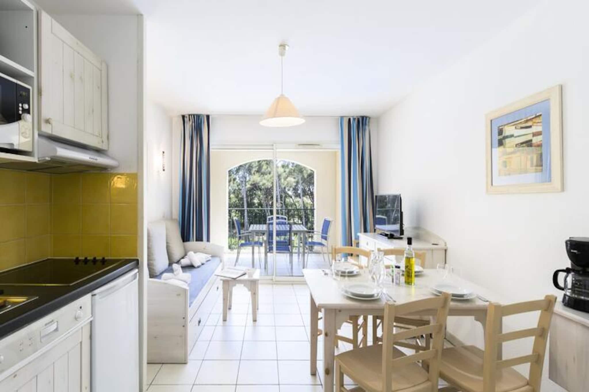 Denne charmerende lejlighed i Six-Fours-les-Plages tilbyder et komfortabelt og indbydende ophold for op til 4 personer. Det har en stue med en udtrækssovesofa, en hyggelig hytte med en dobbeltseng og et veludstyret tekøkken. Ejendommen er kæledyrsvenlig med et lille ekstra gebyr, så dine lodne venner kan slutte sig til dig på din ferie ved havet. Et badeværelse med toilet er også inkluderet, og sengetøj og håndklæder leveres. Gratis trådløs internetadgang er tilgængelig i hele boligen, hvilket sikrer, at du forbliver forbundet under dit besøg. Beliggende kun 350 meter fra stranden og 1,5 km fra byens centrum, tilbyder lejligheden nem adgang til en række nærliggende attraktioner. Udforsk de fine sandstrande, marinaer og beskyttede skove, der gør Six-Fours-les-Plages til en populær provencalsk destination. Med caféer, restauranter og markeder i nærheden kan du nyde lokale middelhavsretter og friske råvarer. Boligen er beliggende i grønne omgivelser, hvilket gør den til en perfekt base for at udforske Middelhavets kystlinje mellem Bandol og Toulon. Lejligheden leveres med yderligere faciliteter til at forbedre dit ophold, herunder en privat balkon eller terrasse. Du kan nyde den udendørs opvarmede swimmingpool, der er sæsonåben, eller slappe af i soppebassinet. Der tilbydes gratis udendørs parkering samt overdækkede parkeringspladser for ekstra bekvemmelighed. Valgfrie tjenester inkluderer morgenbuffet, babyseng (på forespørgsel) og en slutrengøringspakke.