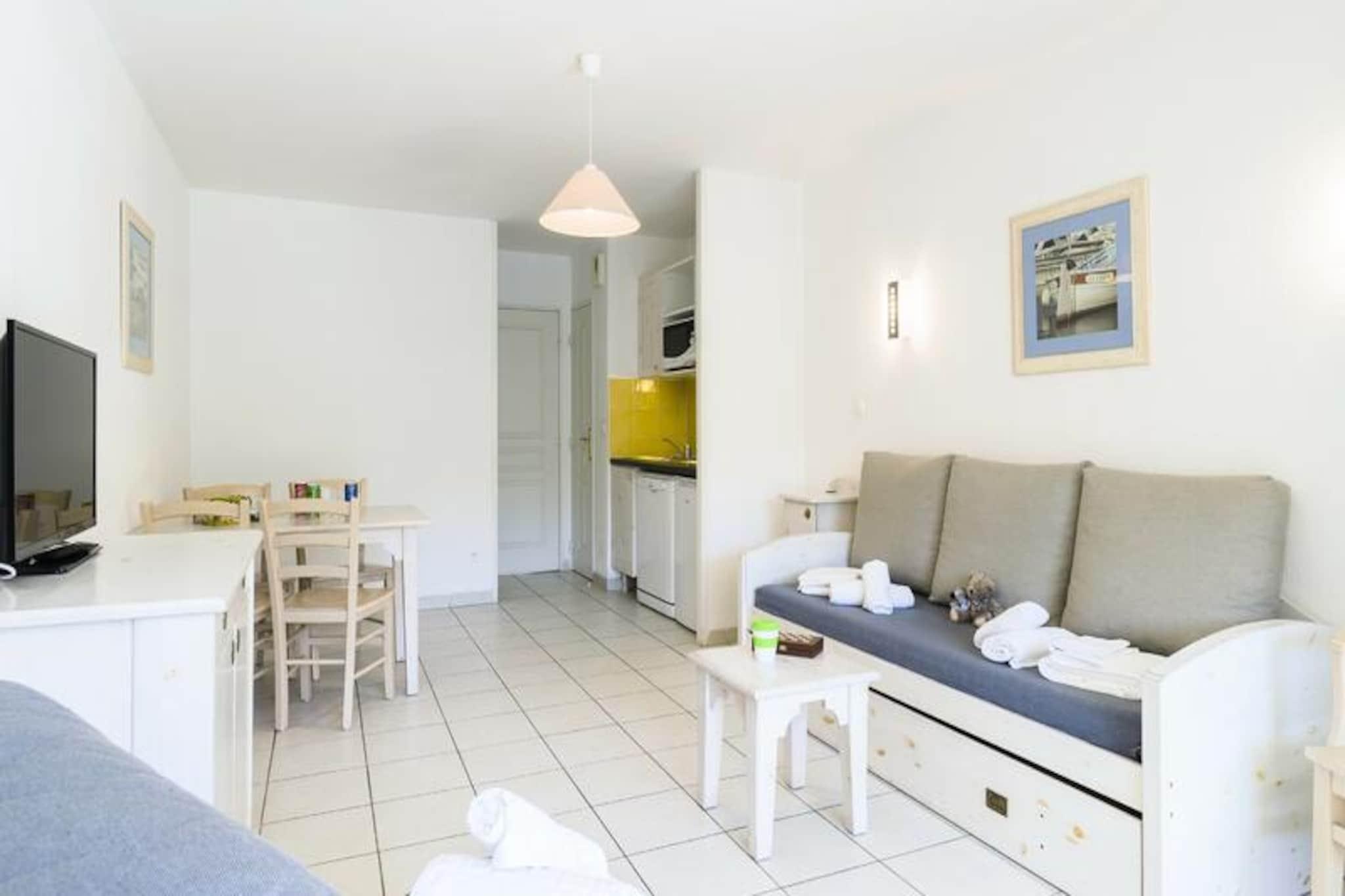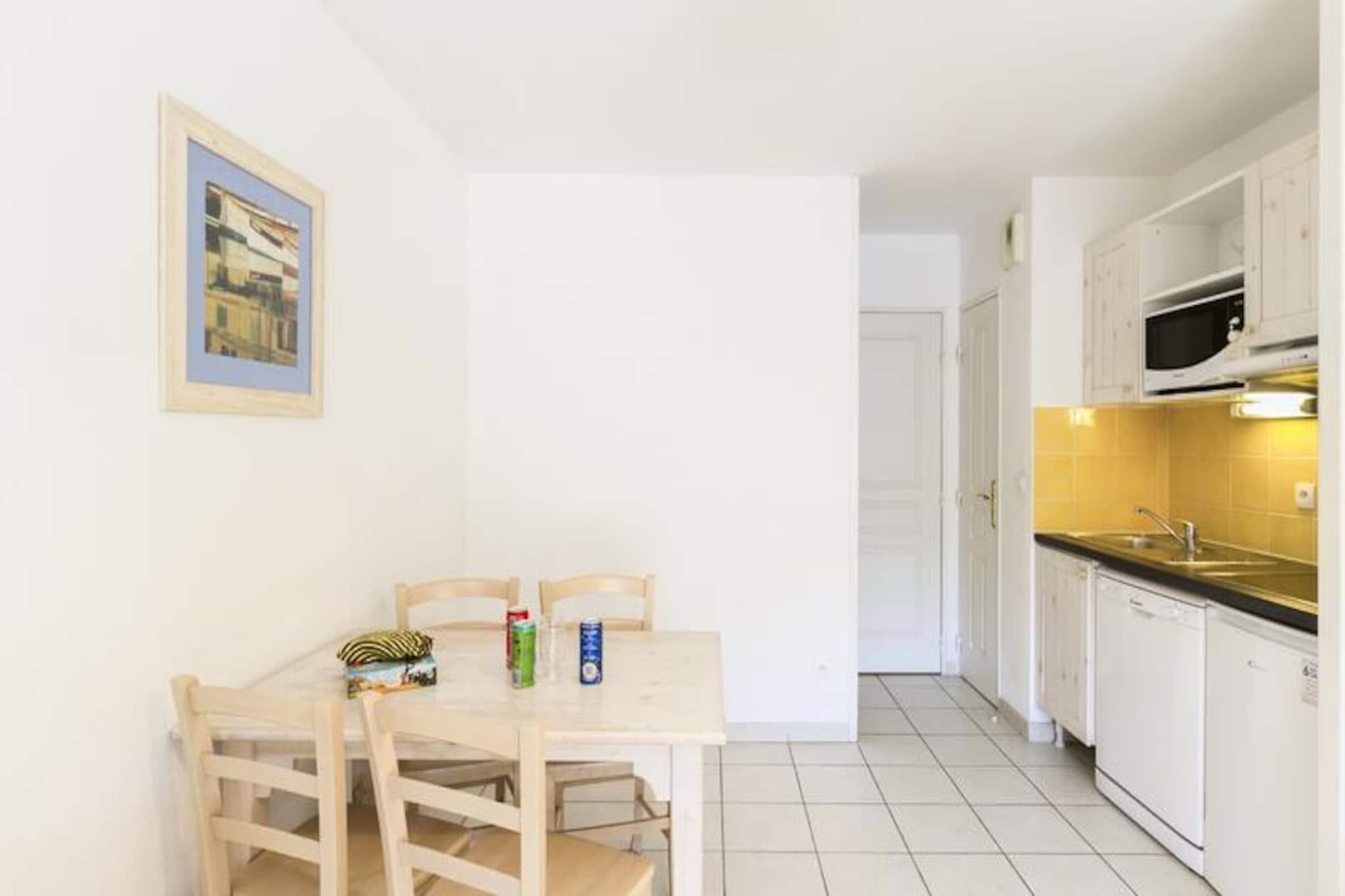 Denne rummelige 2-værelses lejlighed i Six-Fours-les-Plages er designet til komfort og kan rumme op til 4 gæster. Det har en stue med en udtrækssovesofa, et hyggeligt soveværelse med en dobbeltseng og et badeværelse med separat toilet. Ejendommen er kæledyrsvenlig mod et ekstra gebyr, hvilket giver dine kæledyr mulighed for at deltage i feriehyggen. Gratis Wi-Fi, sengetøj og håndklæder er inkluderet. Der er en privat parkeringsplads til hver bolig, og babyudstyr er tilgængeligt efter anmodning. Ejendommen ligger kun 350 meter fra stranden og 1,5 km fra byens centrum og tilbyder nem adgang til en række lokale attraktioner. Udforsk den 18 kilometer lange kystlinje, lystbådehavne og fine sandstrande, perfekt til solbadning eller vandaktiviteter. Området byder også på et udvalg af caféer, restauranter og markeder, hvor du kan nyde middelhavskøkken. Bandol og Toulon er i nærheden og tilbyder endnu flere kulturelle og rekreative muligheder. Lejligheden har et fuldt udstyret køkken, hvilket gør det nemt at tilberede måltider under dit ophold. Du kan også nyde den udendørs balkon eller terrasse for at slappe af og nyde omgivelserne. Yderligere faciliteter inkluderer adgang til den opvarmede udendørs swimmingpool (sæsonbestemt), en soppebassin og gratis udendørs parkering. For ekstra bekvemmelighed er en morgenbuffet tilgængelig, og slutrengøringspakken er inkluderet, eksklusive køkkenområdet og opvasken.