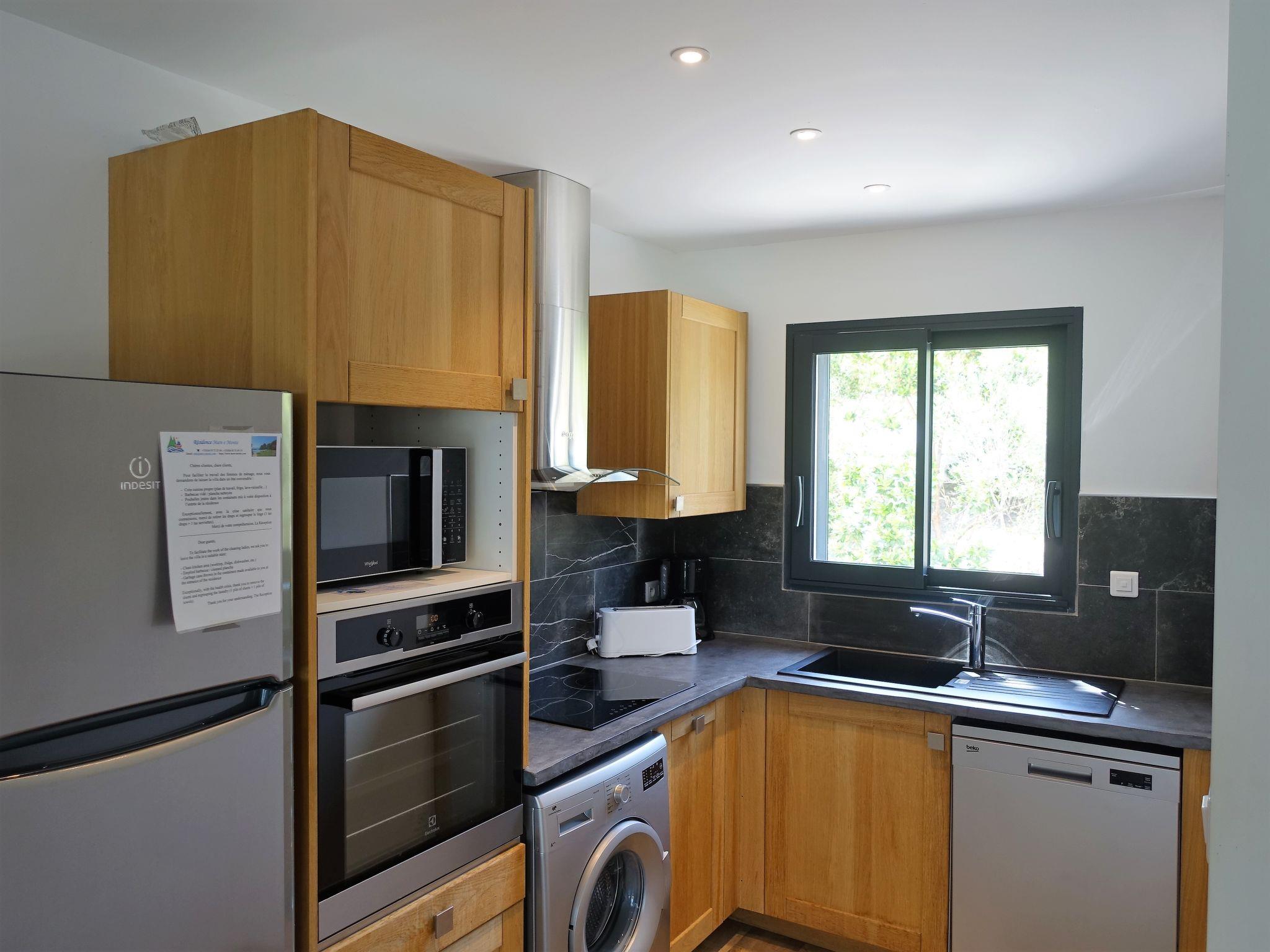 Terraced house "Les Jardins d'Ève", built in 2019, surrounded by trees. 8 km from the centre of Solenzara, 33 km from the centre of Porto Vecchio, 105 km from the centre of Bastia, in a sunny position, 150 m from the sea, direct access to the beach. Private: swimming pool heated (7 x 3 m, depth 150 cm, seasonal availability: 02.Apr. - 01.Oct.) with alarm system. Parking on the premises. Shop 1.5 km, supermarket 8 km, bus stop 9 km, sandy beach "Baie de Canella" 900 m, rocky beach 300 m. Hiking paths: Aiguilles de Bavella 39 km. Please note: car recommended.