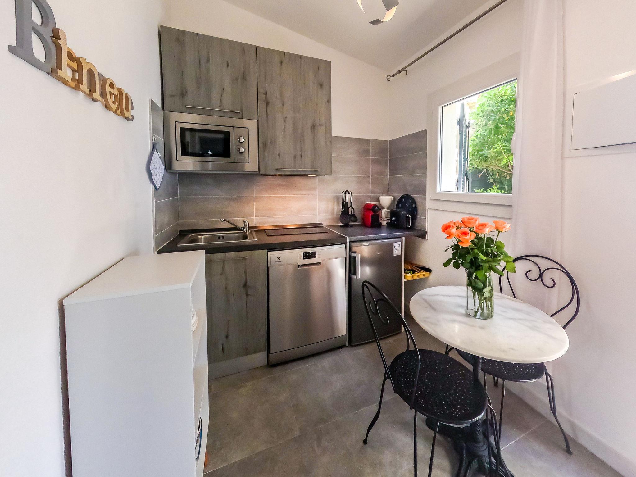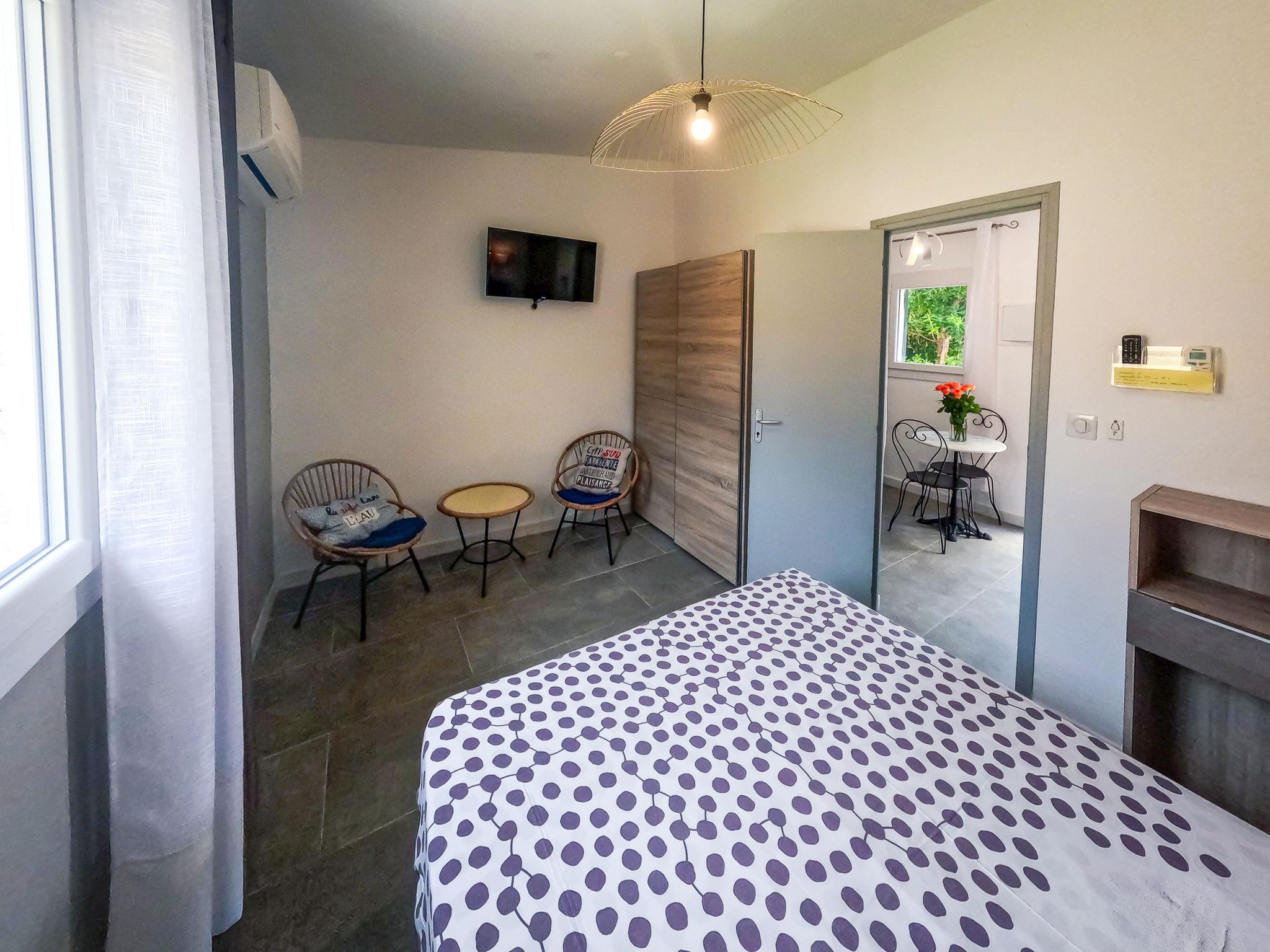 "Ciriola", 2-room terraced house 18 m2. Practical and beautiful furnishings: living/dining room with TV and air conditioning. Exit to the patio. 1 room with 1 french bed (140 cm, length 190 cm), TV. Open kitchen (2 hot plates, dishwasher, toaster, microwave, electric coffee machine, Capsules for coffee machine (Nespresso) extra) with dining table. Shower/WC. Electric heating. Terrace furniture. Beautiful view of the sea. Please note: non-smokers only. No possibility of installing a cot. Offer by a commercial proprietor according to Art. 155, IV, CGI