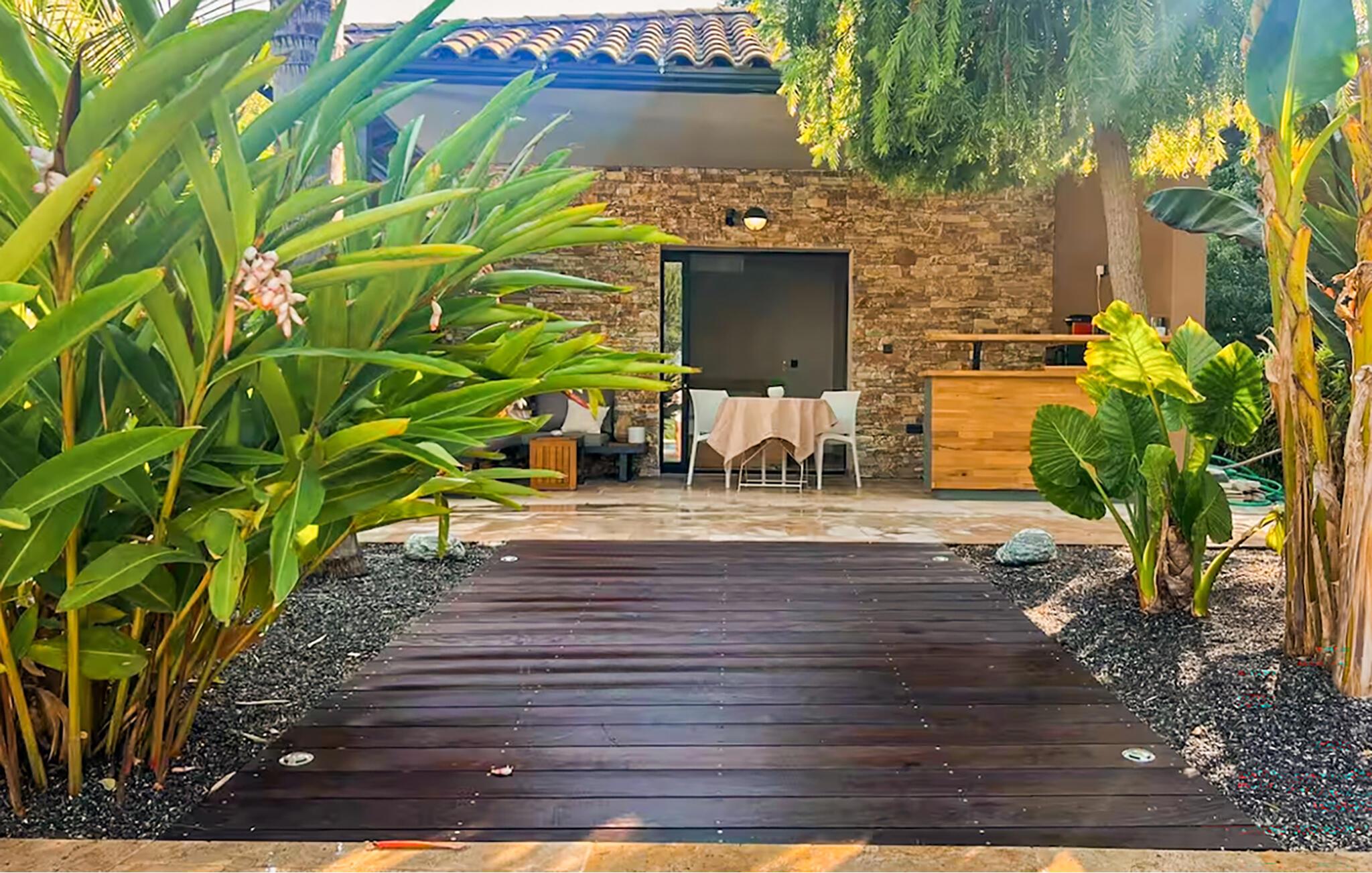 Dette idyllisk beliggende hus er perfekt til en afslappende ferie for to. Omgivet af palmer og middelhavsgrønt, finder I fred og ro væk fra hverdagens travlhed. Slap af med en kop kaffe, stream den seneste serie eller hav en hyggelig madlavningskonkurrence i køkkenet.