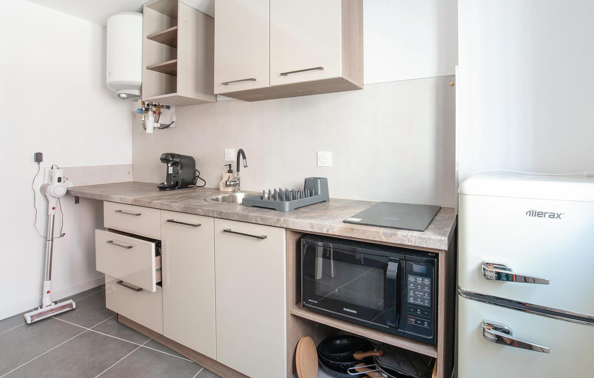 Tilbring begivenhedsrige dage i denne charmerende ferielejlighed. Denne smukke lille duplex-studiolejlighed byder jer velkommen i hjertet af Solliès-Pont og tilbyder en god base for dejlige udflugter, tæt på butikker, restauranter og offentlig transport. Tryl lækre måltider frem med friske råvarer fra markedet i det praktiske køkken, og planlæg jeres aktiviteter ved det indbydende spisebord. Slap af efter en lang dag med et brætspil, eller fordyb jer i jeres ferielæsning. Fyld op med ovnfriske croissanter til en god morgenmad på en morgentur, spørg om mulighederne for offentlig transport, og prøv regionale specialiteter på det ugentlige marked. Gå en tur gennem Massif des Maures, eller tag en cykeltur gennem lavendelmarkerne og olivenlundene. Tilbring en afslappende dag på strandene i Hyères, eller tag en tur til den fantastiske Île de Porquerolles. Besøg middelalderbyen Bormes-les-Mimosas, eller fordyb jer i Toulons historie med dens imponerende flådehavn.