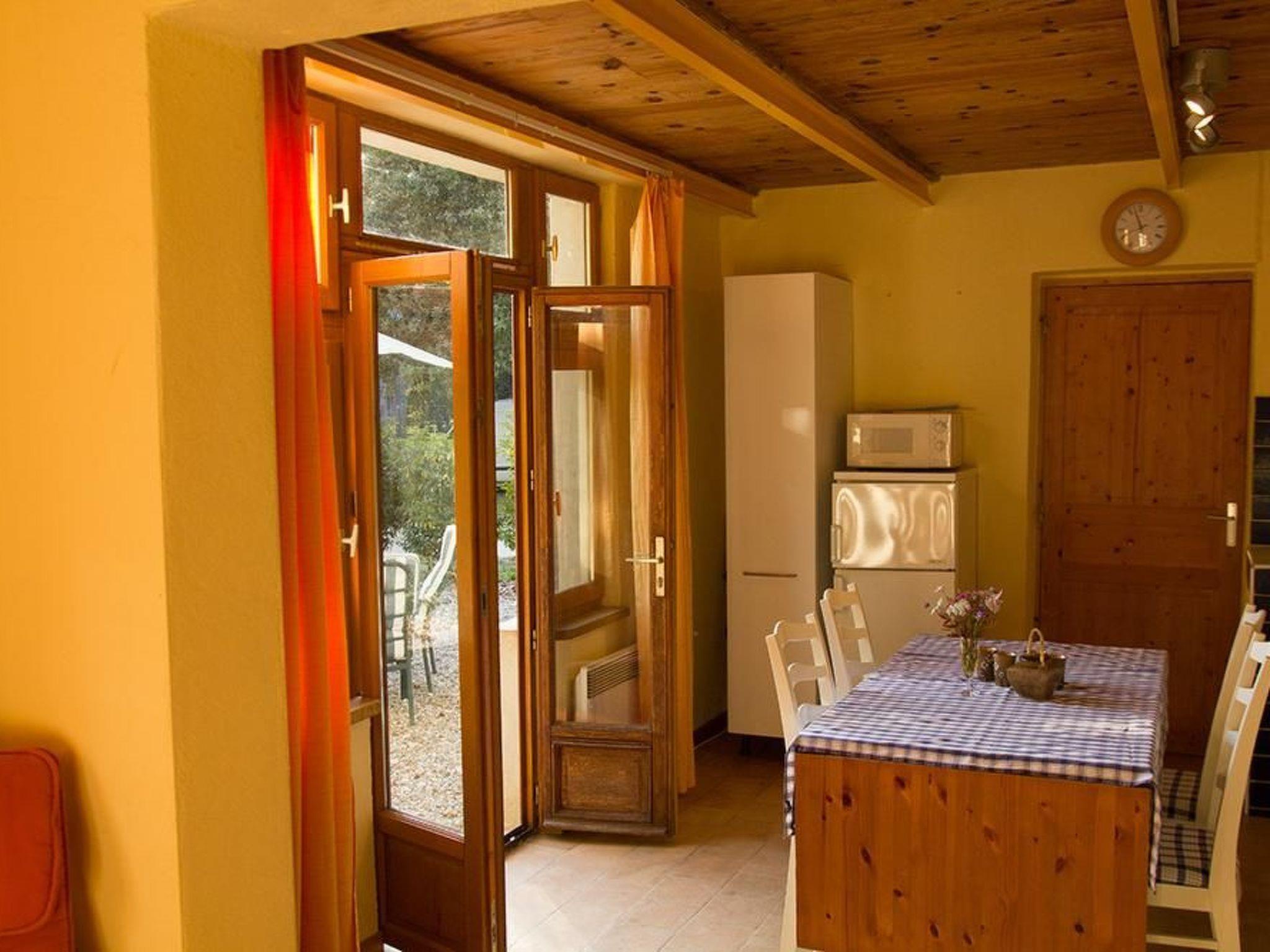 This holiday house is somewhat set apart from the main house, concealed behind trees, with a terrace shielded by a dense hedge. The property is nestled into a landscape with meadows and forests and affords a fantastic view of the nearby mountains. Here, at the foot of the Pyrenees, to the south-west of Carcassonne, in the inland area of the western Languedoc-Roussillon region, you can find ideal conditions for a holiday as a family or as a couple, if you would like to spend a quiet holiday amidst nature.