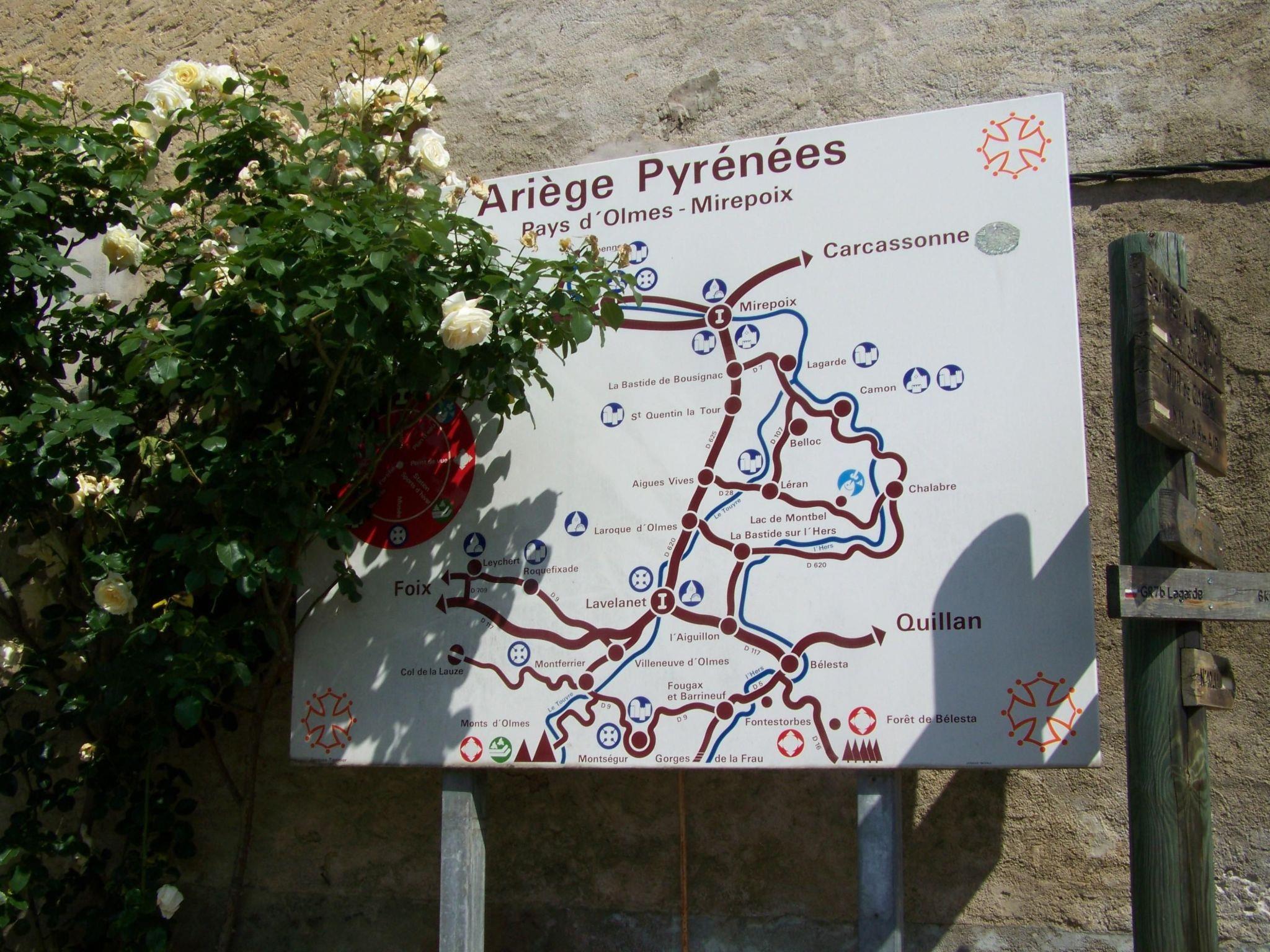 The surroundings offer a range of worthwhile trips to suit all taste4s, both in the cooler and in the warmer season. Nature enthusiasts will enjoy the many hiking trails, cycle paths and mountain biking tours in fabulous surroundings. Sports enthusiasts can look forward to motorbike tours along the mountainous serpentines, wild water rafting and ski pistes. There are swimming lakes with crystal clear water and boat hire, from 11km away, or you can drive to the Mediterranean within an hour. You can experience history and culture in the medieval towns such as Mirepoix (20km) or Limoux (23km) with its carnival. There are Cathar castles in Queribus (80km), Peyrepertuse (90km) and Puylaurens (94km), or you can visit the impressive Romanesque village church I Rennes-le-Chateau (39km), and the famous fortified old town of Carcassonne (Cité de Carcassonne) 47km away. The nearest supermarket is 6km away and there are other shopping facilities 12km away.