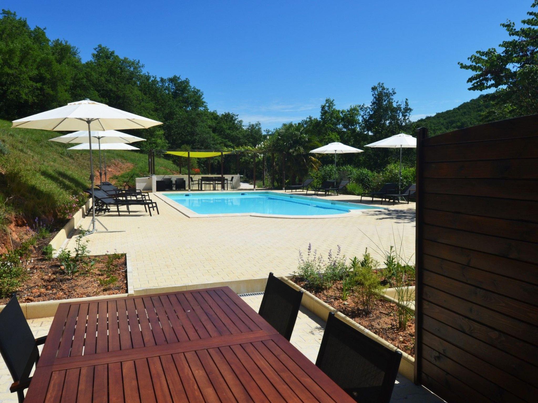 The terrace overlooks the 12 x 6 communal swimming pool.
