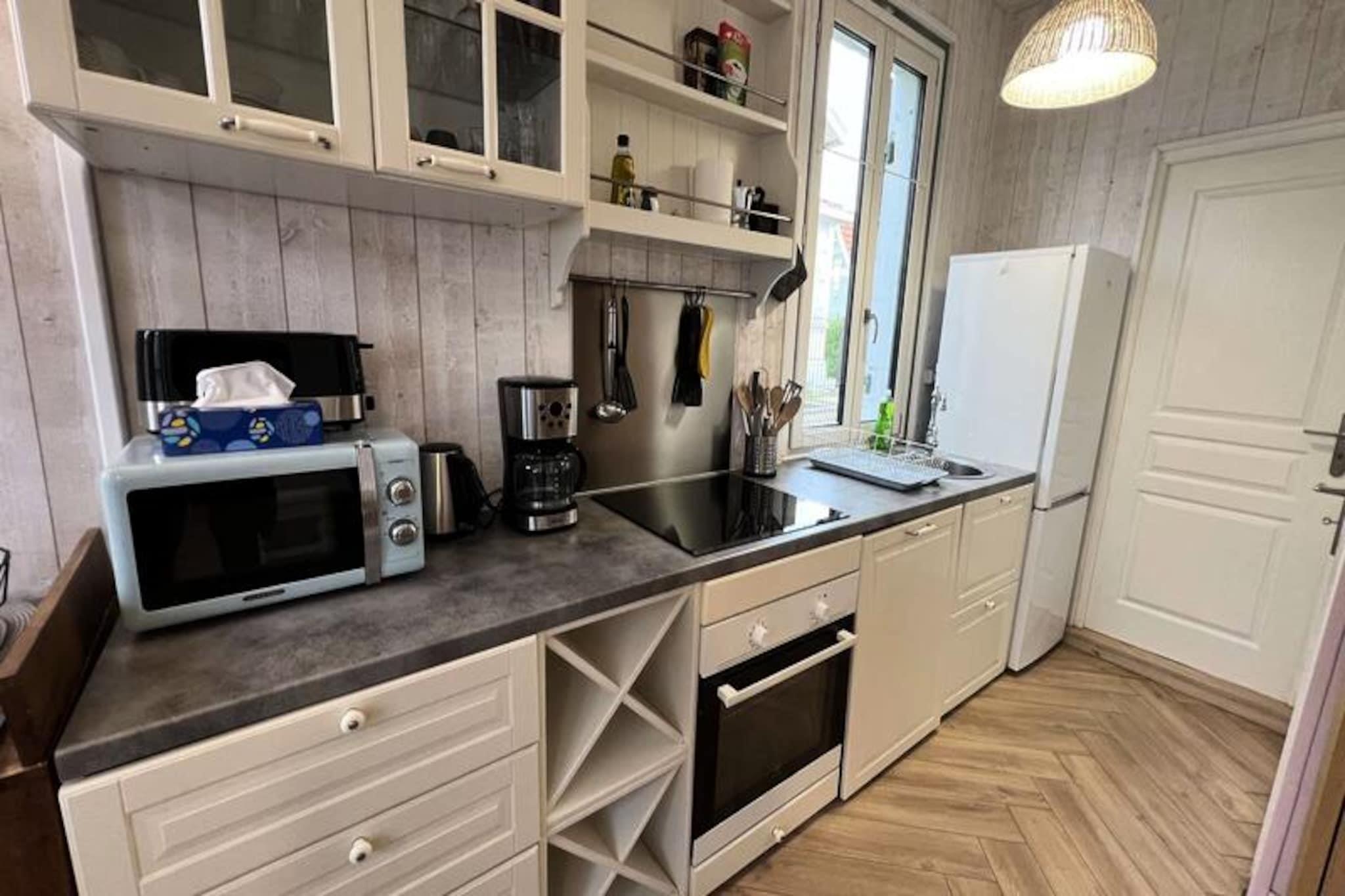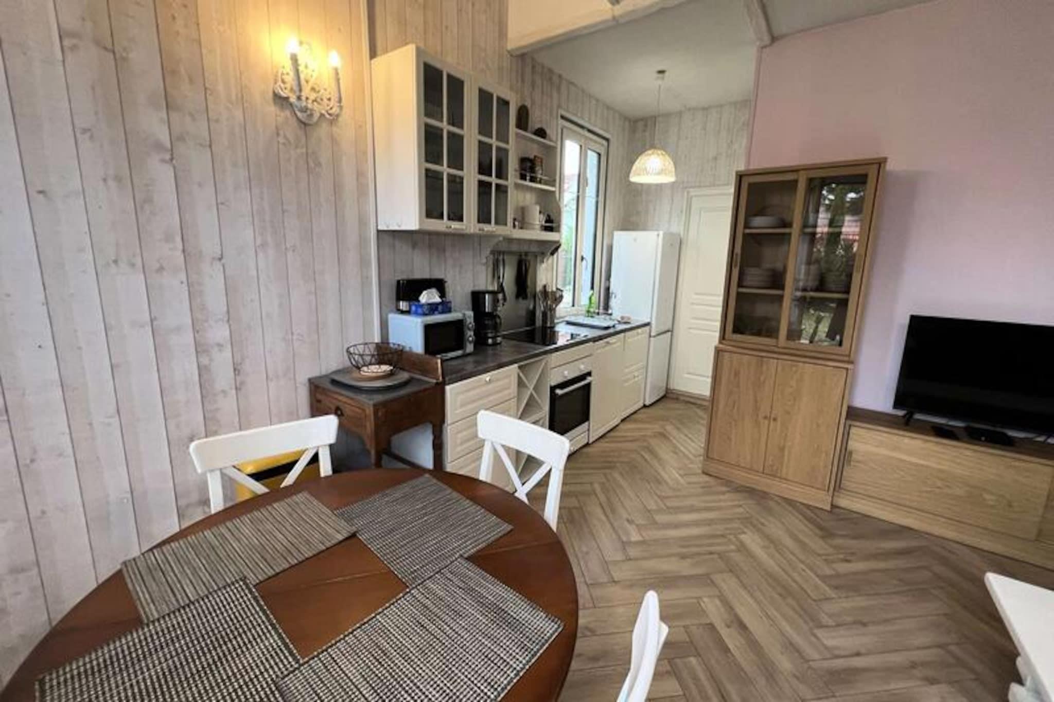 Træd ind i hjertet af Soulac-sur-Mer, hvor denne dejlige lejlighed tilbyder den perfekte blanding af komfort og bekvemmelighed til din ferie ved havet. Kun få øjeblikke fra det gyldne sand og den pulserende lokale scene inviterer denne ejendom dig til at opleve charmen ved den franske Atlanterhavskyst med stil. Forestil dig at vågne op til lyden af ??bølger, slentre til nærliggende butikker og restauranter og vende tilbage til din private haveoase efter en dag med udforskning. Lejligheden er designet til at rumme op til syv gæster og har tre hyggelige soveværelser med tre dobbeltsenge og en enkelt køjeseng, der sikrer afslappende nætter for familier eller vennegrupper. Det fuldt udstyrede køkken med ovn, mikrobølgeovn, køleskab og opvaskemaskine gør det til en leg at tilberede måltider, mens spiseområdet er et indbydende sted at samles. Den lyse og rummelige stue er perfekt til afslapning, og badeværelset med separat toilet bidrager til bekvemmeligheden. Træd udenfor for at opdage den solrige terrasse og den indhegnede, skovklædte have, der er udstyret med havemøbler og grill. Dette udendørs paradis er ideelt til afslappende eftermiddage eller livlige aftener med dine kære. Med fiberoptisk Wi-Fi, der holder dig forbundet, og de livlige gader i Soulac-sur-Mer kun få skridt væk, er alt hvad du behøver lige ved hånden. Uanset om du er her for at nyde solen, udforske den lokale kultur eller blot slappe af, er denne charmerende lejlighed din port til uforglemmelige minder på den franske kyst. Book dit ophold i dag, og lad Soulac-sur-Mers magi fortrylle dig.