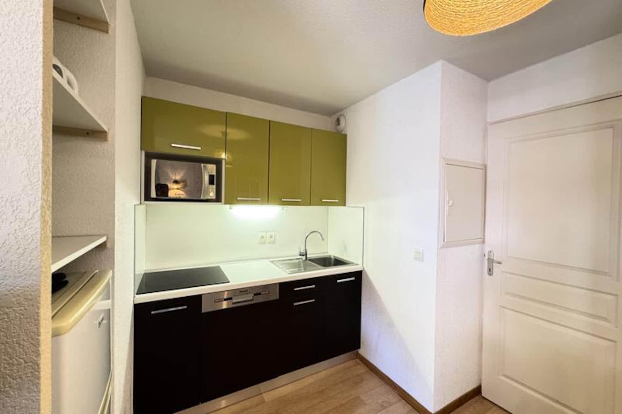 I den charmerende landsby Chantemerle, beliggende i det berømte Serre Chevalier 1350-resort, tilbyder denne dejlige lejlighed en perfekt blanding af alpin charme og moderne bekvemmeligheder. Beliggende i en højde af 1.350 meter er den en ideel base for at udforske de majestætiske franske alper, med skilifte, skiskoler og lokale butikker kun 400 meter væk. Uanset om du er her for at slentre gennem uberørte pister om vinteren eller vandre på naturskønne stier om sommeren, placerer denne beliggenhed dig i hjertet af det hele. \n\nDenne hyggelige lejlighed på 33 m², beliggende på første sal i en velholdt bygning med elevator, er omhyggeligt designet til komfort og afslapning. Stuen har en dobbelt sovesofa, mens det fuldt udstyrede tekøkken inkluderer opvaskemaskine, køleskab med fryser, keramisk kogeplade og mere - perfekt til at tilberede solide måltider efter en dag med eventyr. Det største soveværelse kan prale af en komfortabel dobbeltseng, og det andet soveværelse har køjesenge, hvilket gør det til et fremragende valg for familier eller små grupper. Et badeværelse med badekar og separat toilet bidrager til bekvemmeligheden, mens et privat skirum og en overdækket parkeringsplads sikrer et problemfrit ophold.\n\nChantemerle er et pulserende knudepunkt med alt hvad du behøver inden for gåafstand. Fra skiskoler til charmerende caféer og butikker udstråler landsbyen en indbydende atmosfære. Om sommeren forvandles området til et paradis for friluftsentusiaster med vandrestier, mountainbikeruter og betagende alpine udsigter. Den private parkering giver dig mulighed for at lade din bil blive hjemme og udforske landsbyen til fods og fordybe dig i dens unikke charme.\n\nUanset om du søger spændende vintersport eller rolige sommerferier, lover denne lejlighed i Le Chalet de l'Éterlou en uforglemmelig alpin ferie. Med sin førsteklasses beliggenhed og hyggelige faciliteter er det det perfekte tilflugtssted til at skabe varige minder i hjertet af de franske alper.