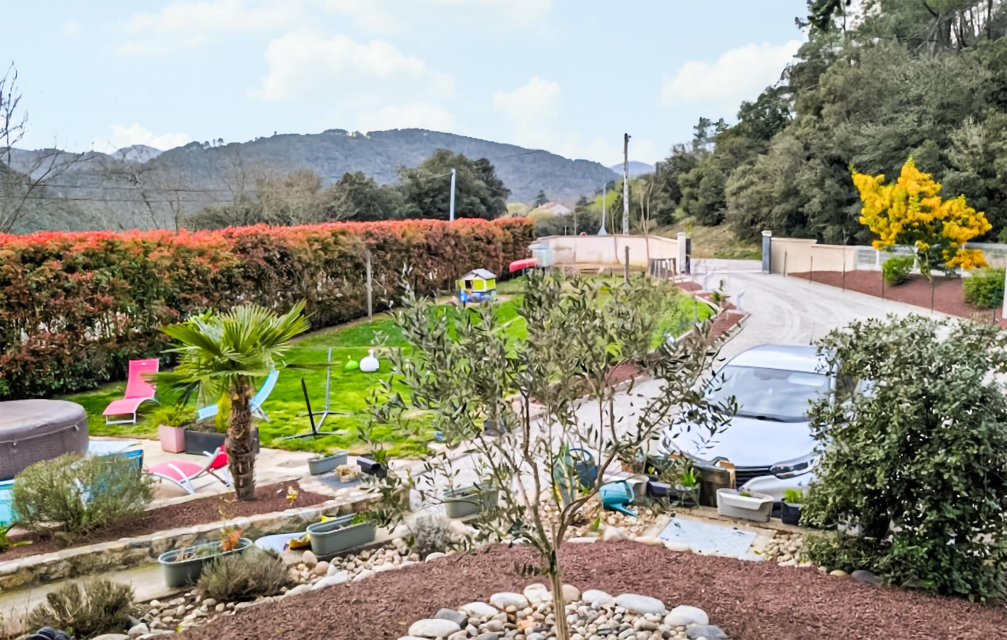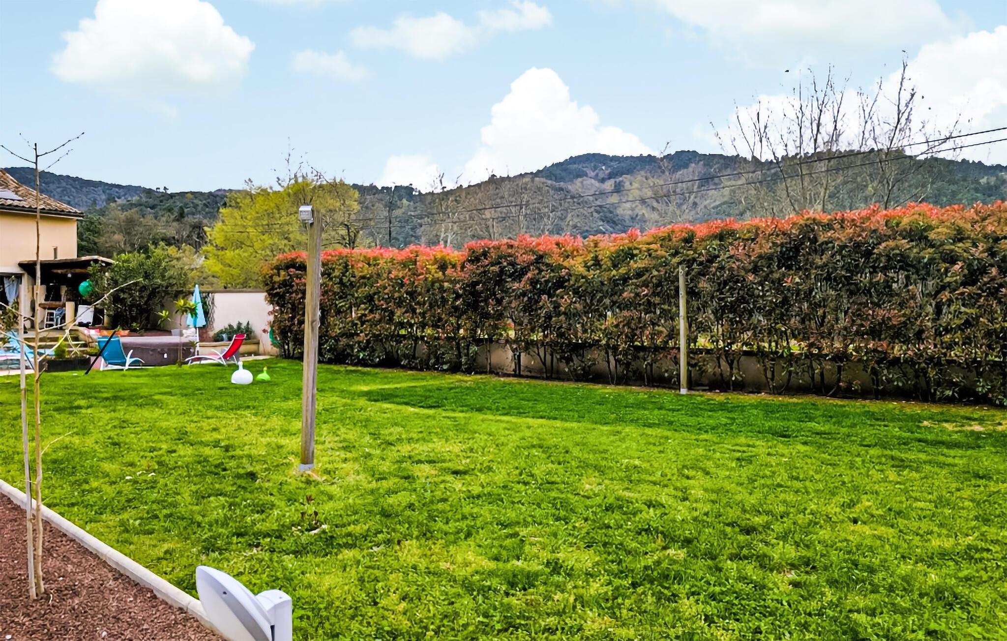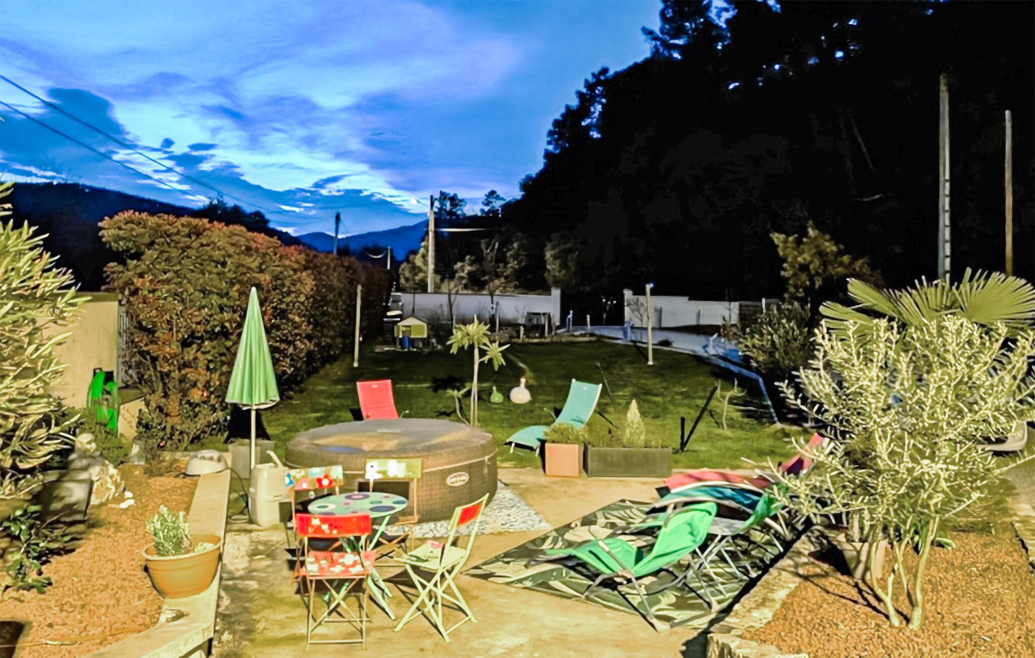 Nyd en idyllisk ferie i dette rummelige feriehus med spabad. Dette rummelige feriehus er smukt beliggende og byder jer velkommen og tilbyder dejlige ekstrafunktioner. Glæd jer til hyggelige måltider, hyggelige filmaftener eller afslappende timer med en god bog i en venlig og behagelig atmosfære. Udfordr hinanden ved bordfodboldbordet, eller hold sjove spilleaftener i den rummelige opholdsstue. Den store, indhegnede grund kan prale af en solrig terrasse, perfekt til en lækker morgenmad hver morgen. Lad batterierne op på liggestolene, nyd afslappende øjeblikke i spabadet, snak over et glas vin i den indbydende havestue, og tryl lækre måltider frem i sommerkøkkenet med pizzaovn og grill. Oplev de charmerende landsbyer Les Ollières, Vernoux-en-Vivarais og Saint-Fortunat-sur-Eyrieux. Vandr gennem maleriske terrasselandskaber, kastanjelunde og frugtplantager, og nyd den fredelige atmosfære ved det nærliggende flodbadeområde. Oplev de krystalklare klippebassiner nær Pontpierre, eller udforsk den blide cykel- og vandrerute Dolce Via i Eyrieux-dalen.