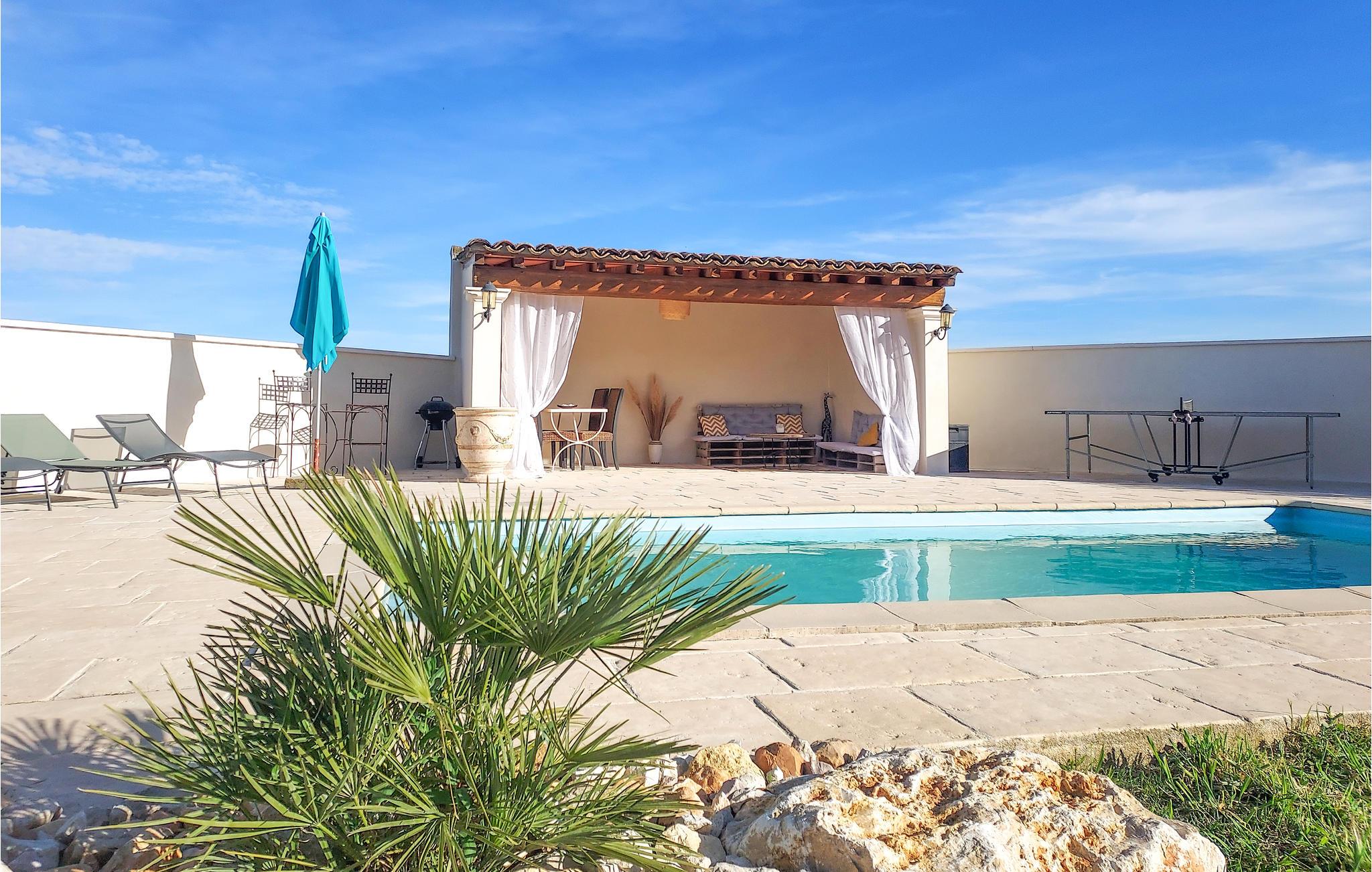 Dette skønne feriehus med privat pool ligger i Gard, tæt på floder og berømte turistattraktioner. Husets smagfulde løsninger og gode faciliteter gør, at I har alt, hvad I skal bruge til jeres feriedage. Det fuldt udstyrede køkken lægger op til hyggelige madlavningsaftener, mens I kan slappe af med film og brætspil i stuen, før I hver især finder jeres senge i de rolige soveværelser.