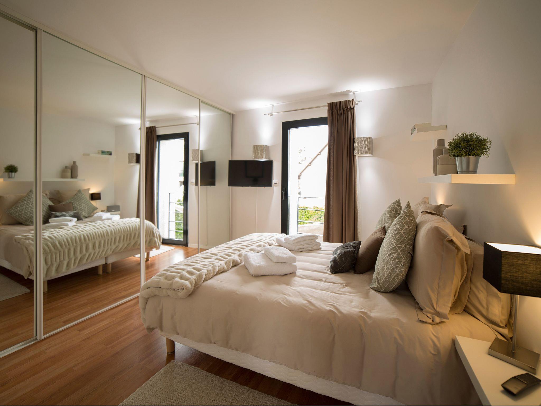 There are four bedrooms on the first floor: two doubles and two twins, which can be arranged as double bedrooms. All of the bedrooms have televisions and plenty of storage. There's also a bathroon on this floor, with twin basins, a bath and a shower. There is a large loft room on the top floor with two sets of twin beds separated by a shower room. There are also gym and play areas with a television and games consoles. Please be aware the 4 single beds located on the mezzanine are in an open space together with the gym and the games room. Please refer to our photos.