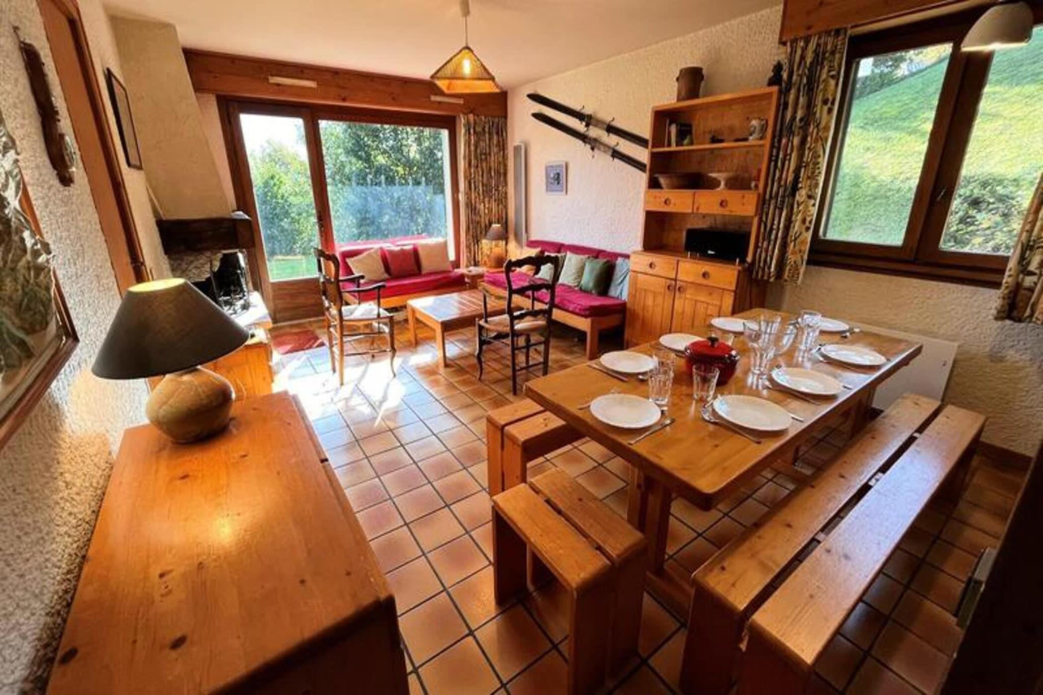 Denne rummelige lejlighed på 67 m² er beliggende i Bettex-området og tilbyder en perfekt indkvartering for op til 8 gæster. Det har tre komfortable soveværelser, et med en dobbeltseng, et med køjesenge og et andet med en køjeseng og en udtræksseng. Stuen er udstyret med en sovesofa, et fjernsyn og en spiseplads, hvilket gør den ideel til både at slappe af og spise sammen. Ejendommen er kæledyrsvenlig, så du kan tage dine lodne ledsagere med til opholdet. Lejligheden er perfekt beliggende kun 50 meter fra skiløjperne, hvilket gør den til et godt valg for vintersportsentusiaster. Derudover er det omkring 9 km fra centrum af Saint-Gervais, hvor du kan finde charmerende caféer, lokale butikker og markeder at udforske. Den nærliggende købmand, ESF (Ecole de Ski Français), og sportsbutikker forbedrer stedets bekvemmelighed yderligere for dine skiløb og udendørs behov. Lejligheden har også et fuldt udstyret køkken med 4 elektriske kogeplader, en ovn, køleskab, mikroovn og opvaskemaskine, der giver alt det nødvendige til måltidstilberedning. Badeværelset har badekar, håndvask og vaskemaskine, mens der også er separat toilet. Yderligere faciliteter inkluderer delt parkering, en garage og valgfri tjenester såsom leje af Wi-Fi-boks og slutrengøring, hvilket sikrer et komfortabelt og veludstyret ophold.