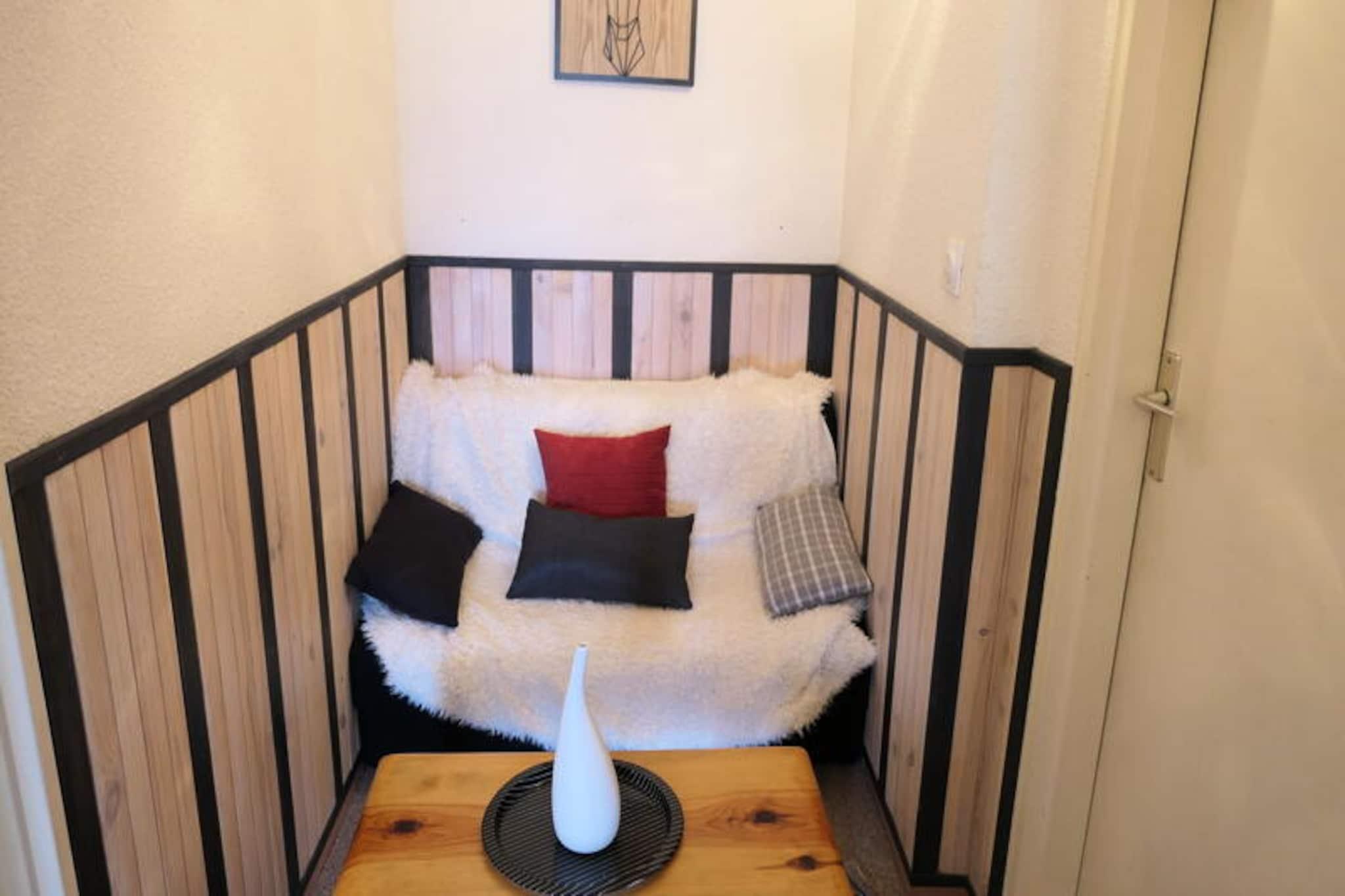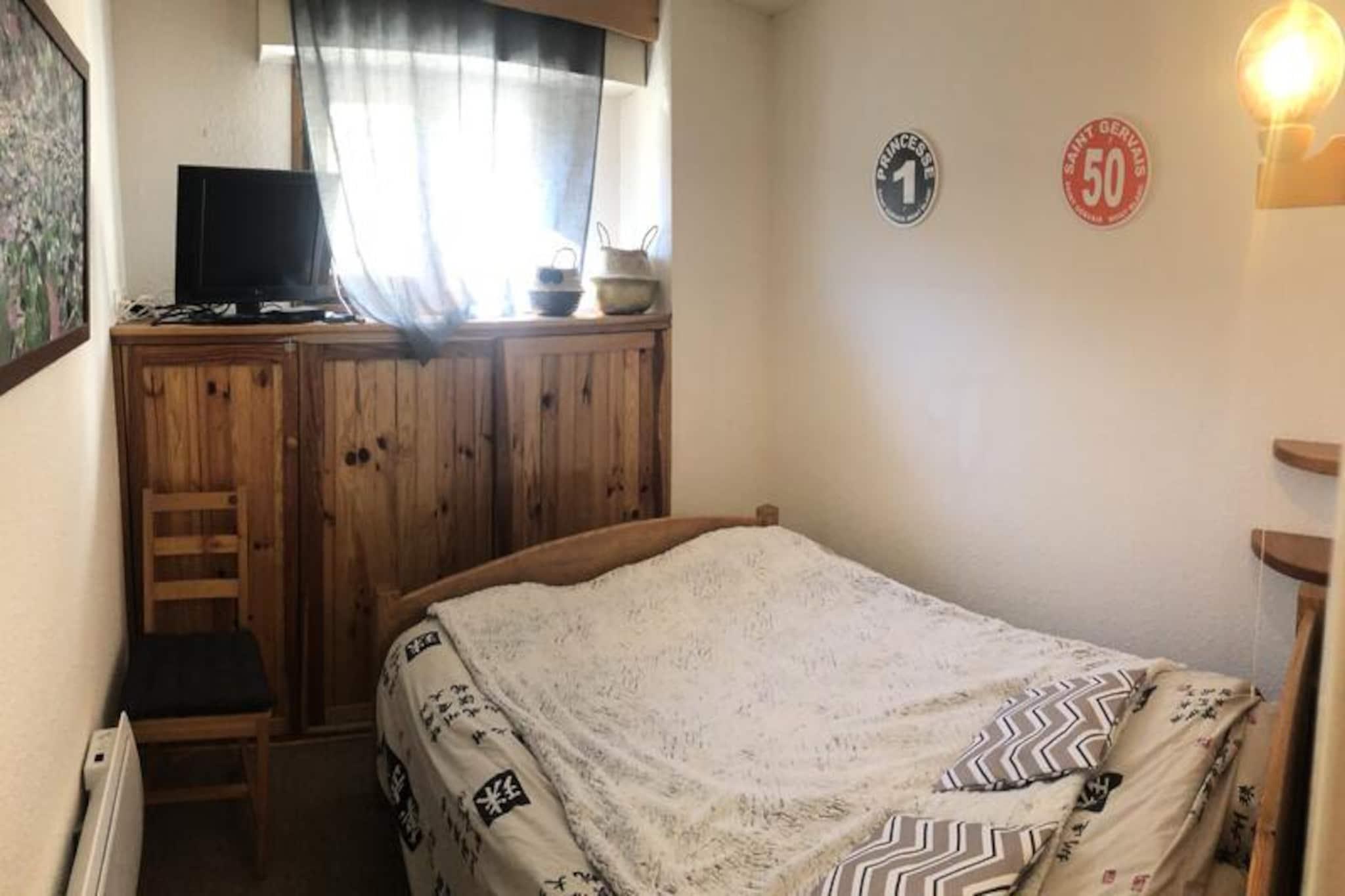 Denne charmerende ferielejlighed på 38 m², beliggende på haveniveau, tilbyder et behageligt ophold for op til 6 personer. Lejligheden har en hyggelig stue med sofa, tv og spiseplads samt et fuldt udstyret tekøkken med opvaskemaskine, ovn, køleskab, elektrisk kogeplade, kaffemaskine og elkedel. Sovearrangementerne omfatter et soveværelse med dobbeltseng, en kahyt med køjesenge og en sovesofa i opholdsstuen. Bemærk venligst, at kæledyr ikke er tilladt. Lejligheden byder på en østlig eksponering, med en terrasse, der giver en uhindret udsigt over Mont-Blanc. Ejendommen ligger kun 2,5 km fra starten af ??Bettex-pisterne, ideel til skiløb og udendørsaktiviteter. Om vinteren giver en shuttle-stop i nærheden af ??boligen nem adgang til pisterne. For dem, der ønsker at udforske, er centrum af Saint-Gervais kun 9 km væk, hvor du vil finde charmerende caféer, markeder og butikker at nyde. Placeringen er perfekt for familier og venner, der leder efter både eventyr og afslapning, med Mont-Blanc som en fantastisk kulisse. Ud over lejlighedens hyggelige opholdsrum har du adgang til yderligere faciliteter såsom skiskabe, en swimmingpool og en tennisbane i sommermånederne. Lejligheden byder desuden på badeværelse med bruser, håndvask, håndklædetørrer og toilet. Valgfrie tjenester omfatter leje af Wi-Fi-boks, leje af sengetøj og børnepasningsudstyr, hvilket giver ekstra komfort under dit ophold.