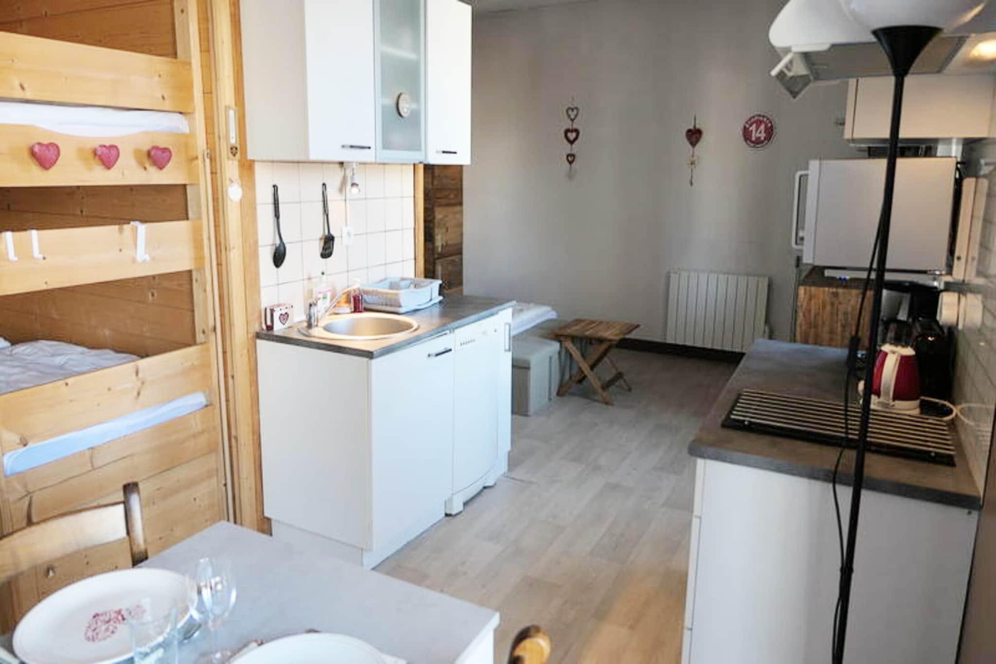 Denne charmerende studiolejlighed i Saint-Gervais er perfekt til op til 4 g?ster. Det omfatter en stue med en sovesofa (160x200), tv og en spiseplads. Soveomr?det har k?jesenge (90x190), ideel til b?rn. Bem?rk venligst, at k?ledyr ikke er tilladt. Studiet ligger p? 1. sal og har en nordlig eksponering med en fantastisk udsigt over Fiz-bjergk?den. En altan giver et dejligt sted at slappe af efter en dag med aktiviteter. Denne ejendom ligger kun 500 meter fra Saint-Gervais-sv?vebanerne og 800 meter fra landsbyens centrum og tilbyder nem adgang til skil?b og lokale faciliteter. Et bageri og en tobaksbutik/presse er i n?rheden for din bekvemmelighed. Udforsk de charmerende gader i Saint-Gervais, med caf?er og markeder, der tilbyder lokale delikatesser og produkter, du kan nyde under dit ophold. Studiolejligheden har fuldt udstyret tek?kken med k?leskab, 2 keramiske kogeplader, opvaskemaskine og mikrob?lgeovn. Badev?relset har bruser, vaskeskab og vaskemaskine. Yderligere faciliteter omfatter privat udend?rs parkering og et skiskab. Valgfri tjenester, s?som leje af senget?j og slutreng?ring, er tilg?ngelige mod et ekstra gebyr.