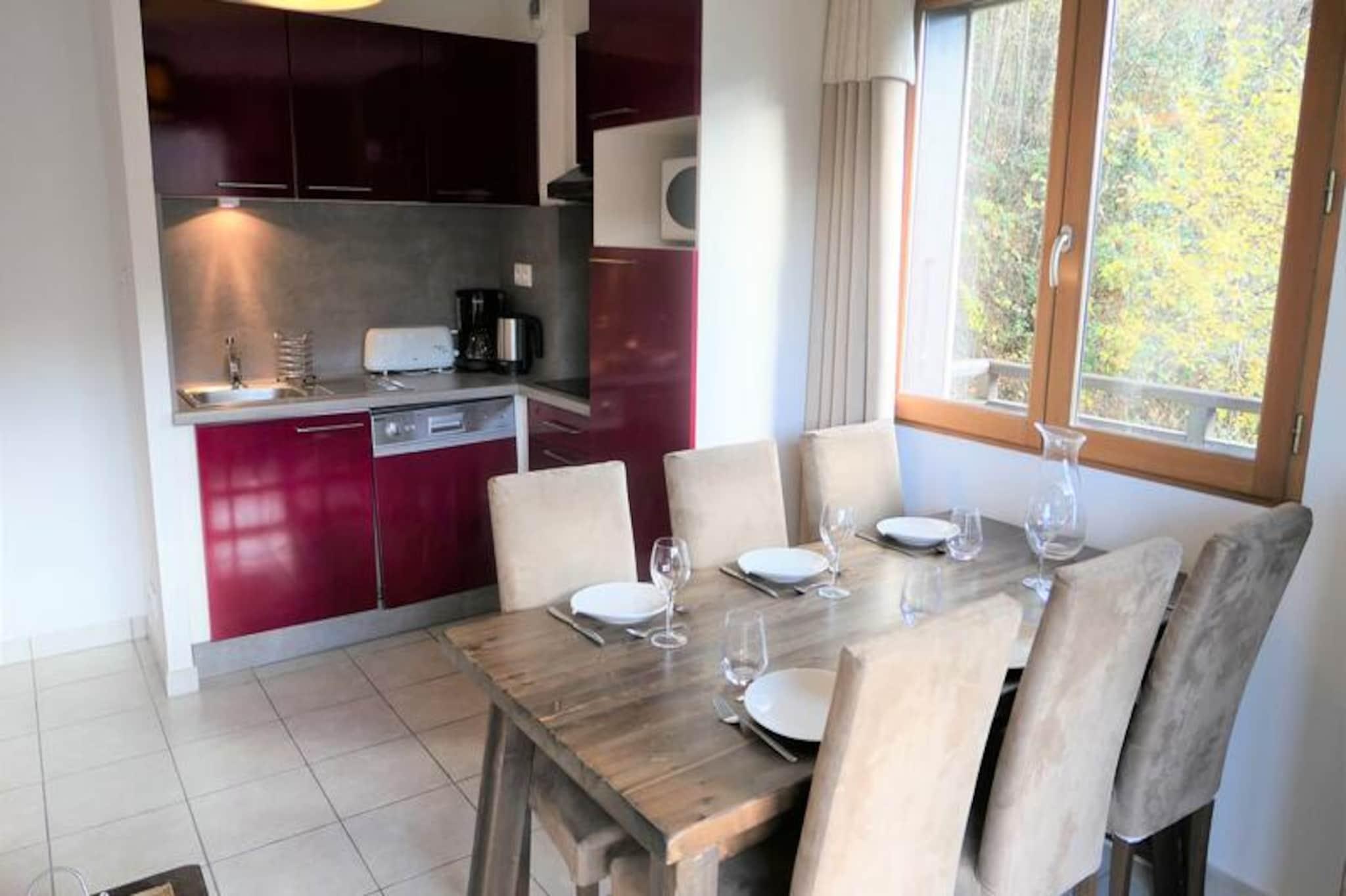 Højt over den charmerende landsby Saint-Gervais-les-Bains tilbyder dette fredfyldte tilbagetog på en bjergskråning en perfekt blanding af alpin ro og moderne komfort. Omgivet af betagende bjergudsigter inviterer residensen dig til at slappe af i en af sine tre bygninger i chalet-stil, hvor hver eneste detalje er designet til at gøre dit ophold uforglemmeligt. Uanset om du er her for en skiferie om vinteren eller en sommerferie, er dette din indgang til den fantastiske Mont Blanc-region. Lejligheden, der ligger på første sal, har plads til op til seks gæster fordelt på to hyggelige soveværelser og en stue med en udtrækssofa. Det fuldt udstyrede køkken med opvaskemaskine, mikroovn og endda et fonduesæt sikrer, at du kan nyde solide måltider efter en dag fuld af eventyr. Balkonen mod øst og sydvest tilbyder en fantastisk udsigt over de omkringliggende bjergtoppe, mens den opvarmede indendørs pool, der er åben i sæsonen, er det perfekte sted at slappe af og genoplive sig selv. Yderligere bekvemmeligheder såsom garage, skiskabe og valgfri tjenester som leje af sengelinned og børnepasningsudstyr gør dit ophold så problemfrit som muligt. En shuttlebus-stop kun 140 meter fra boligen forbinder dig med Saint-Gervais-svævebanerne på kun 15 minutter, hvilket giver nem adgang til regionens vidtstrakte skiløjper og vandrestier. Om sommeren kan du udforske frodige alpine enge eller forkæle dig selv med de termiske bade i Saint-Gervais for en virkelig forfriskende oplevelse. Med sin idylliske beliggenhed og gennemtænkte faciliteter er denne bolig det ideelle valg for familier og venner, der søger en autentisk bjergferie.