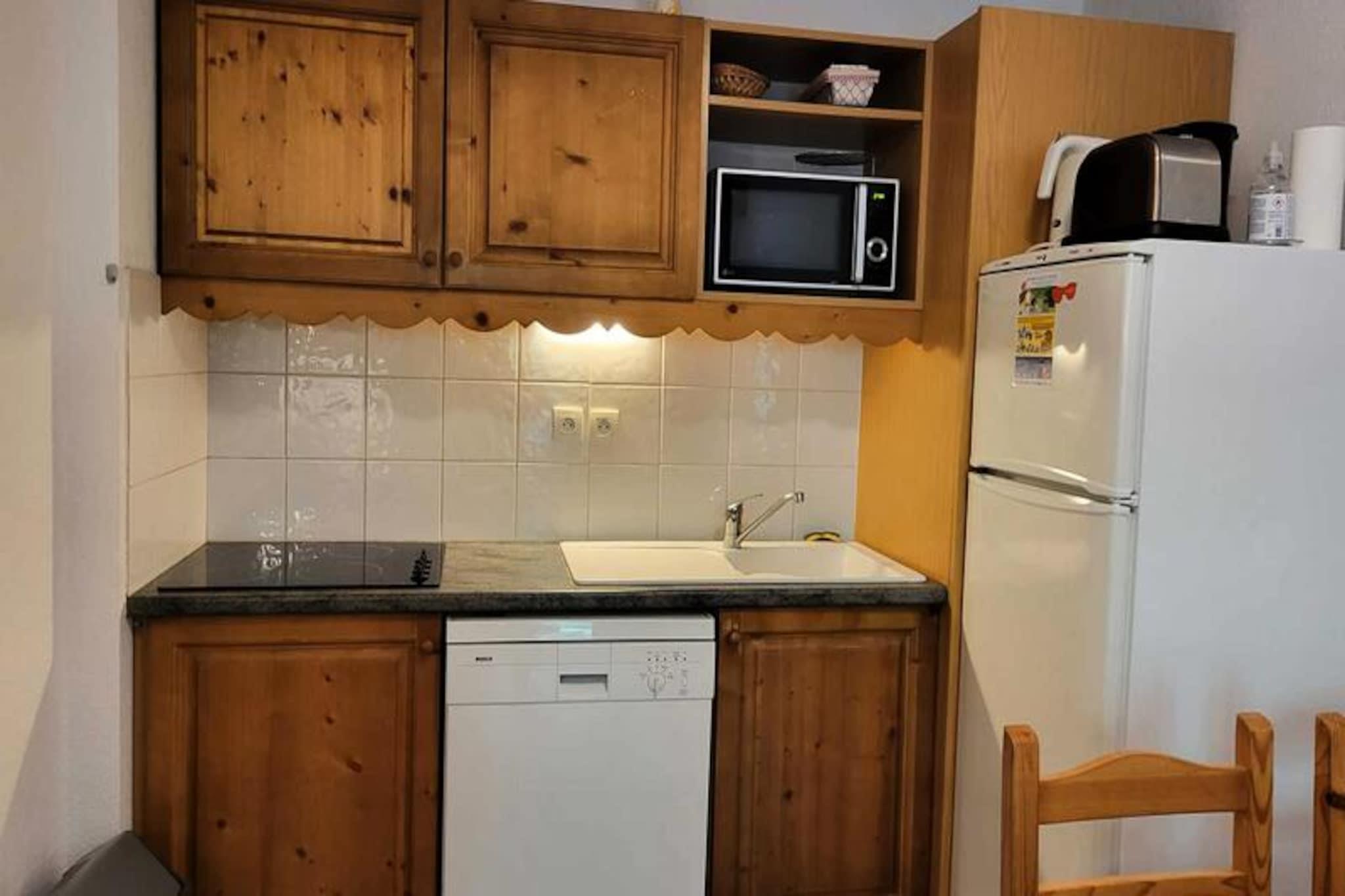 I den maleriske by Saint-Gervais, hvor Alpernes charme møder moderne bekvemmeligheder, tilbyder denne dejlige lejlighed et hyggeligt tilflugtssted for op til fire gæster. Beliggende kun 50 meter fra Saint-Gervais-svævebanen har du nem adgang til det berømte skiområde Evasion Mont-Blanc, der lover uforglemmelige dage på pisterne. Uanset om du besøger stedet om vinteren for at stå på ski eller om sommeren for at udforske de frodige bjergstier, er denne bolig perfekt placeret til at få mest muligt ud af dit alpine eventyr. Fra din nordvestvendte balkon kan du nyde den fredfyldte udsigt og den friske bjergluft, mens du slapper af efter en dag med udforskning. \n\nLejligheden, der ligger på tredje sal, er omhyggeligt designet til komfort og praktisk anvendelighed. Stuen har en sovesofa, tv og spiseplads, hvilket skaber et indbydende rum at slappe af. Køkkenet er fuldt udstyret med moderne apparater, herunder opvaskemaskine, keramisk kogeplade, køleskab, mikrobølgeovn, kaffemaskine, brødrister og elkedel, hvilket sikrer, at du har alt, hvad du behøver til hjemmelavede måltider. Soveværelset har to enkeltsenge, mens badeværelset har badekar og håndvask, suppleret af et separat toilet for ekstra bekvemmelighed. Yderligere faciliteter såsom et skirum og adgang til den opvarmede udendørs pool om sommeren forbedrer oplevelsen.\n\nSaint-Gervais er i sig selv en pulserende destination med et bageri, en tobaksforretning og sportsudstyrsudlejning, der ligger bekvemt placeret i nærheden. Om sommeren bliver den opvarmede udendørs pool et højdepunkt og tilbyder en forfriskende tilflugtssted midt i det alpine landskab. For familier og venner, der søger en blanding af afslapning og eventyr, er denne lejlighed et ideelt valg. Med valgfrie tjenester som Wi-Fi, leje af linned og børnepasningsudstyr til rådighed, kan dit ophold skræddersys til dine behov. Oplev Alpernes skønhed og skab varige minder i dette charmerende bjergparadis.