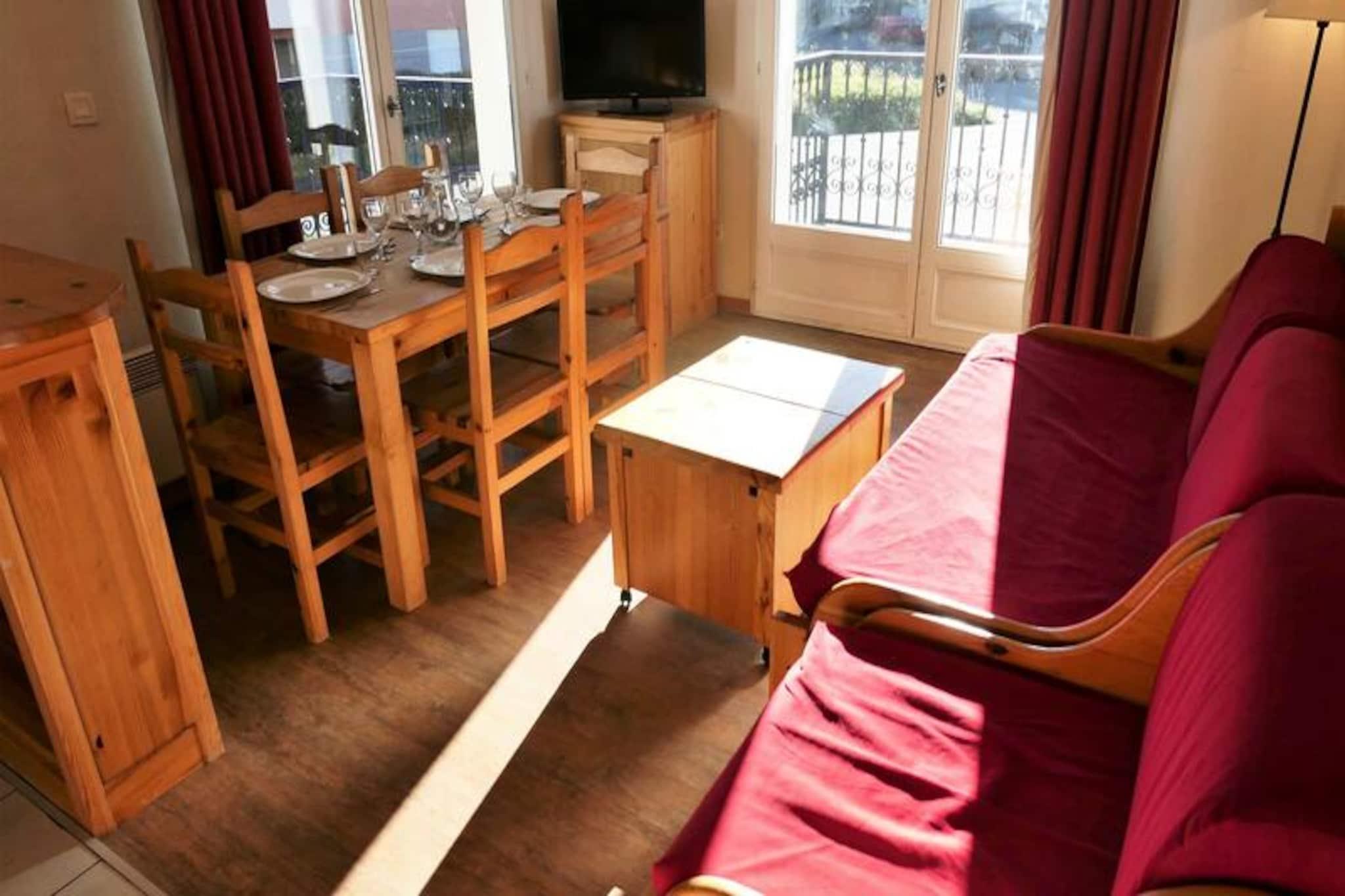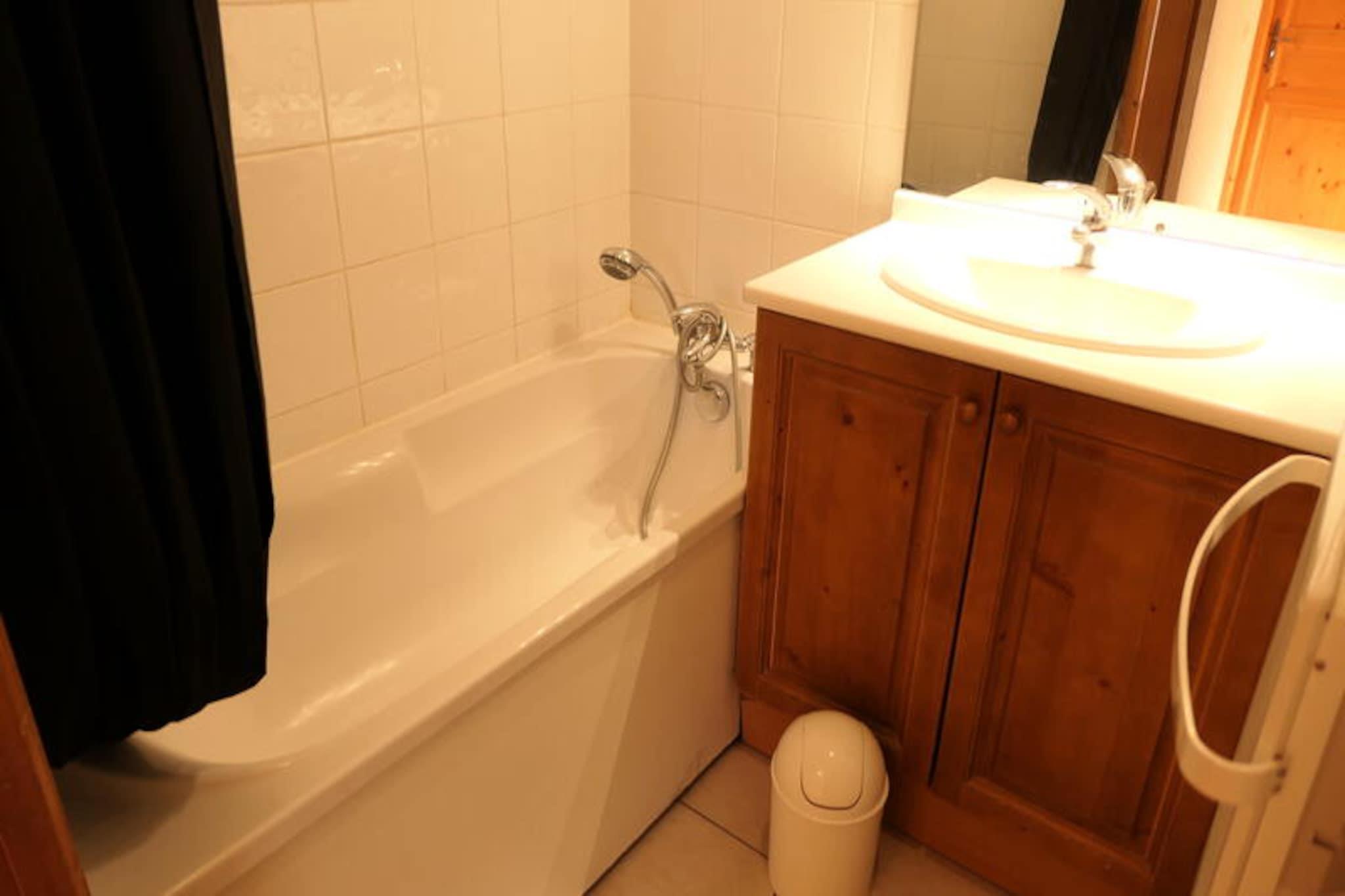 Ved indgangen til det majestætiske skisportsområde Evasion Mont-Blanc tilbyder denne charmerende lejlighed i Saint-Gervais en idyllisk alpin ferie for både familier og venner. Beliggende kun 50 meter fra Saint-Gervais-svævebanen, befinder du dig få øjeblikke fra spændende skiløjper og en betagende udsigt over bjergene. Ejendommen kan også prale af en opvarmet udendørs swimmingpool, der er tilgængelig i sommermånederne, perfekt til afslapning efter en dag med udforskning af de maleriske omgivelser. Med sin sydøstlige og sydvestlige beliggenhed inviterer lejlighedens to altaner dig til at nyde den rolige atmosfære i de franske alper når som helst på dagen. \n\nIndenfor har den 42 m² store lejlighed komfortabel plads til op til seks gæster. Stuen har en hyggelig sovesofa, tv og spiseplads, hvilket skaber et indbydende rum at slappe af. Køkkenet er fuldt udstyret med moderne apparater, herunder opvaskemaskine, keramisk kogeplade, køleskab og mikrobølgeovn, hvilket sikrer, at du har alt, hvad du behøver til hjemmelavede måltider. To soveværelser med to enkeltsenge giver afslappende tilflugtssteder, mens badeværelset, brusebadet og det separate toilet tilbyder bekvemmelighed og privatliv. Yderligere faciliteter såsom garage, skiboks og valgfrie tjenester som leje af linned og børnepasningsudstyr gør dit ophold endnu mere behageligt. \n\nUd over boligen fortryller Saint-Gervais med sit charmerende landsbycentrum, der ligger kun 800 meter væk. Gå en tur til nærliggende bagerier, tobaksforretninger og sportsforretninger, eller begiv dig længere ud for at opdage regionens naturlige vidundere. Om sommeren venter vandrestier og panoramaudsigter, mens vinteren forvandler området til et snedækket paradis. Uanset om du er her for skiløb, afslapning eller eventyr, er denne lejlighed din perfekte base for at skabe uforglemmelige alpine minder.