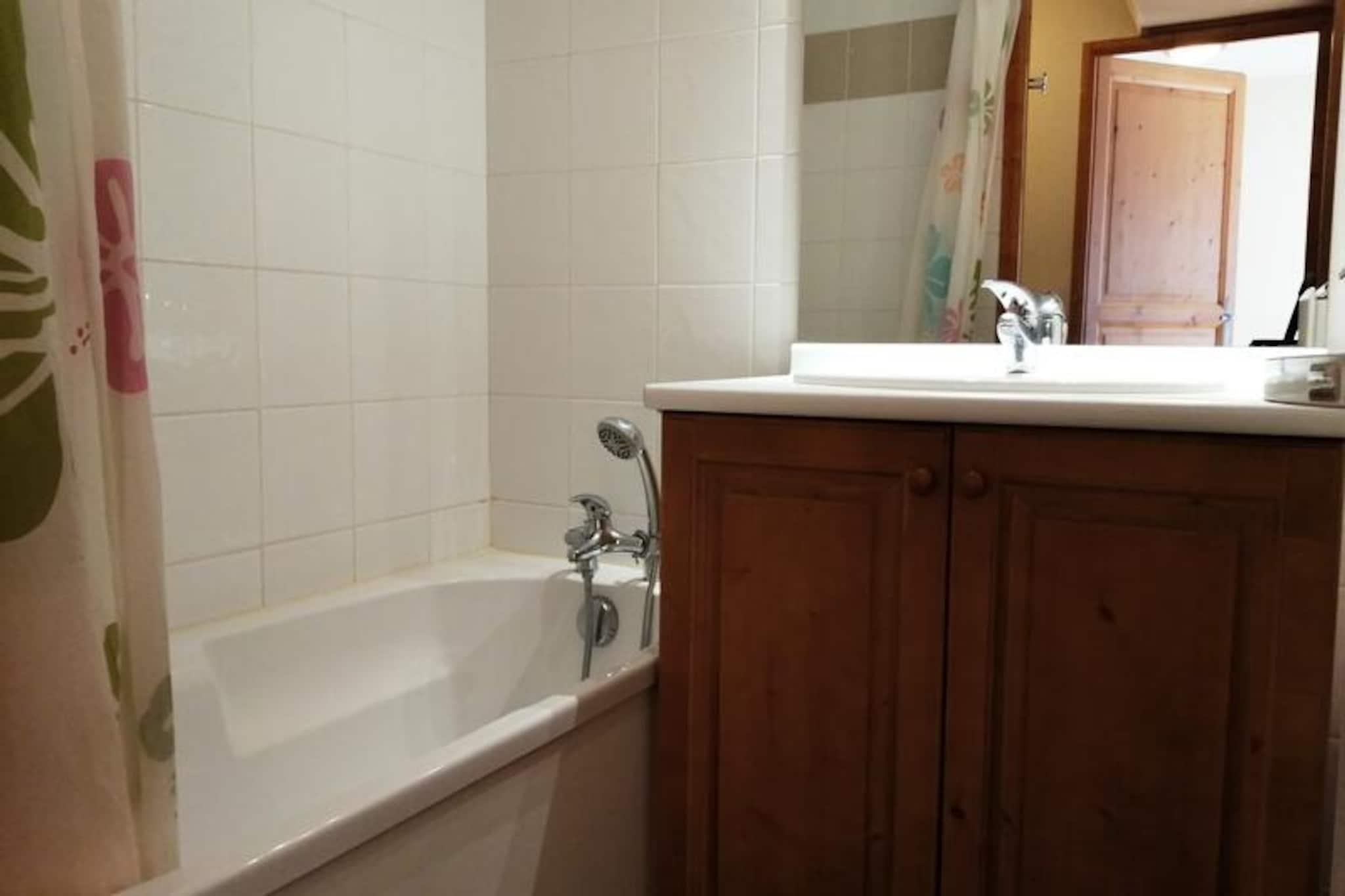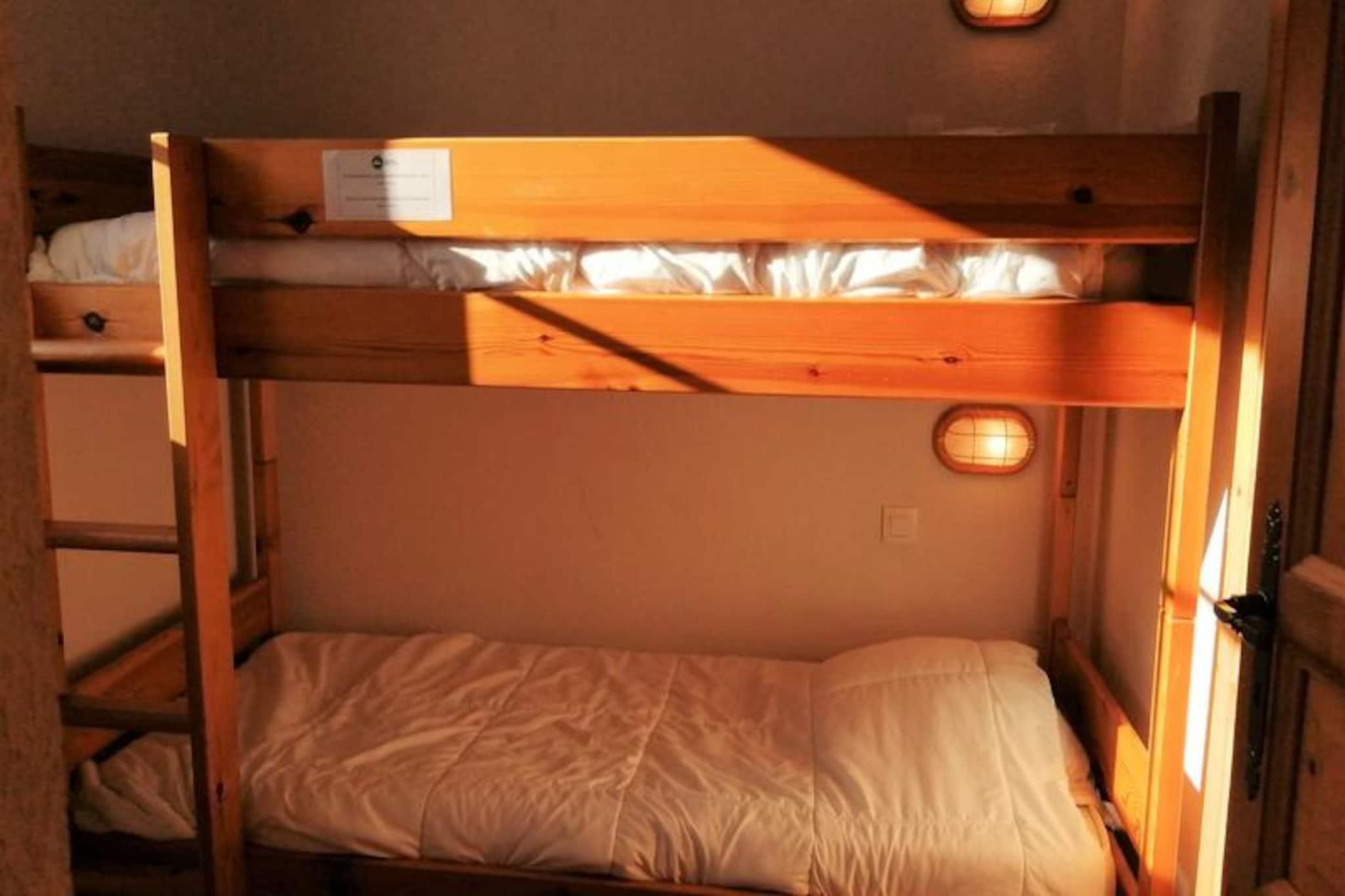 Hvor det majestætiske Mont Blanc står som en vagtpost, tilbyder denne charmerende lejlighed i Saint-Gervais en uforglemmelig alpin flugt. Forestil dig at vågne op til den friske bjergluft, nippe til din morgenkaffe på en sydvestvendt balkon og planlægge din eventyrlige dag i skiområdet Evasion Mont-Blanc, der er tilgængeligt via Saint-Gervais-svævebanen kun 50 meter væk. Uanset om du søger spændende pister eller rolige sommervandreture, er denne bolig den perfekte base for at udforske de franske alpers skønhed. \n\nLejligheden, der ligger på anden sal, er omhyggeligt designet til at rumme op til seks gæster. Dens hyggelige planløsning omfatter en stue med en komfortabel sovesofa, et veludstyret køkken med moderne apparater som opvaskemaskine og keramisk kogeplade samt en spiseplads til fælles måltider. Soveværelset med to enkeltsenge og en kahyt med køjesenge sikrer afslappende nætter for alle. To badeværelser, herunder et med badekar, og et separat toilet gør dit ophold mere behageligt. Yderligere faciliteter såsom et skirum og en garage gør det ideelt for vintersportsentusiaster, mens den opvarmede udendørs pool, der er åben om sommeren, lover afslapning under den alpine sol.\n\nSelve Saint-Gervais er en dejlig landsby kun 800 meter væk, fyldt med lokal charme. I nærheden finder du et bageri, en tobaksforretning og sportsudstyrsudlejning, der sikrer, at alle dine behov bliver opfyldt. Om sommeren forvandles regionen til et paradis for friluftsentusiaster med naturskønne stier, livlige festivaler og en betagende udsigt over Mont Blanc. For ekstra komfort er der valgfrie tjenester som Wi-Fi, udlejning af linned og børnepasningsudstyr tilgængelige, hvilket gør denne ejendom perfekt til familier og vennegrupper.\n\nUanset om du snor dig gennem snedækkede pister eller soler dig ved poolen, inviterer denne lejlighed dig til at skabe varige minder midt i Saint-Gervais' ærefrygtindgydende landskaber.
