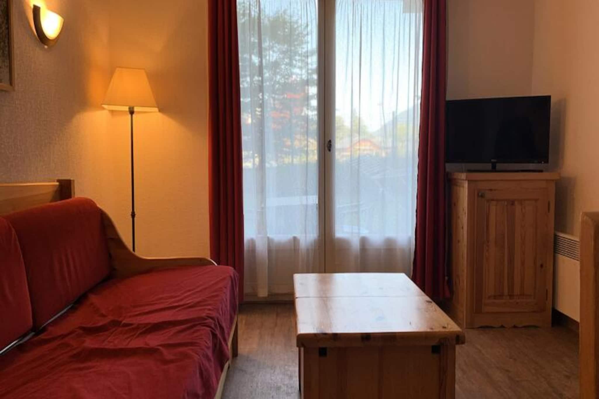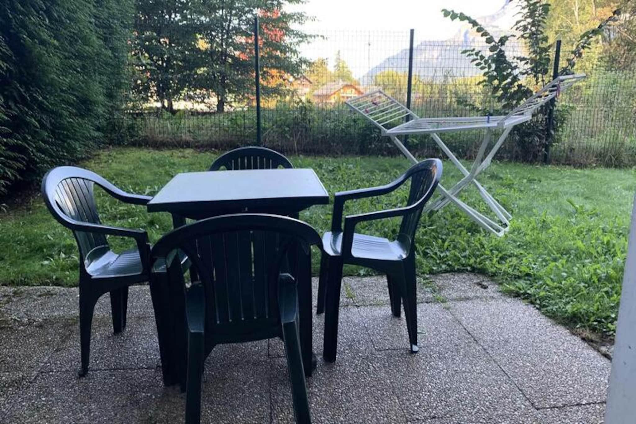Ved foden af ??Mont Blancs majestætiske tinder tilbyder denne charmerende lejlighed i Grand Panorama-residensen et roligt tilflugtssted kun få skridt fra Saint-Gervais-svævebanen. Med en perfekt beliggenhed i forhold til det vidtstrakte skiområde Evasion Mont-Blanc er det en ideel base for både vintersportsentusiaster og sommereventyrere. Med landsbyens centrum kun 800 meter væk kan du nyde bekvemmeligheden ved nærliggende bagerier, udlejningsbutikker og lokale faciliteter, mens du fordyber dig i de franske alpers skønhed. I de varmere måneder inviterer den opvarmede udendørs pool dig til at slappe af under den alpine sol, hvilket gør hvert øjeblik af dit ophold uforglemmeligt. \n\nDenne hyggelige 31 m² store lejlighed i stueetagen har plads til op til fire gæster og har en nordvestvendt terrasse, der åbner ud til et privat grønt område. Den gennemtænkte planløsning omfatter en stue med sovesofa, tv og spiseplads samt et fuldt udstyret køkken med moderne apparater såsom opvaskemaskine, keramisk kogeplade, mikrobølgeovn og kaffemaskine. Soveværelset har to komfortable enkeltsenge, og badeværelset er udstyret med badekar og håndvask, suppleret med et separat toilet. Yderligere faciliteter inkluderer et skirum og valgfrie tjenester som Wi-Fi, leje af linned og børnepasningsudstyr for at sikre en stressfri ferie.\n\nUd over boligen lokker Saint-Gervais med sine charmerende gader, lokale markeder og betagende udsigt over bjergene. Uanset om du står på ski ned ad uberørte pister, vandrer på naturskønne stier eller forkæler dig selv med Savoyard-specialiteter, tilbyder regionen uendelige muligheder for udforskning og afslapning. For dem, der søger en blanding af eventyr og ro, tilbyder denne lejlighed den perfekte alpine flugt året rundt.