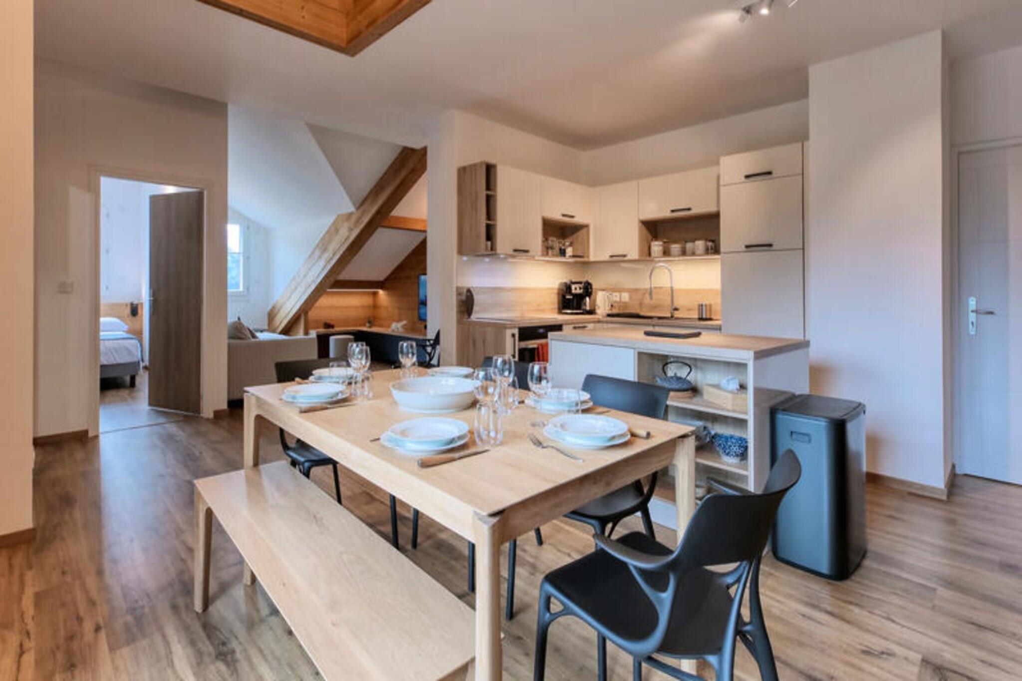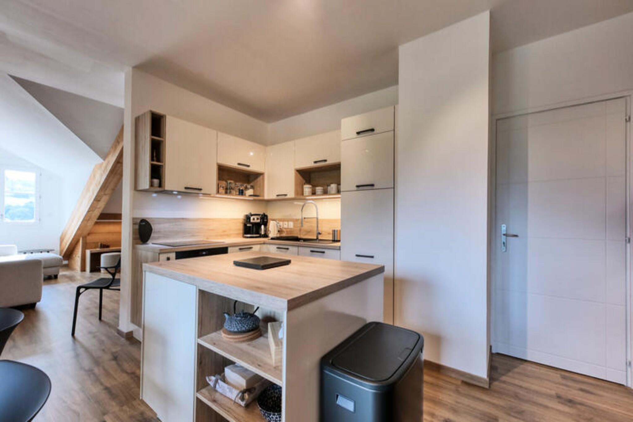Højt over den maleriske by Saint-Gervais Mont-Blanc tilbyder denne udsøgte duplex et roligt alpint tilflugtssted kun 10 minutter fra det pulserende bycentrum. Omgivet af betagende udsigt over bjergene kombinerer denne nybyggede ejendom moderne komfort med den tidløse charme fra de franske alper, hvilket gør den til et ideelt tilflugtssted for familier eller vennegrupper, der søger afslapning og eventyr. Træd indenfor og oplev et gennemtænkt designet rum, der komfortabelt kan rumme op til 10 gæster. Stueetagen har en hyggelig stue med tv, et fuldt udstyret køkken, der åbner ud til en spiseplads med en varm pejs, og tre indbydende soveværelser, inklusive et charmerende køjesengsværelse, der er perfekt til børn eller større grupper. To badeværelser, et med badekar og et med bruser, sikrer bekvemmelighed for alle. Ovenpå er der et ekstra dobbeltværelse, der tilbyder et privat fristed. Balkonen tilbyder et fredeligt sted at nyde den friske bjergluft og de fantastiske omgivelser. Gæsterne vil sætte pris på de inkluderede tjenester såsom Wi-Fi, sengetøj, badeværelsesprodukter og opredte senge ved ankomst, hvilket sikrer et problemfrit og behageligt ophold. Der er udendørs parkering til rådighed, og ejendommen er røgfri og kæledyrsfri og bevarer sin perfekte stand. Med sin førsteklasses beliggenhed nær Saint-Gervais Mont-Blanc kan besøgende nemt udforske den charmerende by, nyde lokal mad eller begive sig ud på spændende udendørseventyr. Uanset om du står på ski om vinteren, vandrer om sommeren eller blot slapper af ved pejsen, lover denne duplex en uforglemmelig alpin ferie.