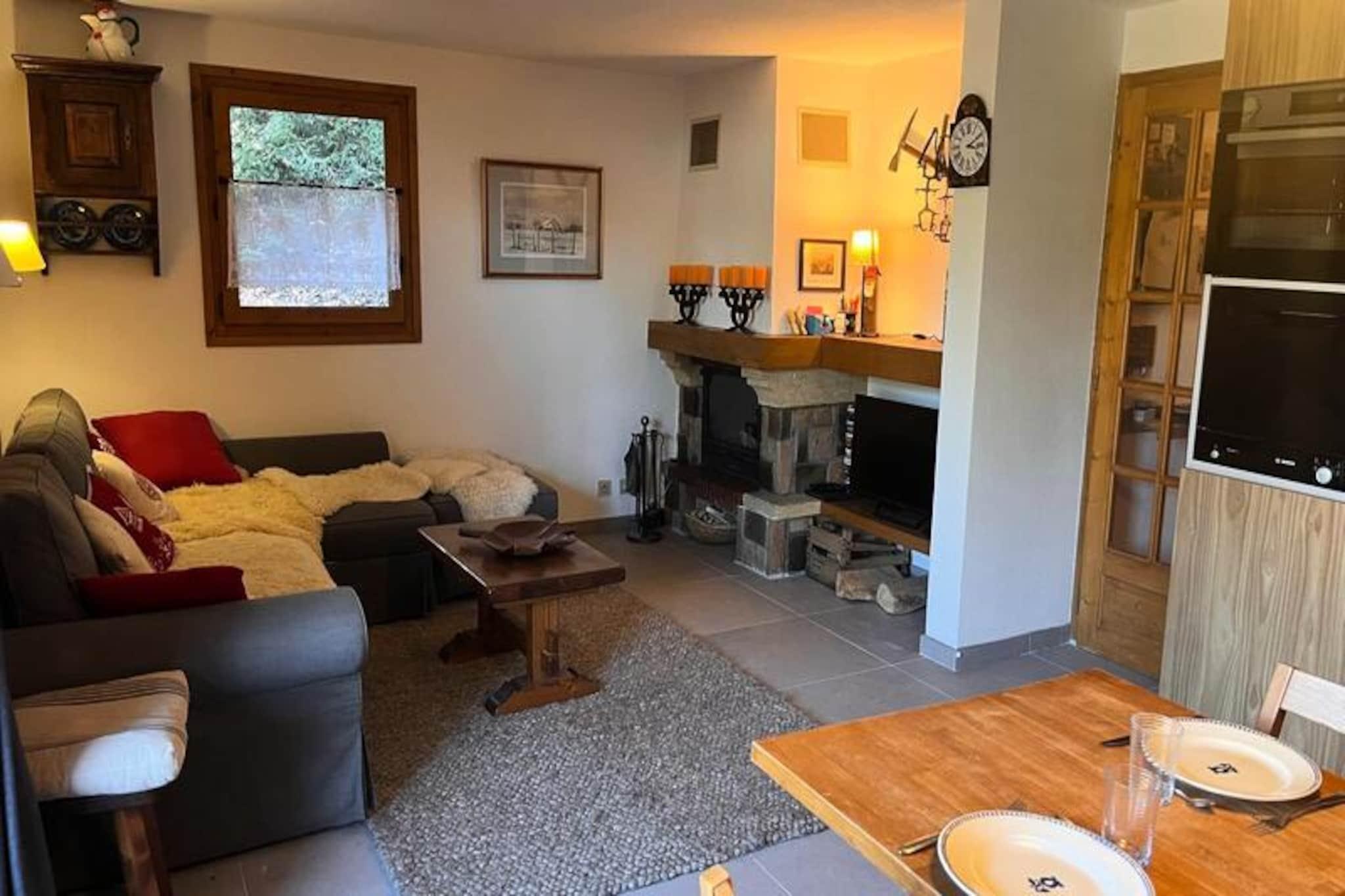 Denne charmerende lejlighed i stueetagen ligger ved kanten af ??en fredfyldt alpeeng og tilbyder et roligt tilflugtssted med en betagende udsigt over Mont Blanc. Forestil dig at nippe til din morgenkaffe på den sydøstvendte terrasse, omgivet af frodige haver og den friske bjergluft. Dette idylliske tilflugtssted er perfekt til familier eller venner og kombinerer komfort og bekvemmelighed, kun få minutter fra hjertet af Saint-Gervais og det berømte Mont Blanc-skiområde. Med en shuttlebus kun to minutters gang væk har det aldrig været nemmere at udforske regionen. \n\nIndenfor er lejligheden omhyggeligt designet til at rumme op til fem gæster. Den hyggelige stue har en sofa, et tv og en pejs, der inviterer dig til at slappe af efter en dag med eventyr. Det fuldt udstyrede køkken inkluderer moderne apparater såsom ovn, opvaskemaskine, vaskemaskine og et udvalg af specialprodukter som en raclettegrill og et fonduesæt, der sikrer mindeværdige måltider med dine kære. Sovearrangementet omfatter et soveværelse med to enkeltsenge, en sovealkove med en køjeseng og rigelig opbevaringsplads. Badeværelset er komplet med badekar, håndklædetørrer og opbevaring, mens et separat toilet giver ekstra bekvemmelighed.\n\nUd over lejligheden er beliggenheden en indgangsport til endeløse alpine eventyr. Uanset om du står på ski på de uberørte skråninger af Mont Blanc, vandrer på naturskønne stier eller udforsker den charmerende landsby Saint-Gervais, er der noget for enhver smag. Vinterrejsende vil sætte pris på det obligatoriske sneudstyr for sikre rejser, mens sommergæster kan sole sig i regionens naturlige skønhed. Yderligere tjenester såsom Wi-Fi, leje af sengelinned og babyudstyr er tilgængelige for at forbedre dit ophold.\n\nVælg denne fredelige oase til din næste ferie og skab uforglemmelige minder i skyggen af ??Mont Blanc.