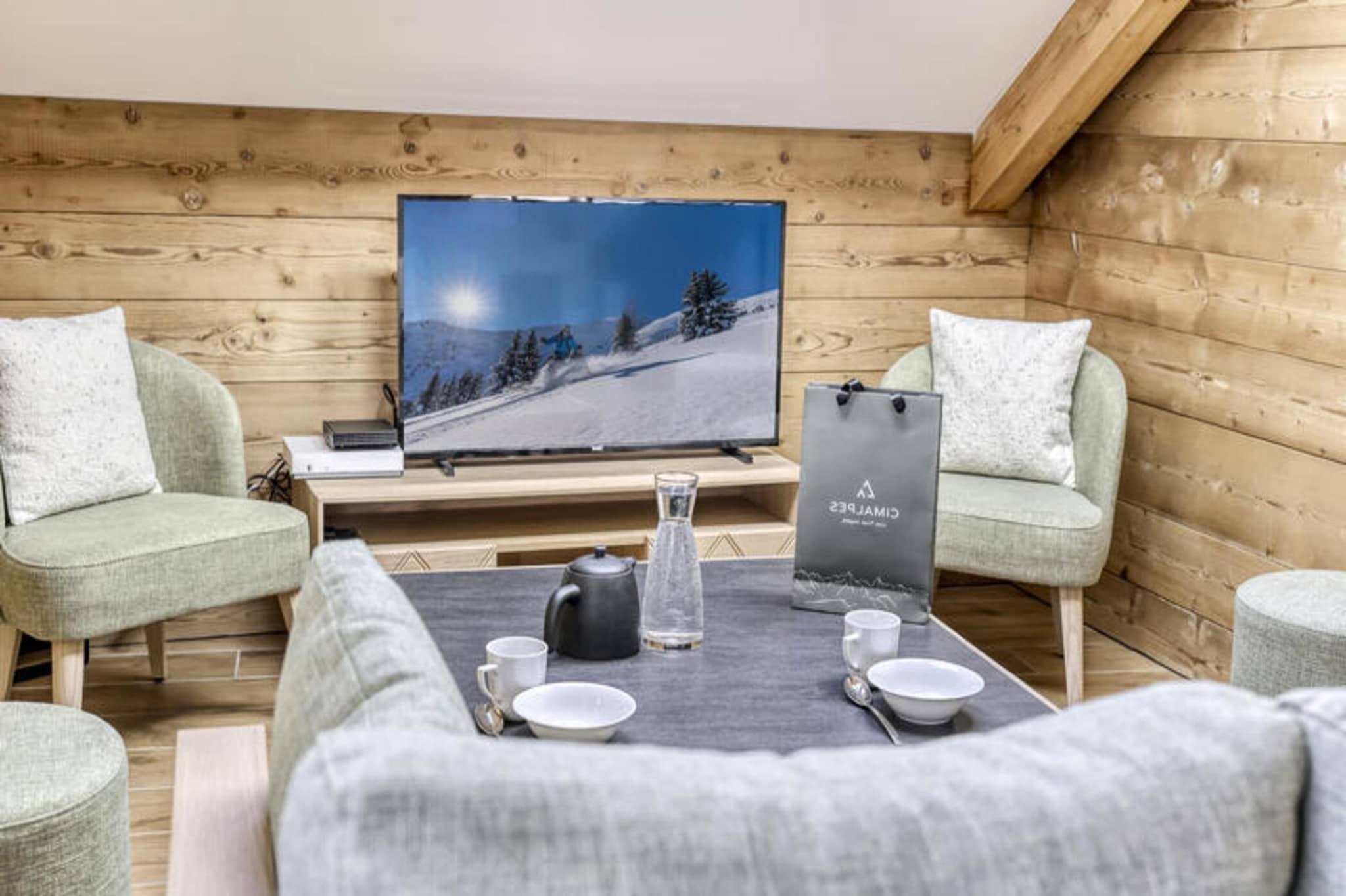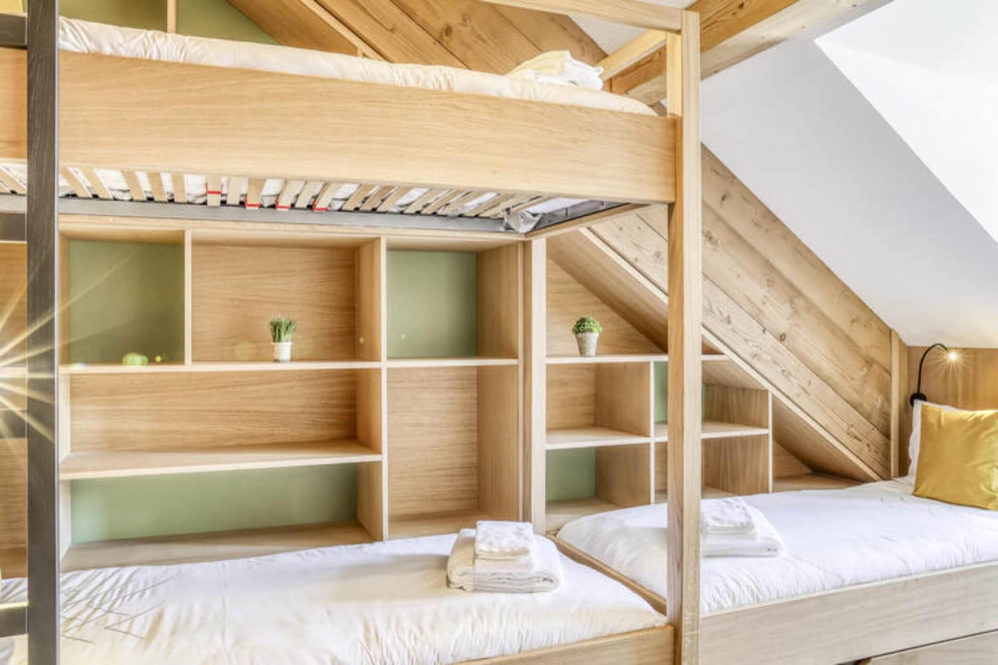 Denne moderne og rummelige lejlighed tilbyder et ideelt tilflugtssted for familier, der kan rumme op til to voksne og fire børn. Beliggende i en nybygget bolig, har ejendommen et komfortabelt soveværelse med dobbeltseng med en-suite brusebad og en hyggelig sovesal med fire enkeltsenge og et tilstødende badeværelse. Et lyst og indbydende opholdsområde omfatter spiseplads, fjernsyn og adgang til en balkon, hvor du kan slappe af og nyde udsigten over bjergene. Bemærk venligst, at kæledyr ikke er tilladt, og lejligheden er ikke-ryger for et rent og roligt ophold. Bekvemt beliggende nær skiliftområdet er denne ejendom perfekt til både vintersportsentusiaster og vandrere. Skilifterne er kun få skridt væk, og en udlejningsbutik placeret for foden af ??boligen sikrer, at du har nem adgang til alt dit udstyr. Det pulserende centrum af Saint-Gervais-les-Bains er også tæt på, og tilbyder charmerende caféer, restauranter og lokale markeder, som du kan udforske efter en dag på pisterne eller stierne. Lejligheden er omhyggeligt designet til din komfort, og byder på et fuldt udstyret åbent køkken, der er ideelt til at tilberede måltider. Moderne badeværelser, det ene med bruser og det andet med badekar, giver bekvemmelighed for større grupper. Yderligere faciliteter omfatter Wi-Fi, en privat garage og et skiskab til sikker opbevaring. Premium-tjenester såsom linned, opredte senge ved ankomsten, badeværelsesprodukter og regelmæssig rengøring er inkluderet, hvilket sikrer et problemfrit og mindeværdigt ophold.