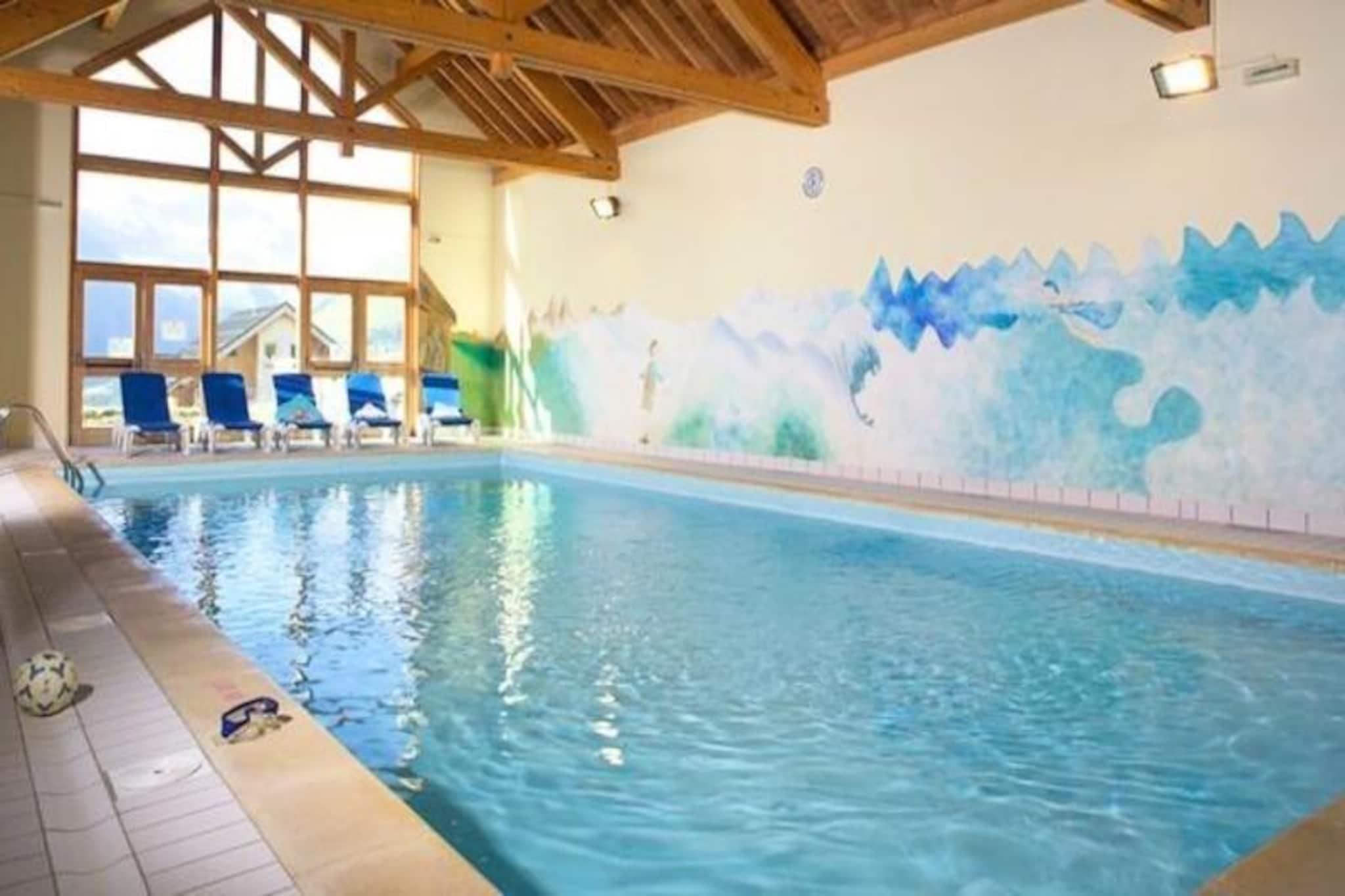 Midt i det betagende alpine landskab i La Chal i Saint Jean d'Arves tilbyder denne charmerende lejlighed et hyggeligt tilflugtssted for familier og venner, der søger en uforglemmelig bjergferie. Med sin førsteklasses beliggenhed i skiområdet Les Sybelles har du direkte adgang til et af Mauriennes største skiområder med 135 pister, der passer til alle niveauer. Forestil dig morgener med at nippe til kaffe på din sydvendte terrasse, mens solen oplyser de snedækkede tinder, inden du tager ud på en dag med eventyr på pisterne eller udforsker de maleriske landsbyomgivelser. \n\nDenne 35 m² store lejlighed har komfortabel plads til op til seks gæster og er omhyggeligt designet til afslapning og bekvemmelighed. Indretningen omfatter et soveværelse med køjesenge, et andet værelse med en sovesofa og en stue med en sovesofa. Det fuldt udstyrede tekøkken inviterer dig til at tilberede solide måltider efter en dag udendørs, mens badeværelset og det separate toilet sikrer privatliv for alle. Yderligere faciliteter såsom gratis tv, et skiskab og udendørs parkering forbedrer dit ophold, og kæledyr er velkomne mod et ekstra gebyr. Gæsterne har også gratis adgang til den indendørs pool, perfekt til afslapning efter en dag i den friske bjergluft.\n\nSaint Jean d'Arves er en destination, der blander autenticitet med eventyr. Forældre vil sætte pris på nærheden til skiskole, dagpleje og legeplads, mens hele familien kan deltage i aktiviteter som panoramaudsigt over snesko, hundeslædekørsel eller paragliding. Udforsk lokale håndværk, besøg bjerggårde, eller nyd blot regionens fredfyldte skønhed. Ugentlig underholdning arrangeret af turistkontoret sikrer, at der aldrig er et kedeligt øjeblik.\n\nUanset om du snor dig gennem frisk puddersne eller opdager charmen i alpelandsbyer, tilbyder denne lejlighed den perfekte base for at skabe varige minder i hjertet af de franske alper.