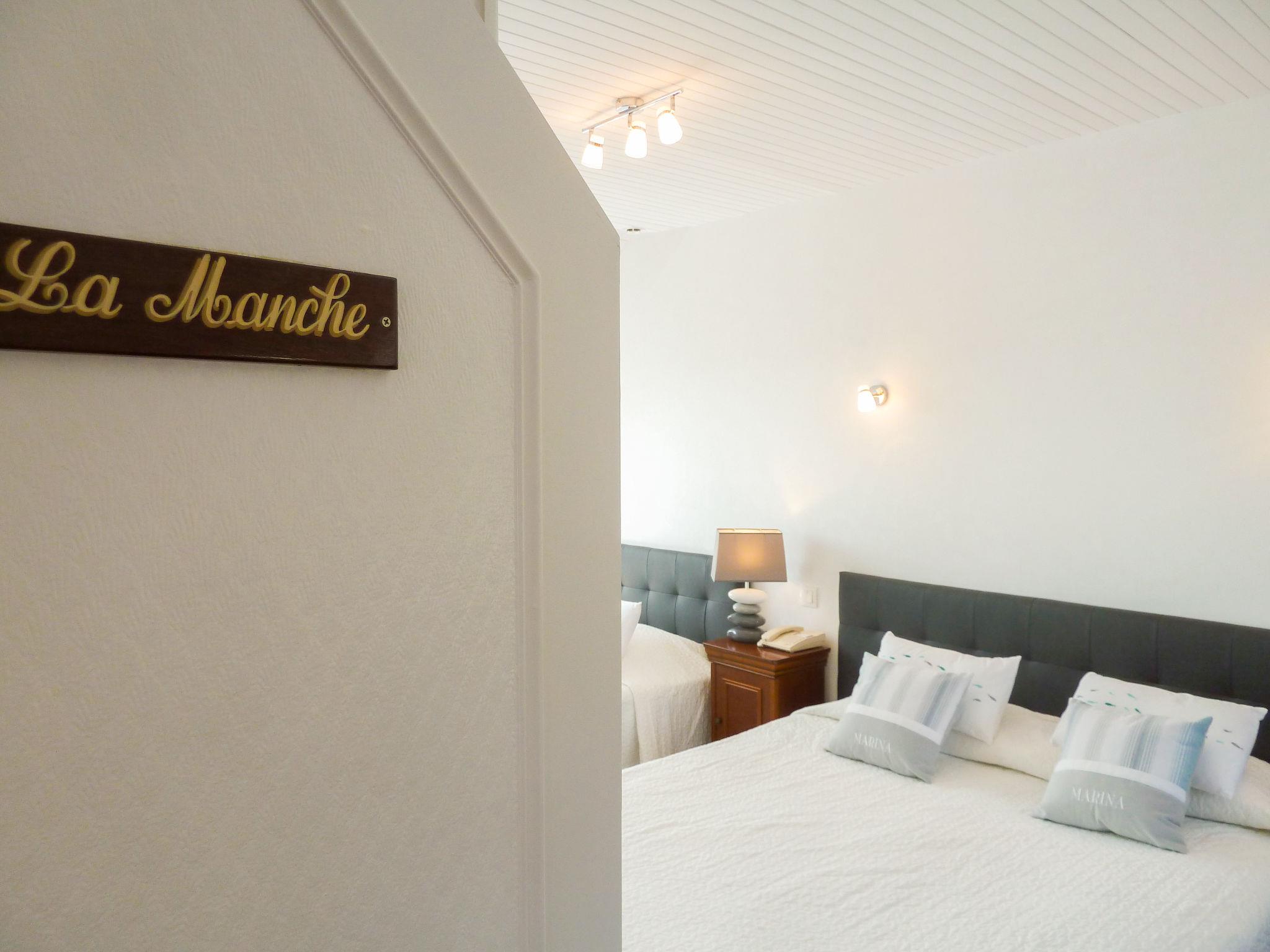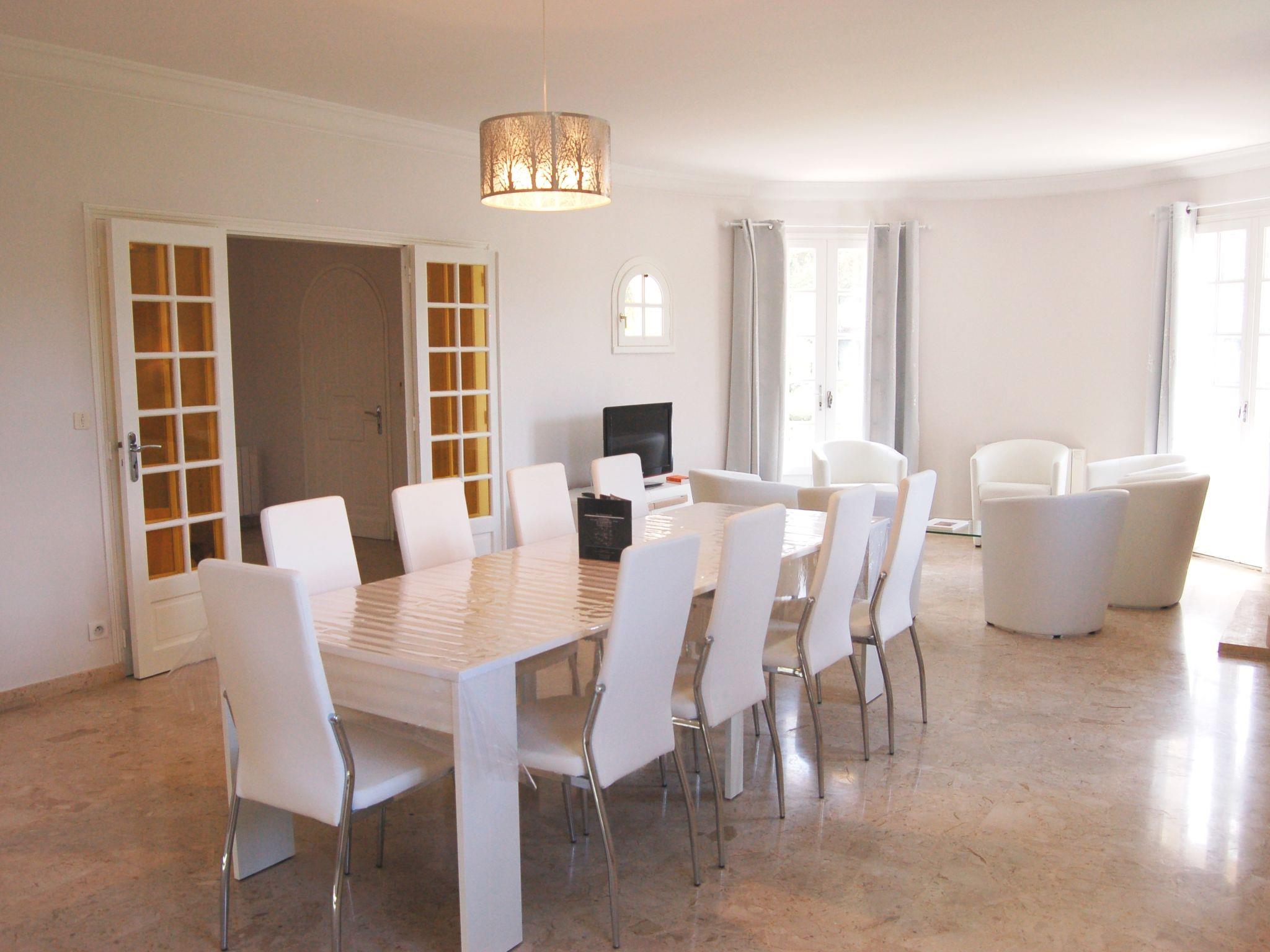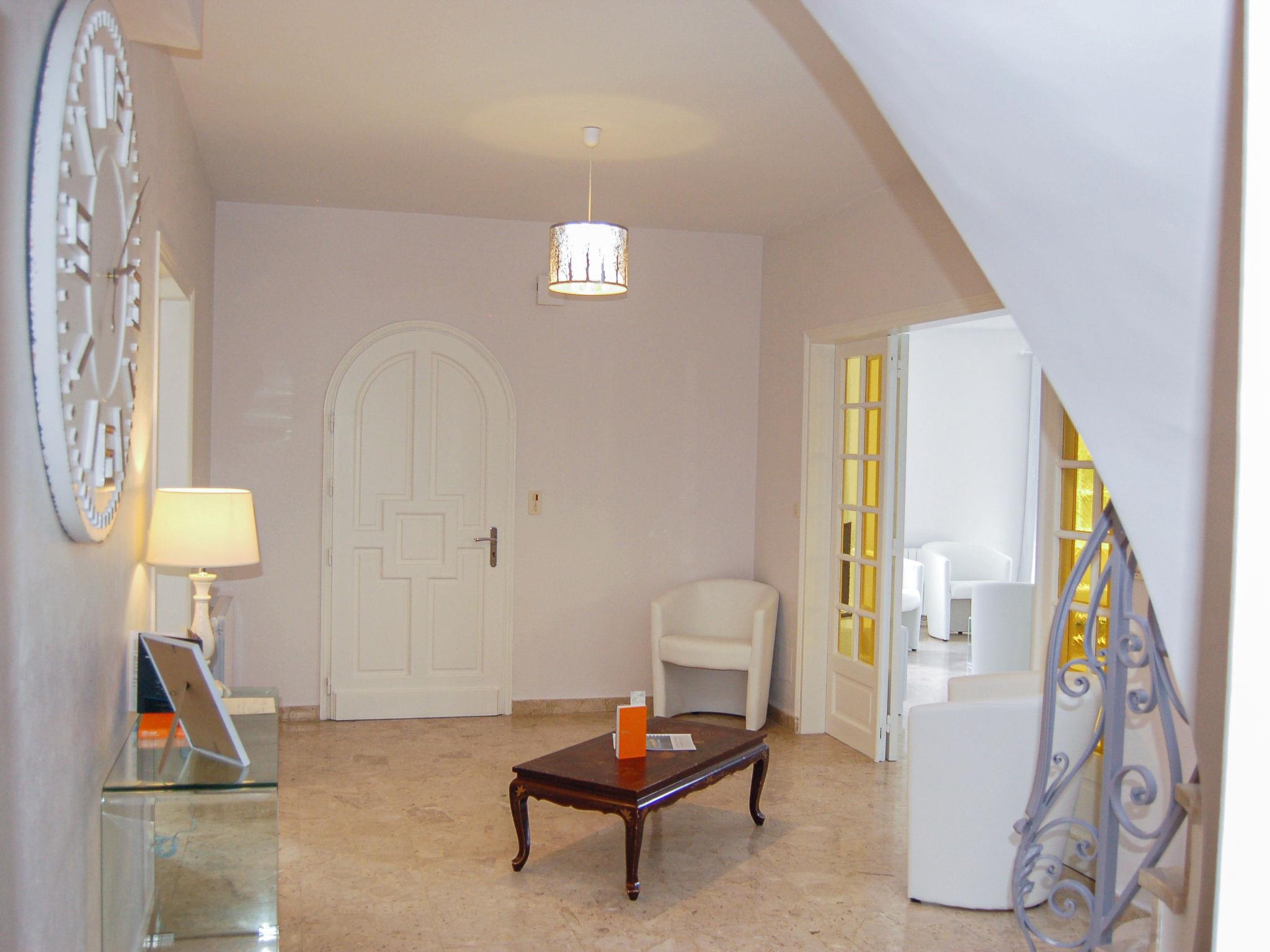 "La Villa", 6-room villa 160 m2 on 2 levels. Comfortable and tasteful furnishings: large living/dining room with TV (flat screen). Exit to the garden, to the terrace. 1 room with 1 french bed (1 x 160 cm, length 200 cm). Exit to the terrace. Large kitchen (4 hot plates, oven, dishwasher, toaster, kettle, microwave, freezer, electric coffee machine). Sep. WC. Upper floor: 1 room with 1 french bed (1 x 140 cm, length 190 cm). 1 room with 1 french bed (1 x 160 cm, length 200 cm), shower/WC. 1 room with 1 french bed (1 x 160 cm, length 200 cm). 1 room with 2 french beds (2 x 140 cm, length 190 cm). Bathroom, sep. WC. Electric heating. Terrace 20 m2. Terrace furniture, barbecue. Facilities: washing machine, hair dryer. Internet (WiFi, free). Garage on the property. Please note: suitable for families. Smoke alarm. Offer by a commercial proprietor according to Art. 155, IV, CGI