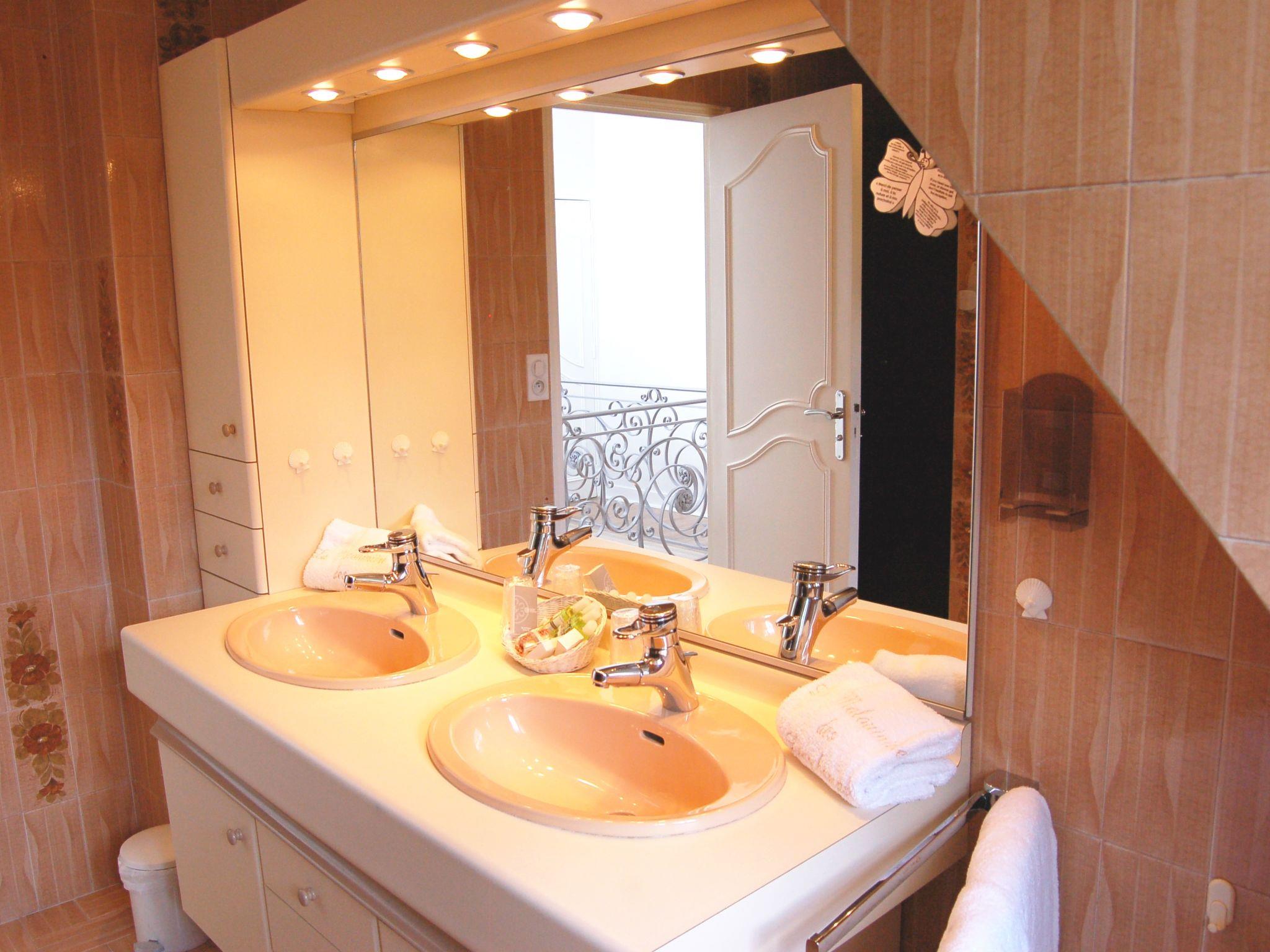 Very beautiful farm estate "La Malouinière des Longchamps", from the 18th century, surrounded by meadows. 6 houses in the residence. In the hamlet Longchamps, in a quiet, sunny position, traffic calmed area, 7.5 km from the sea, 7.5 km from the beach. For shared use: park (fenced), well-kept terraced garden with lawn and flowers, swimming pool angular heated, fenced (seasonal availability: 15.May. - 01.Sep.). Children's playground, pool maintenance by the owner/gardener. In the complex: bar, lounge, spa area (extra), billiard table. Breakfast possible on request (extra). Parking on the premises. E-charging station. Shop 2.6 km, shopping centre 3.1 km, restaurant 1.8 km, bakery 1.7 km, bus stop "Chesnaie" 1.4 km, railway station "Gare TGV de St Malo" 9.3 km, ferry "Gare maritime du Naye" 9.8 km, sandy beach "La passagère" 7.5 km, indoor swimming pool 3.6 km, thermal baths "Thermes martins de St Malo" 10.2 km. Sports harbour 10.2 km, riding stable 9.6 km. Nearby attractions: Grand aquarium de St Malo 6.1 km, Saint Malo Intramuros 10.8 km, Dol de Bretagne 17.4 km, Dinard 13.9 km, Dinan 26.2 km, Le Mont St Michel 47 km. Please note: car recommended. Suitable for families. Additional accommodations can be booked. All houses/apartments are individually designed/furnished. The complex has another 6 houses for rent.