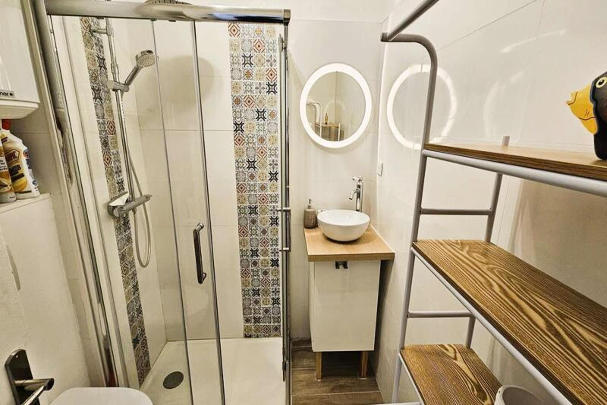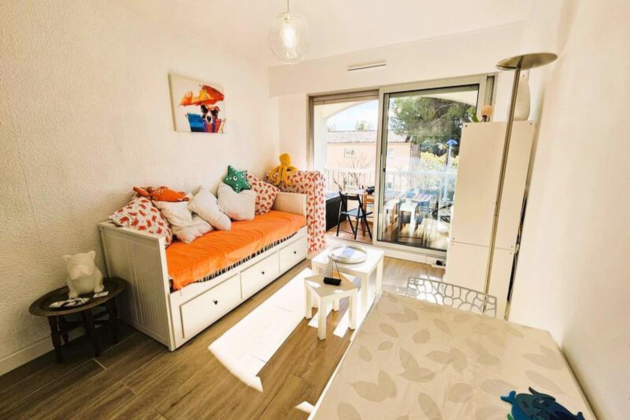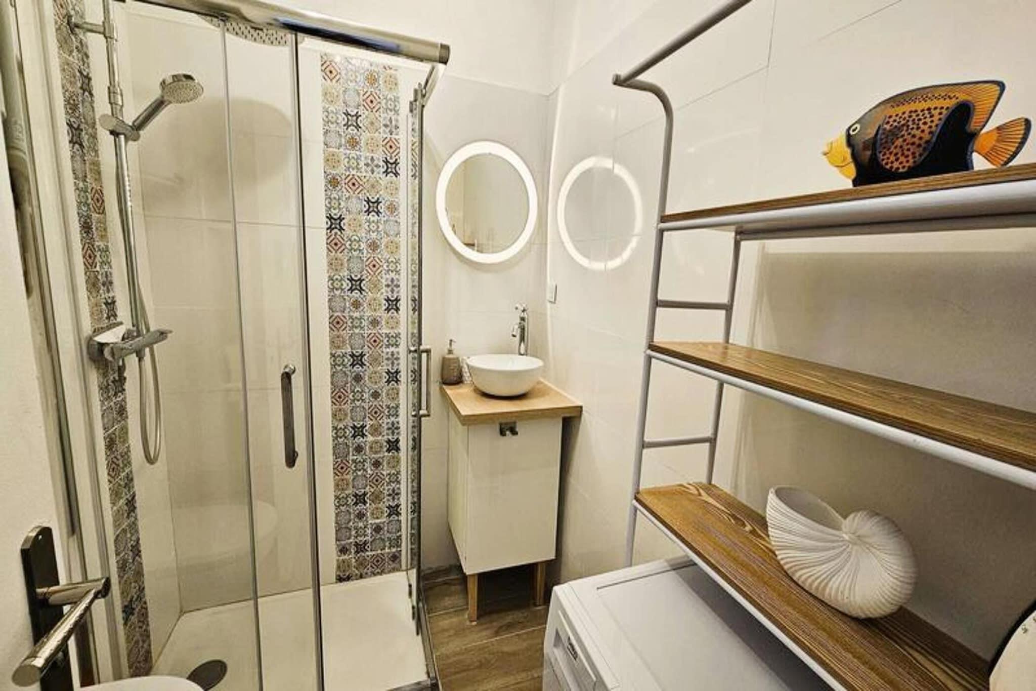 Denne hyggelige 20 m² store lejlighed, beliggende på første sal i en lille bolig med elevator, er perfekt til et afslappende ophold nær stranden. Den har en udtræksseng (160 cm) og en ekstra seng på 90 cm, hvilket gør den ideel til et par eller en lille familie. Lejligheden er ikke-ryger og tillader ikke kæledyr, hvilket sikrer et roligt og rent miljø. For nemheds skyld inkluderer faciliteterne aircondition, tv, internet og en vaskemaskine. Beliggende kun en kort gåtur fra lokale butikker og smukke strande, tilbyder denne lejlighed fremragende adgang til det omkringliggende område. Gæsterne kan nyde de nærliggende attraktioner, herunder charmerende caféer og markeder, perfekt til afslappede gåture eller en hurtig snack. Placeringen er ideel for strandelskere, med nem adgang til kysten for svømning og solbadning. Derudover, med den ekstra bonus ved at være tæt på lokale butikker, har du alt hvad du behøver inden for gåafstand. Lejligheden har et fuldt udstyret køkken, herunder et køleskab med fryser, kogeplader, en plancha, en Dolce Gusto kaffemaskine, en kedel og en brødrister. Badeværelset er udstyret med bruser og vaskemaskine for ekstra bekvemmelighed. For et mere behageligt ophold kan gæsterne vælge at tilføje sengetøj, håndklæder og slutrengøring mod et ekstra gebyr. Lejligheden har også en 6 m² stor terrasse, perfekt til at nyde en morgenkaffe eller aftensolnedgang.
