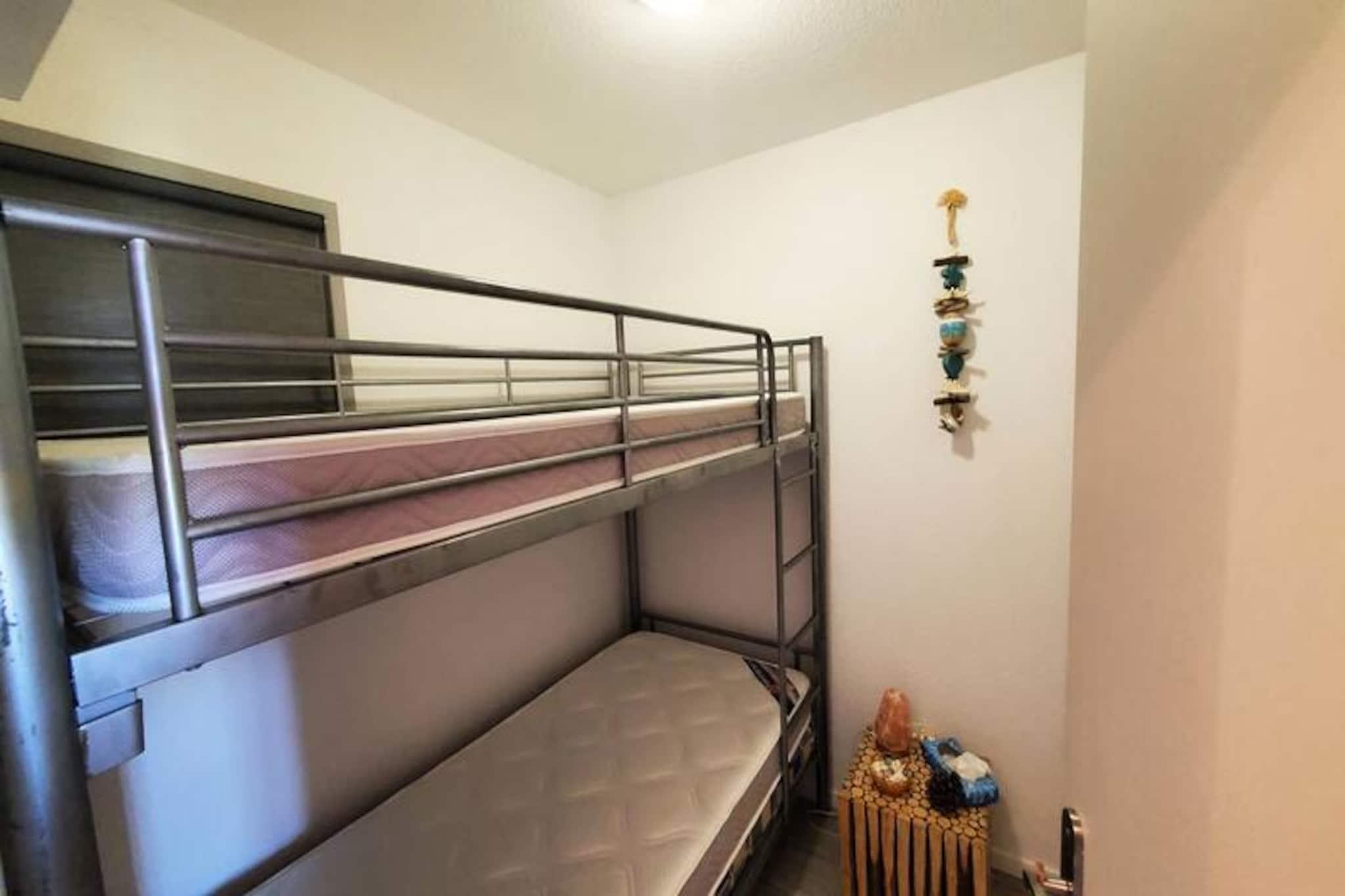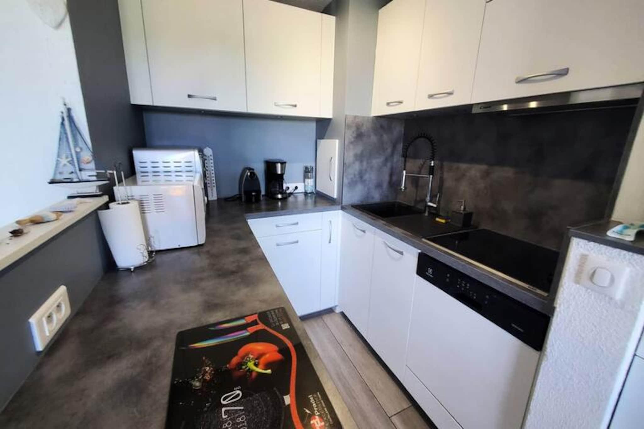 Dette charmerende feriehus byder på et behageligt ophold for op til 6 gæster med 3 soveværelser. Det første soveværelse har 2 køjesenge (for børn over 6 år), det andet og tredje soveværelse har begge dobbeltsenge (140 cm). Lejligheden er ikke-ryger og tilbyder privat parkering. Gæsterne kan også nyde to swimmingpools, der vender ud mod havet, og en række udendørs aktiviteter såsom tennis og bordtennis. Beliggende på St Mandrier/Mer-halvøen har denne bolig en enestående udsigt over Middelhavet. Kun 900 meter fra Ste Asile-stranden kan gæsterne nyde de nærliggende butikker og en række vandaktiviteter. Ejendommens beliggenhed er ideel til afslapning og udforskning, med den charmerende Cap Soleil bugt og andre attraktioner i nærheden. Lejligheden er veludstyret til et ophold med egen forplejning, og byder på et fuldt funktionelt køkken med kogeplader, mikroovn, miniovn, opvaskemaskine, køleskab med fryseboks og kaffemaskiner (filter og Nespresso). Der er også vaskemaskine, tv, ventilatorer og havemøbler med liggestole. Lejligheden har et badeværelse, et brusebad med eget toilet i et af soveværelserne og et separat toilet for ekstra bekvemmelighed.
