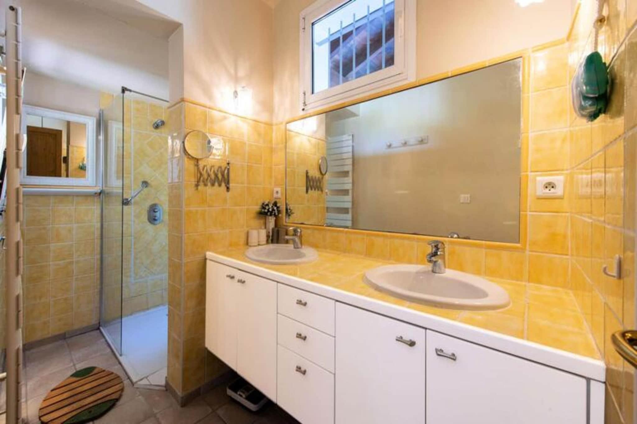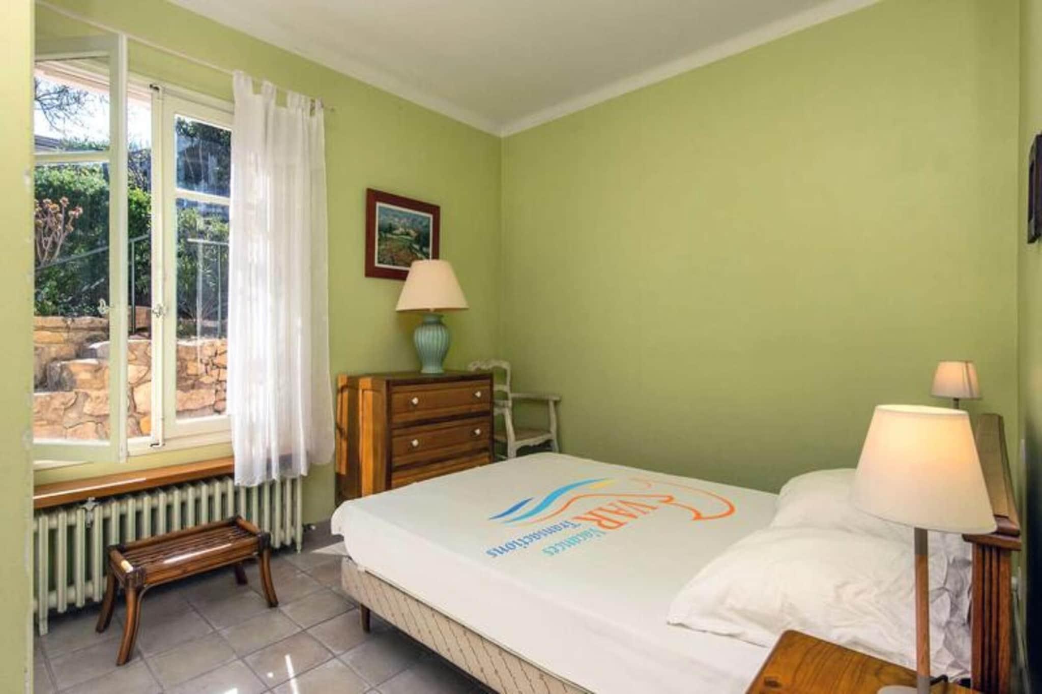 Denne rummelige villa på 120 m² kan rumme op til 8 gæster med 4 soveværelser, 2 badeværelser og 2 separate toiletter. Villaen har aircondition i både stuen og tv-stuen for din komfort. Ejendommen er kæledyrsvenlig og tillader kæledyr mod et tillægsgebyr og har en lukket, skovklædt have med en række udendørs rum. Villaen tilbyder også parkering til 2 biler med en elektrisk port. Bemærk venligst, at boligen er ikke-ryger. Denne villa ligger i den charmerende landsby Saint Mandrier og tilbyder fuld havudsigt og er kun en kort afstand fra stranden, butikker og restauranter. Den maritime shuttle-mole er inden for gåafstand, hvilket giver nem adgang til Toulon. Nyd havnens naturskønne skønhed og gå afslappede gåture gennem landsbyen, alt imens du er tæt på lokale caféer og markeder. Indvendigt har villaen et veludstyret køkken, perfekt til at tilberede måltider. Den lyse stue åbner ud til flere skyggefulde terrasser, ideel til udendørs spisning eller afslapning. Haven omfatter et gammelt vaskehus med udendørs bruser, en grill og et solarium med komfortable møbler til 8 personer. De to badeværelser og separate toiletter giver god plads til gæsterne.